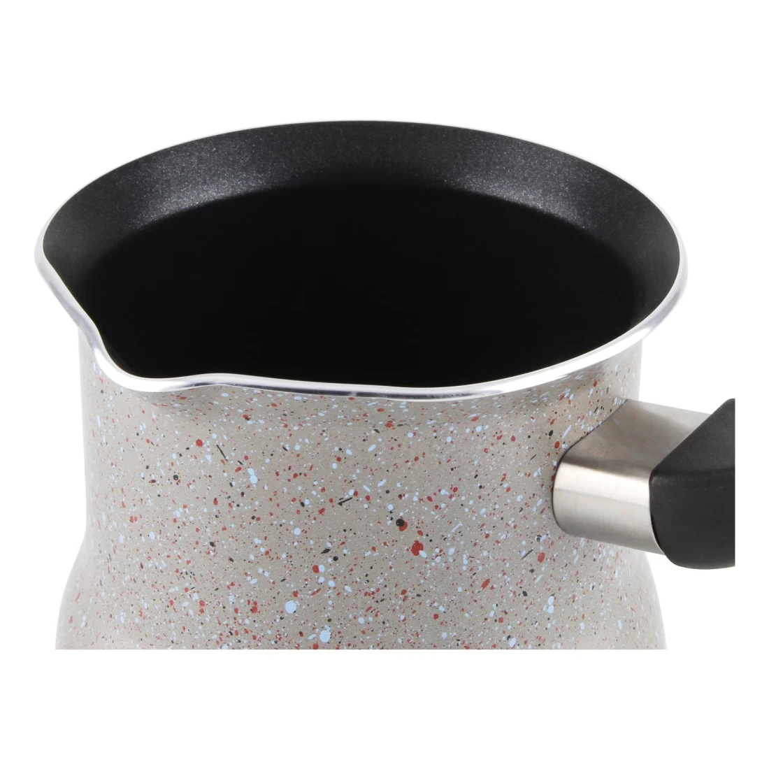 - Marble coffee warmer with black handle