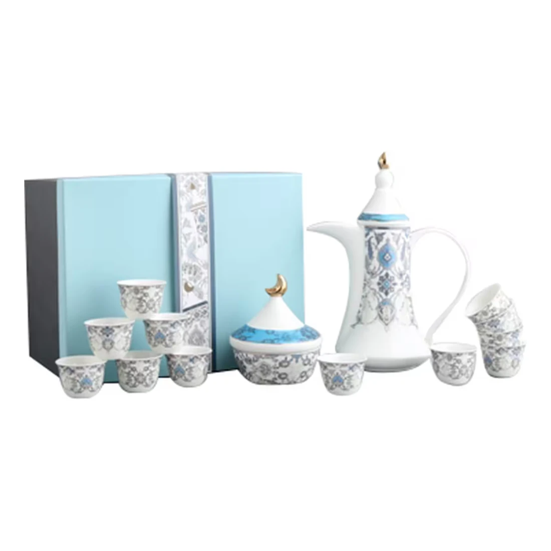 Neoflam Cawa Coffee Cups Set With Dallah And Dates Bowl Assorted 16 PCS