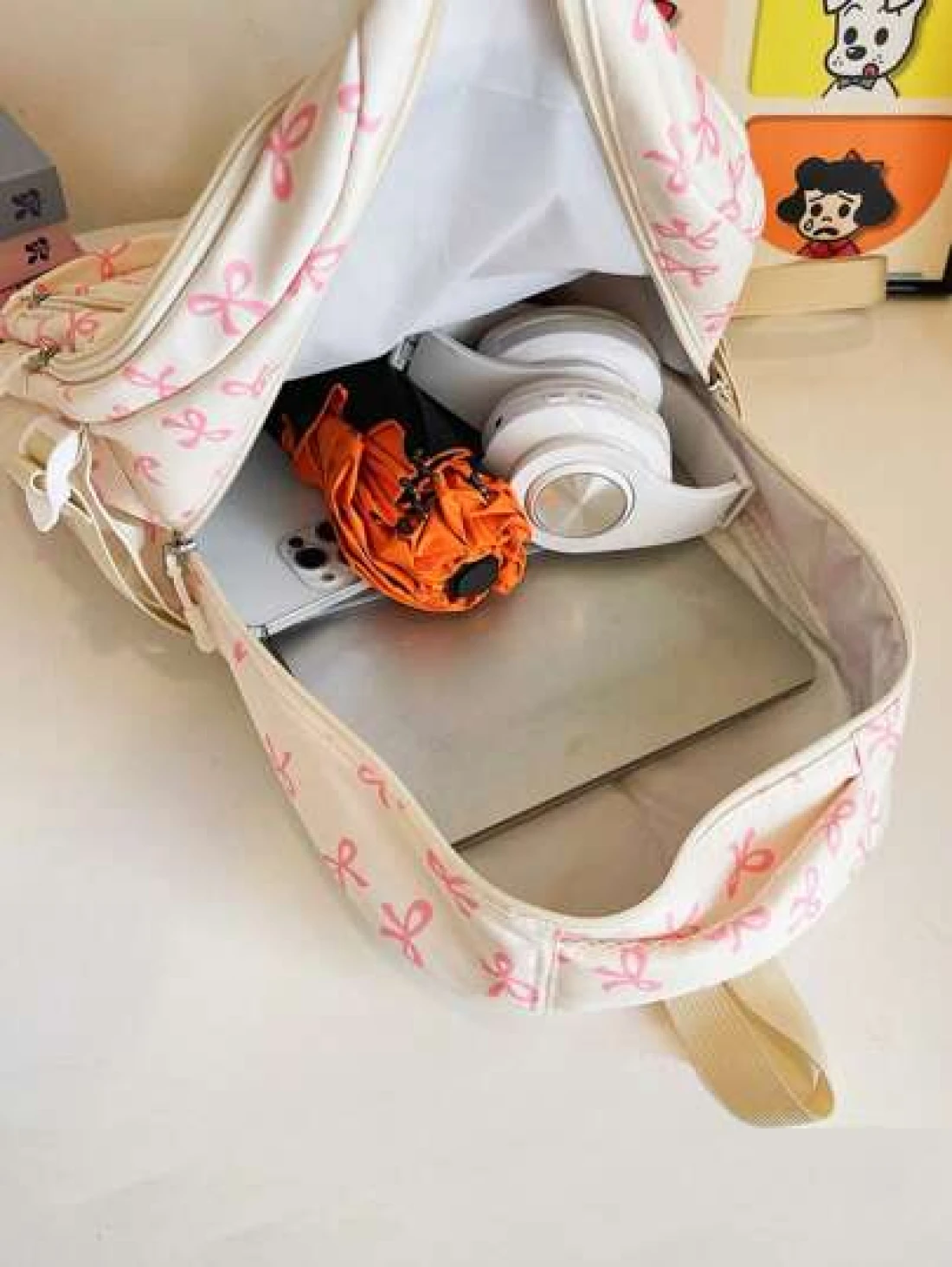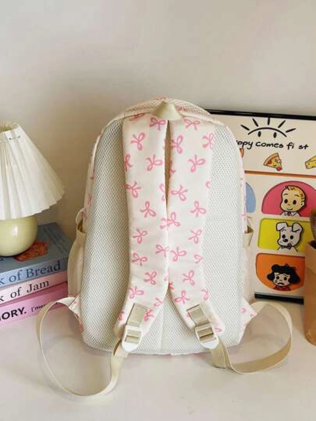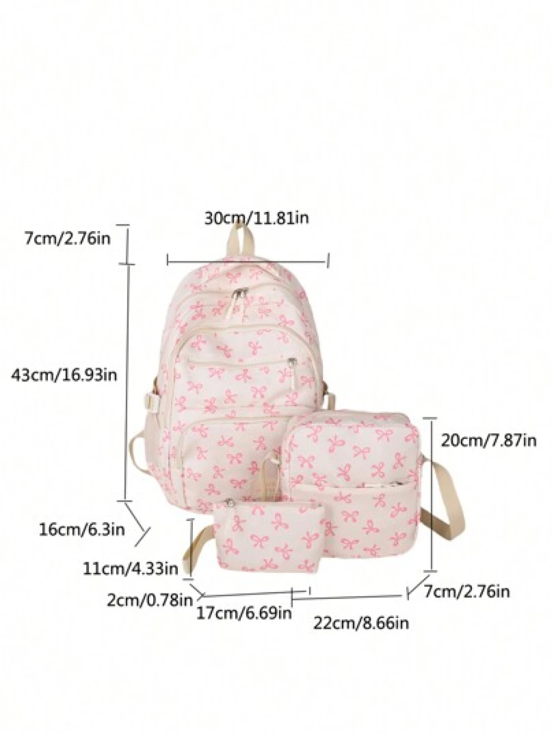 3pcs Nylon Bow Print Backpack Set Foldable Multi Pocket Large Capacity Water Resistant Zipper Backpack Suitable For High School College Students Ladies Daily Use Commuting Traveling Gifts For Valentin