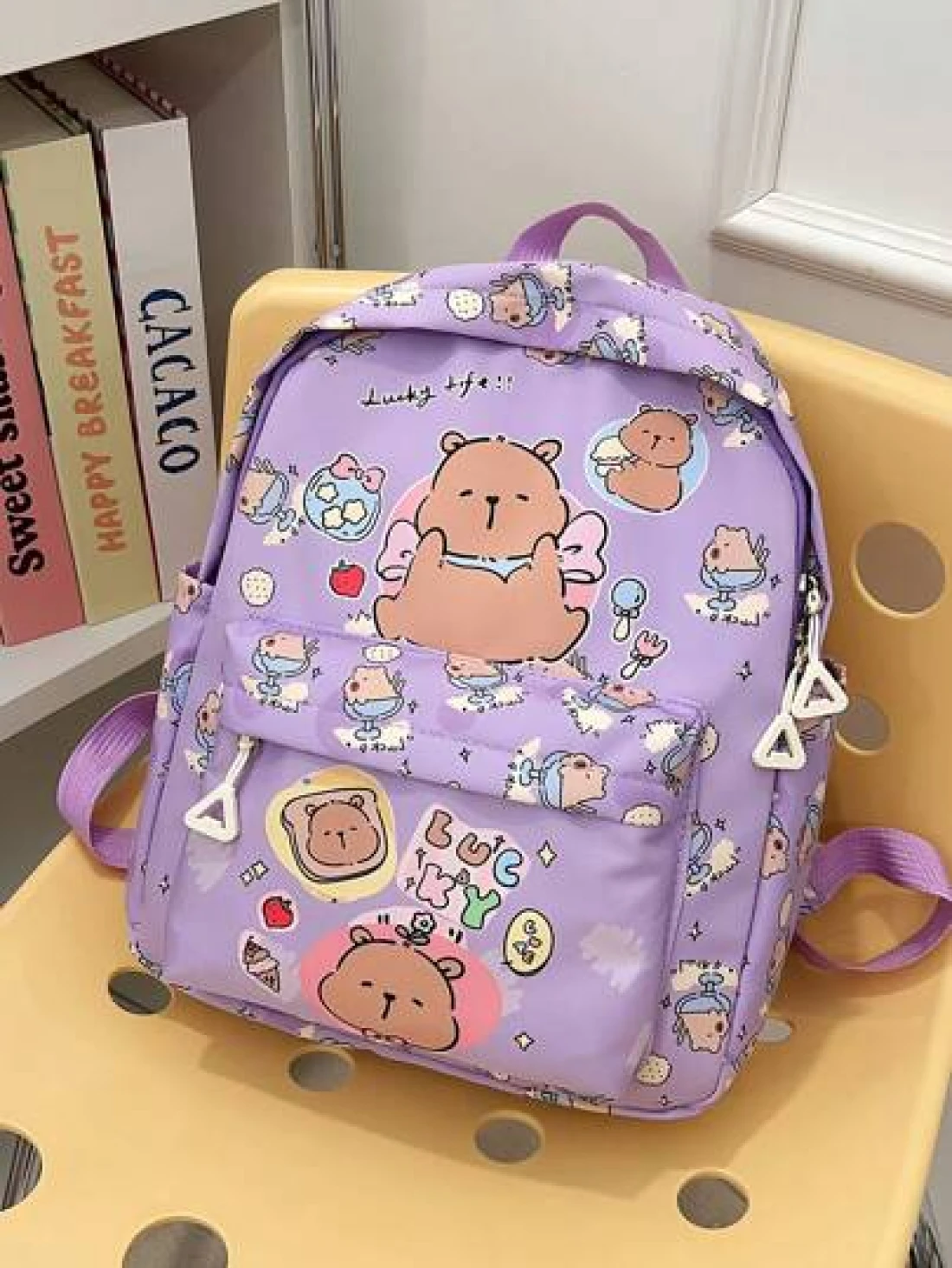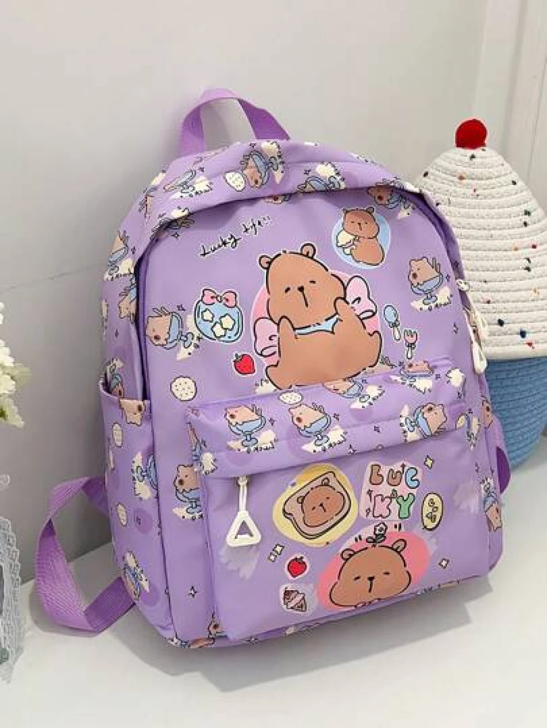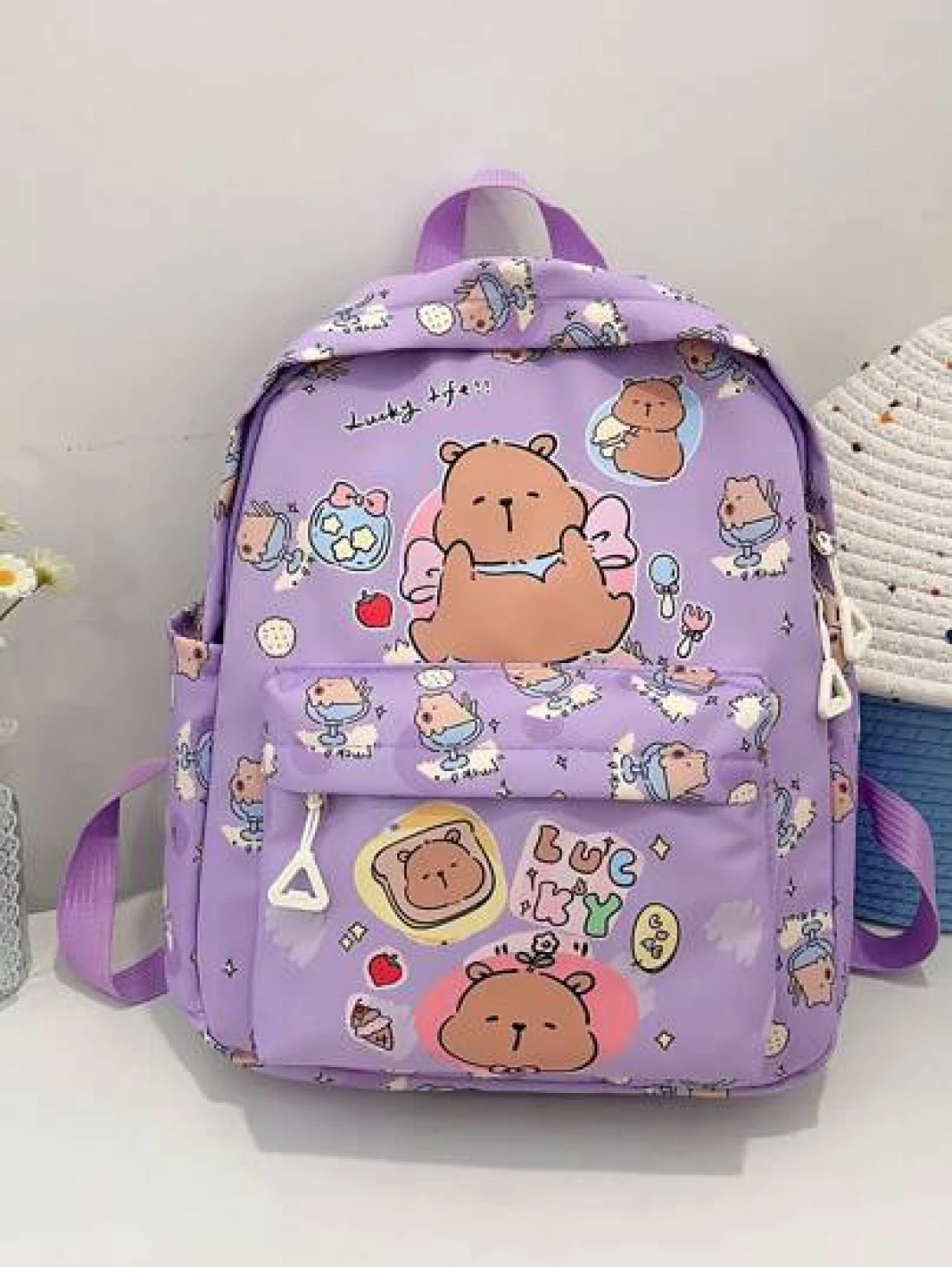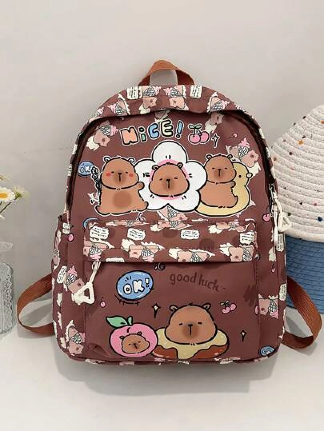 1pc Cute Capybara Backpack Cartoon Animal Print Casual Style Back To School Backpack With Zipper Closure And Adjustable Shoulder Straps Suitable For Campus And Travel