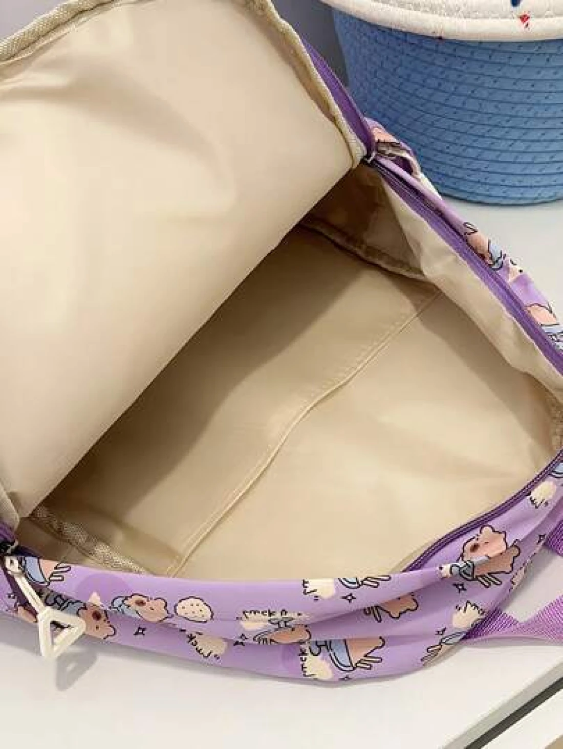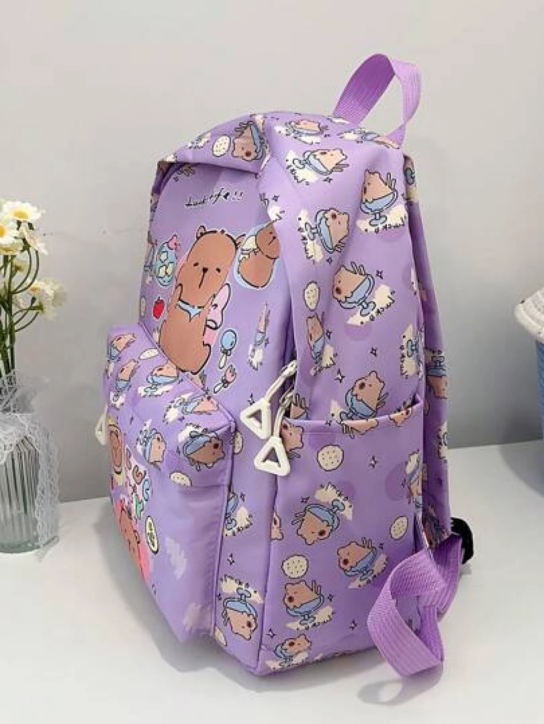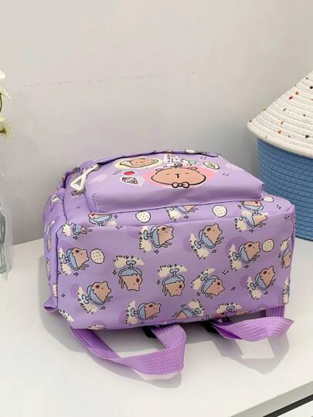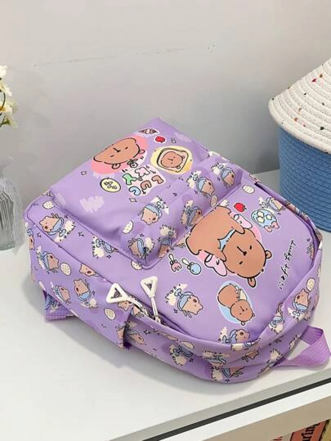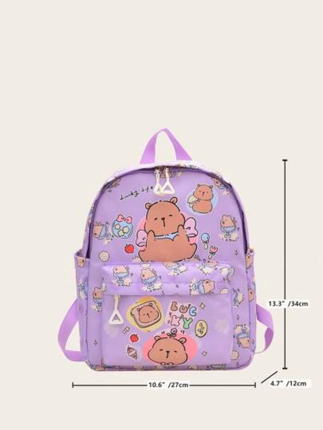1pc Cute Capybara Backpack Cartoon Animal Print Casual Style Back To School Backpack With Zipper Closure And Adjustable Shoulder Straps Suitable For Campus And Travel