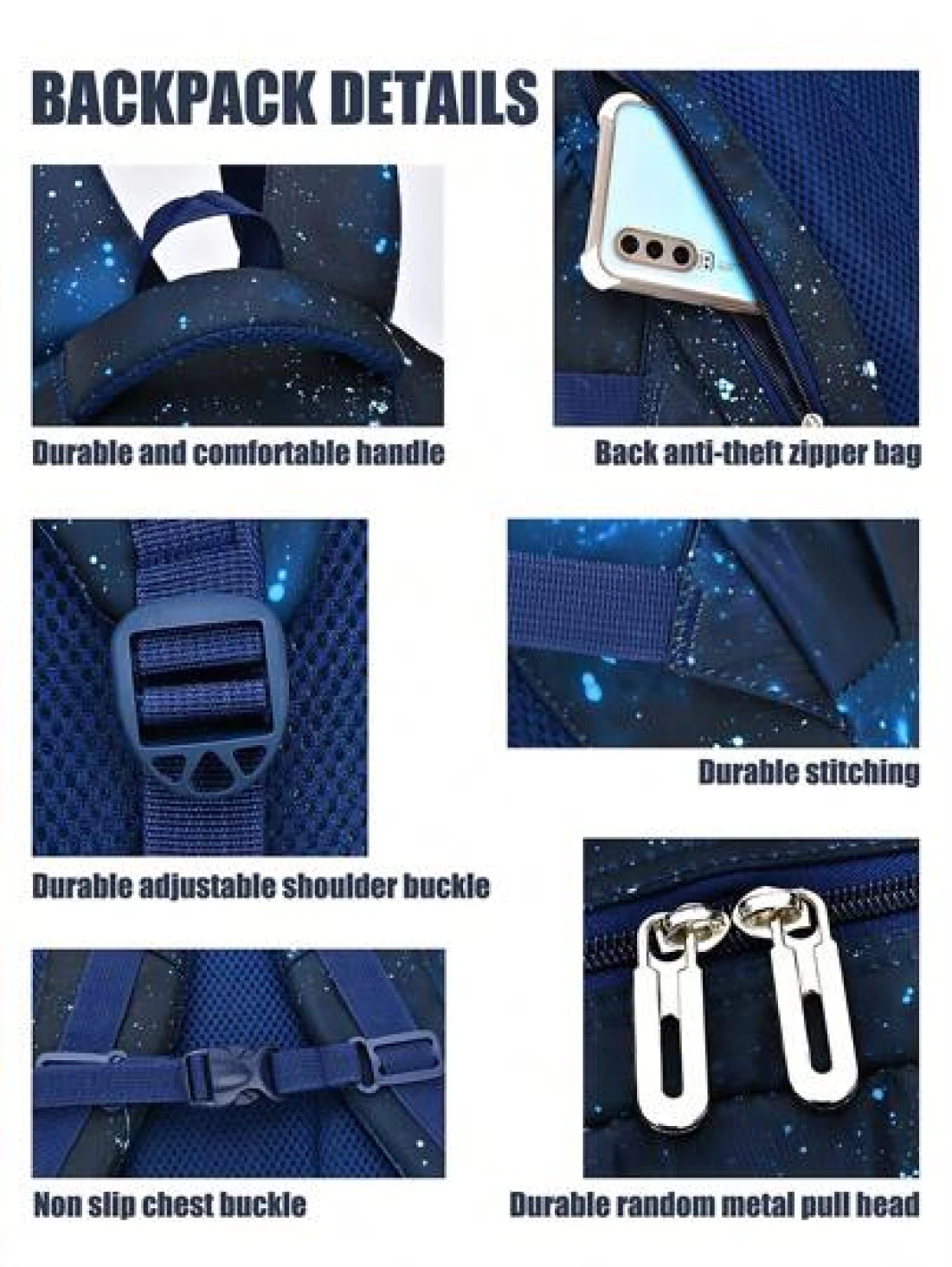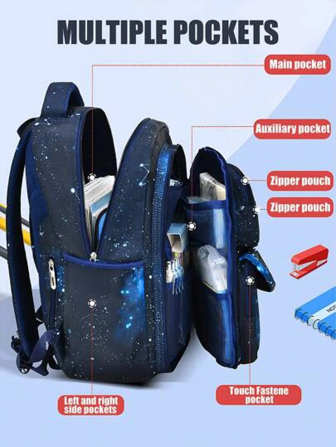 1pc School Backpack Boys Backpack Student Children Backpack Outdoor Travel Bag Starry Sky Printed Backpack Large Capacity Multi Pocket Backpack Laptop Backpack Nylon Material Suitable For Teenagers Yo