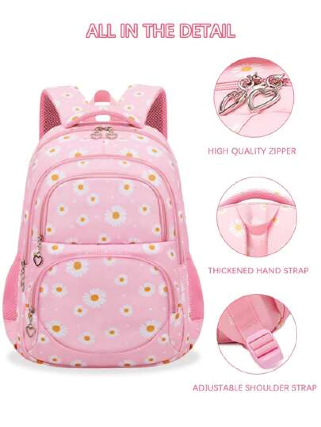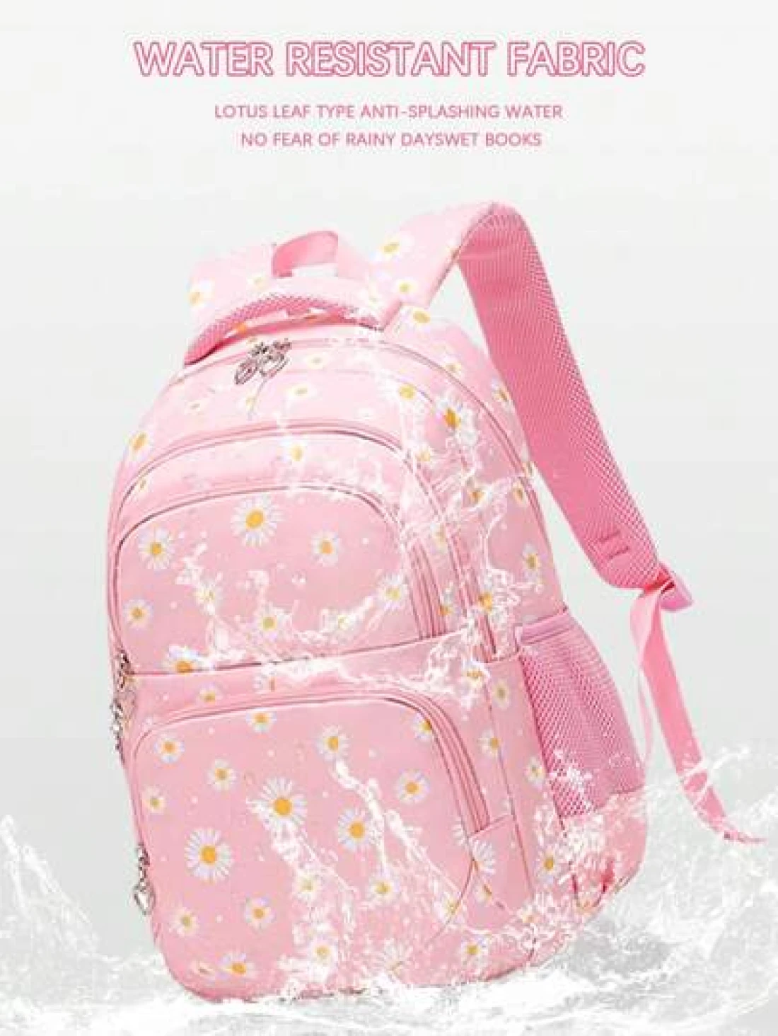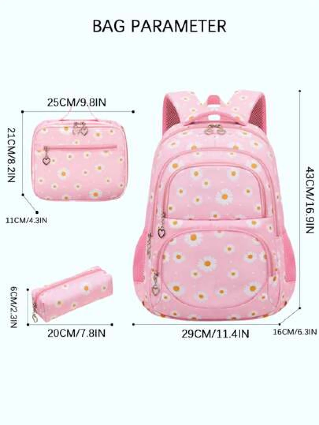 3pcs Set Backpack Set With Daisy Flower Pattern Suitable For Students School Backpack Lunch Bag Pencil Case Backpack