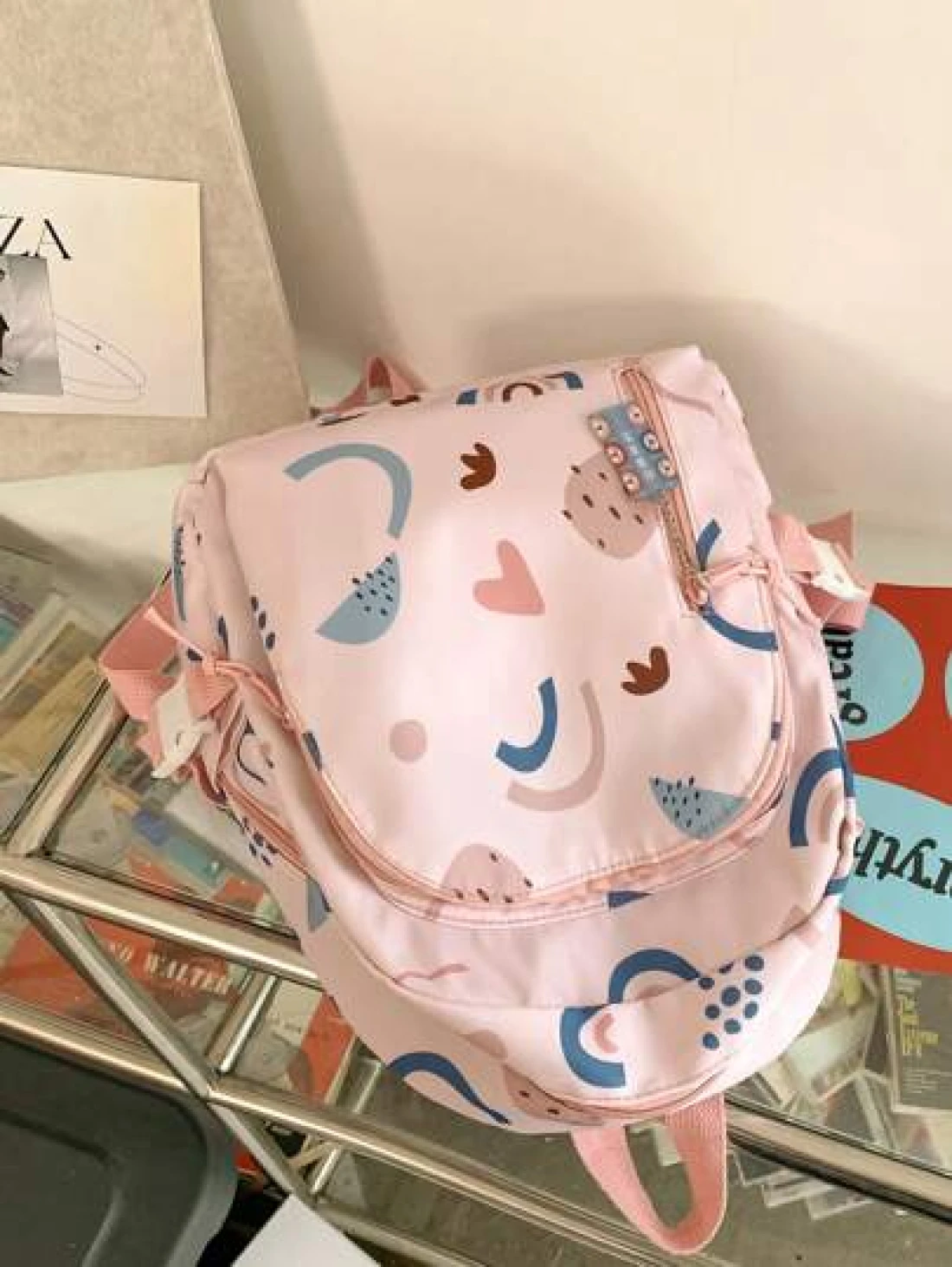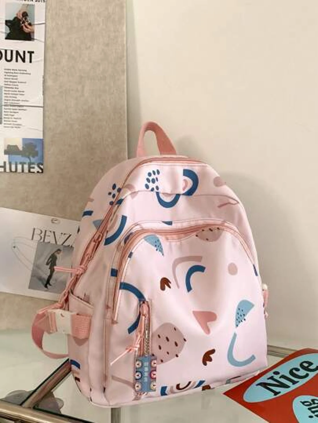 Cute Hundred School Shoulder Backpack Includes Pendant Flower Printed Backpack Kawaii Style Student Schoolbag Girls Travel Backpack Kids Backpacks
