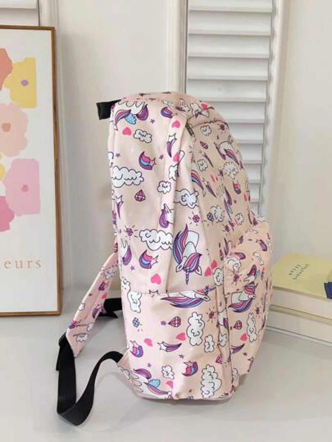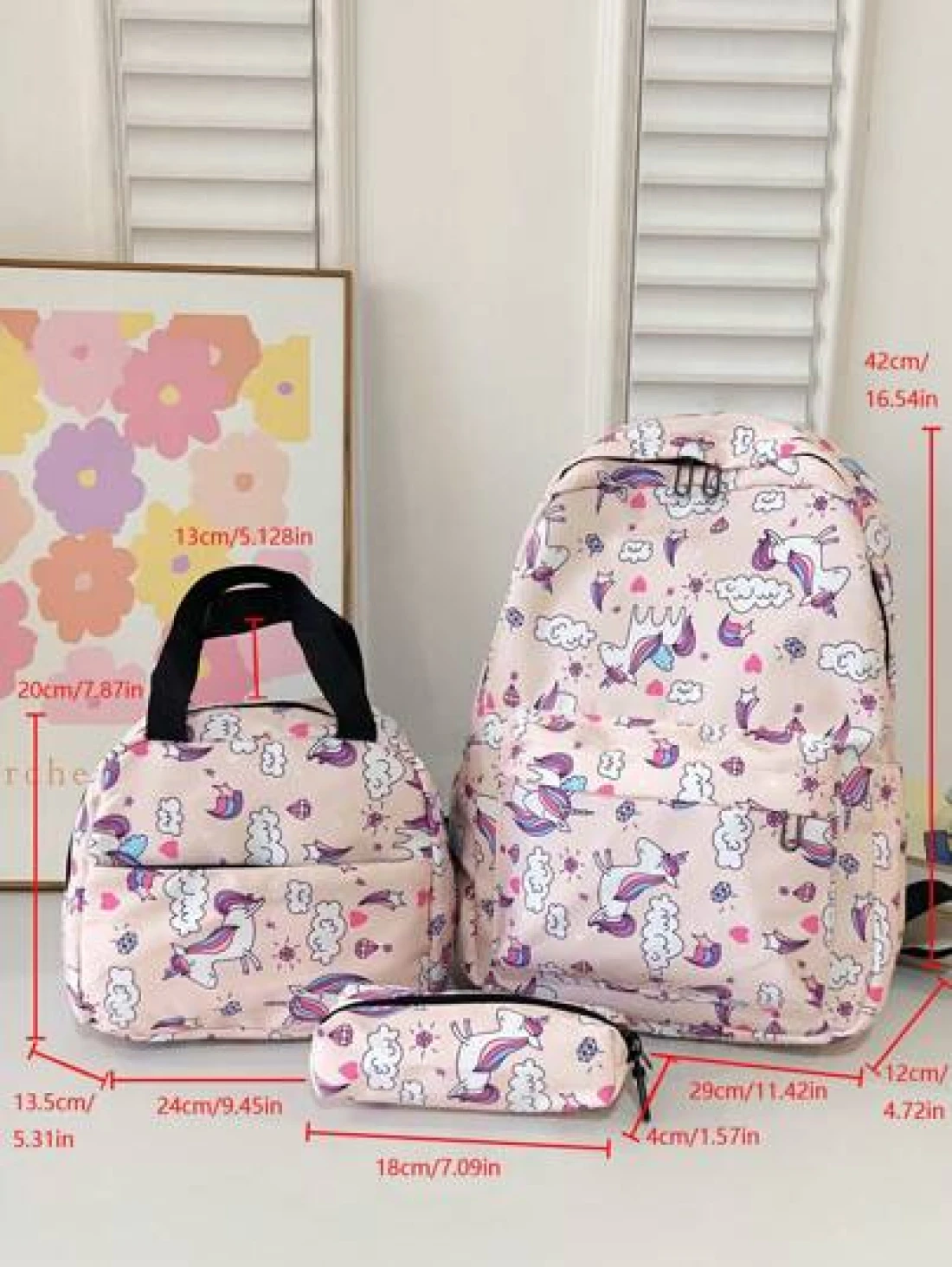 3 Pieces Set Of Fashionable Printed Leisure Travel Backpack Large Capacity Backpack Children Backpack Backpack Preparatory Style School Fashion Backpack Bag Large Capacity With Insulated Lunch Bag With Pen Case Pink For Girl College School Bag Set School Essential Stuff For Girl Students Student Bag Sets With Pencil Case