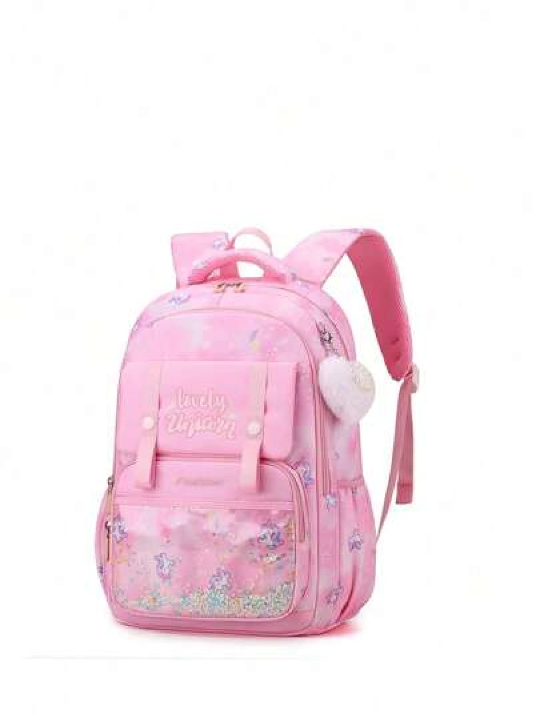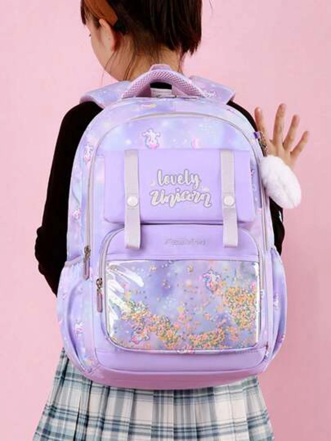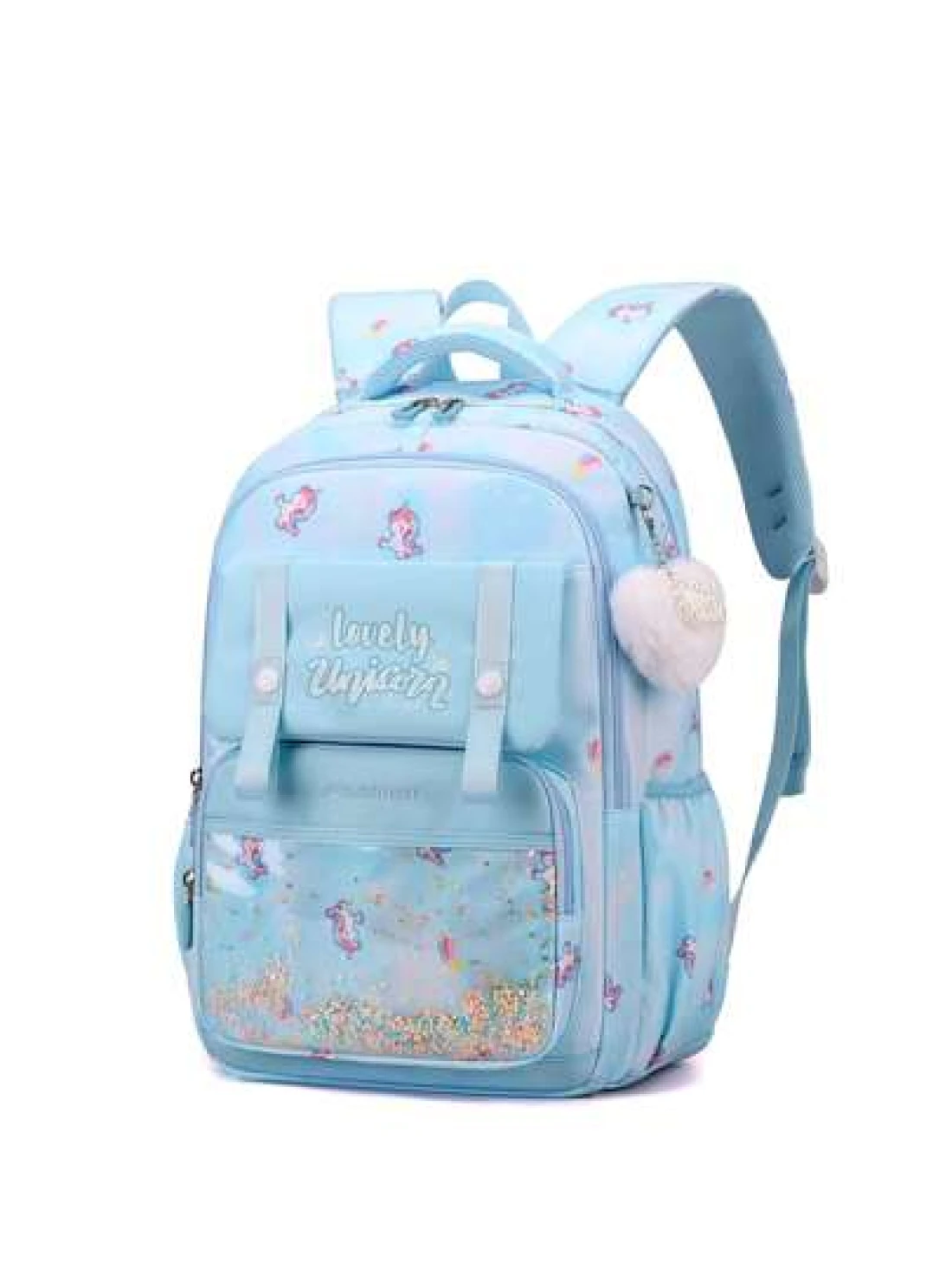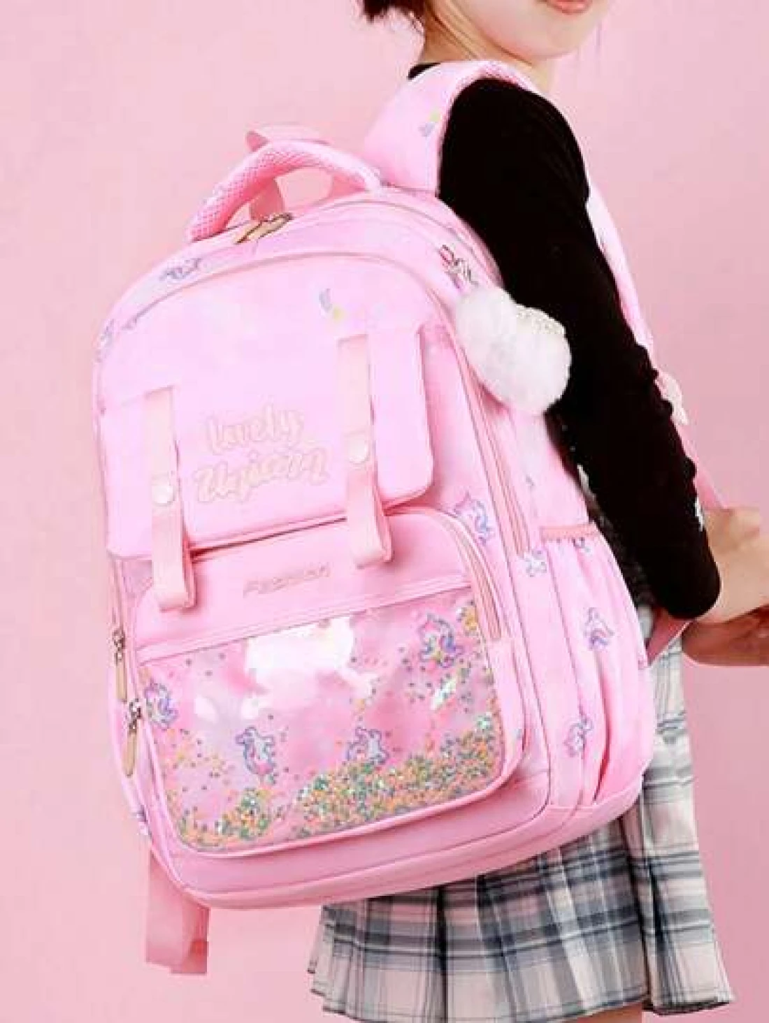 Large Capacity Shockproof Multi Layer Children s Backpack Waterproof Schoolbag With Pendant Decoration Printed Unicorn Pattern Shoulder Bag