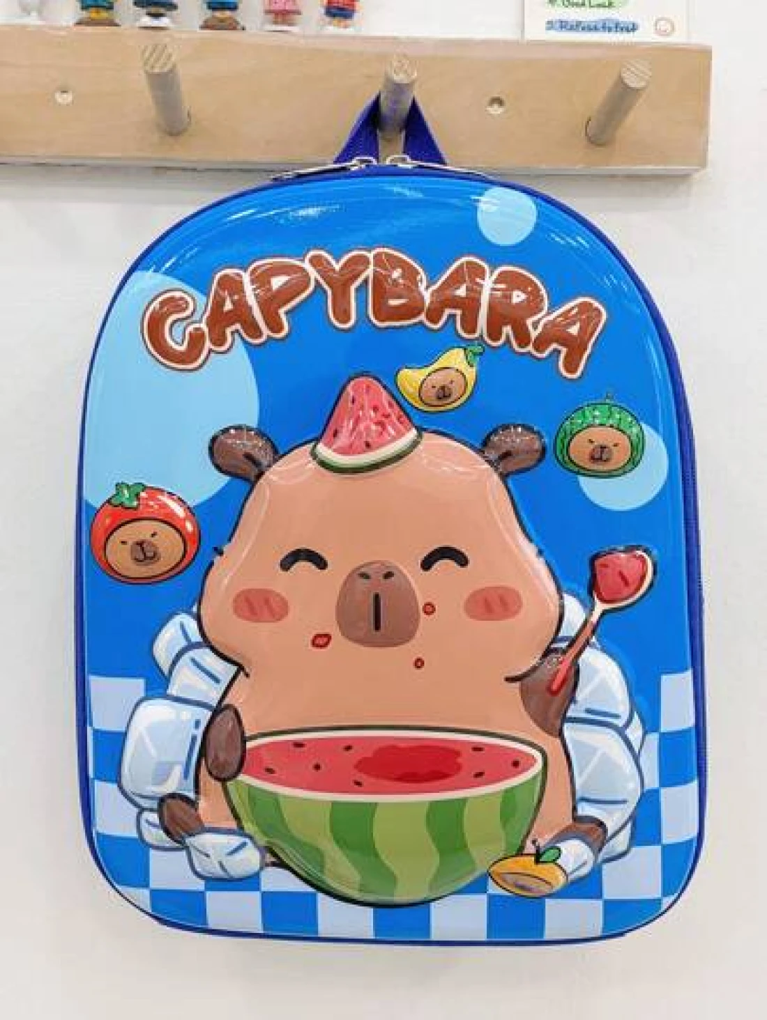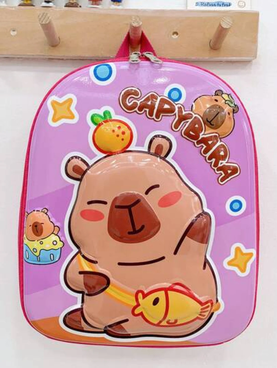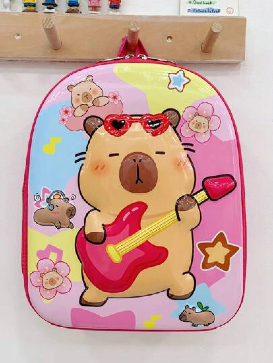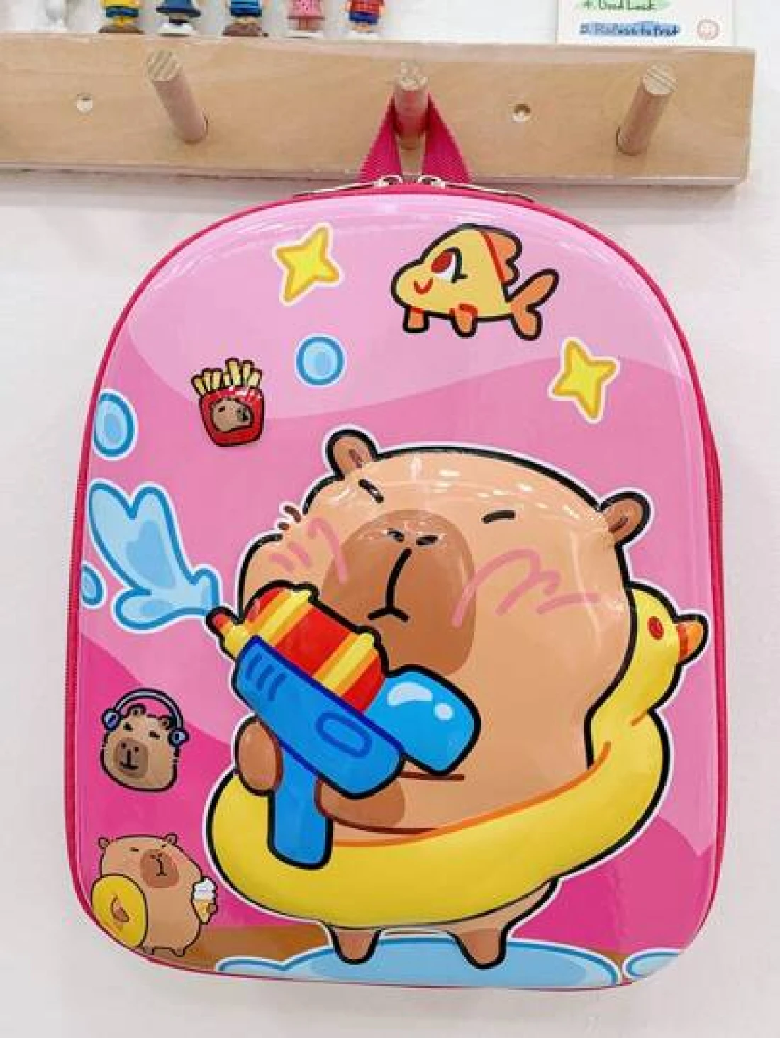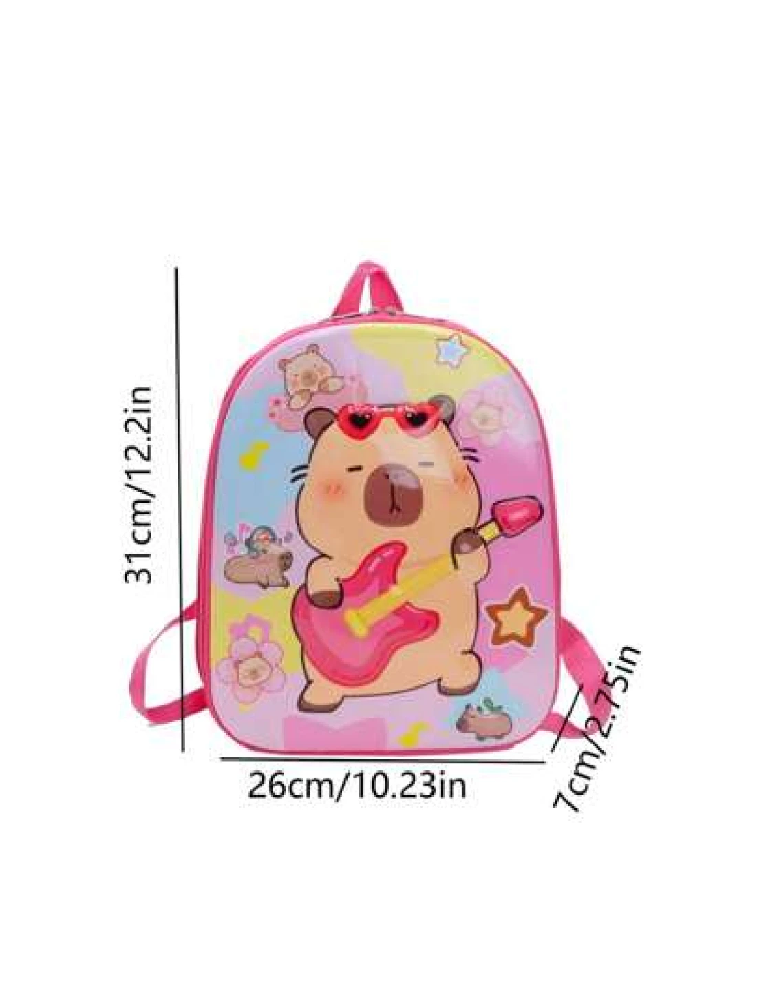1 Pc New Boys And Girls Cartoon Capybara Print Pvc Nylon Backpack Adjustable Straps Zipper Closure Cute Casual Bag For School Outdoor Activities Travel And Friends Gift