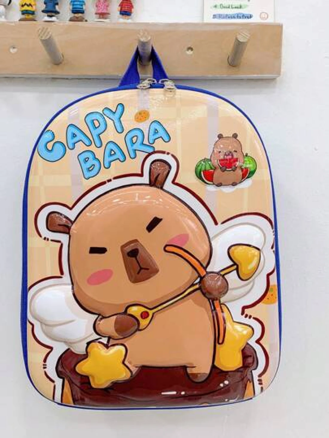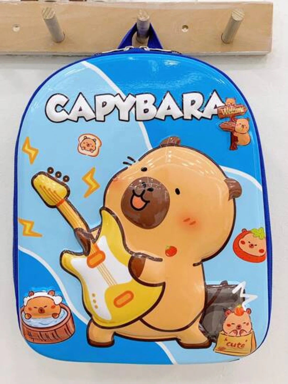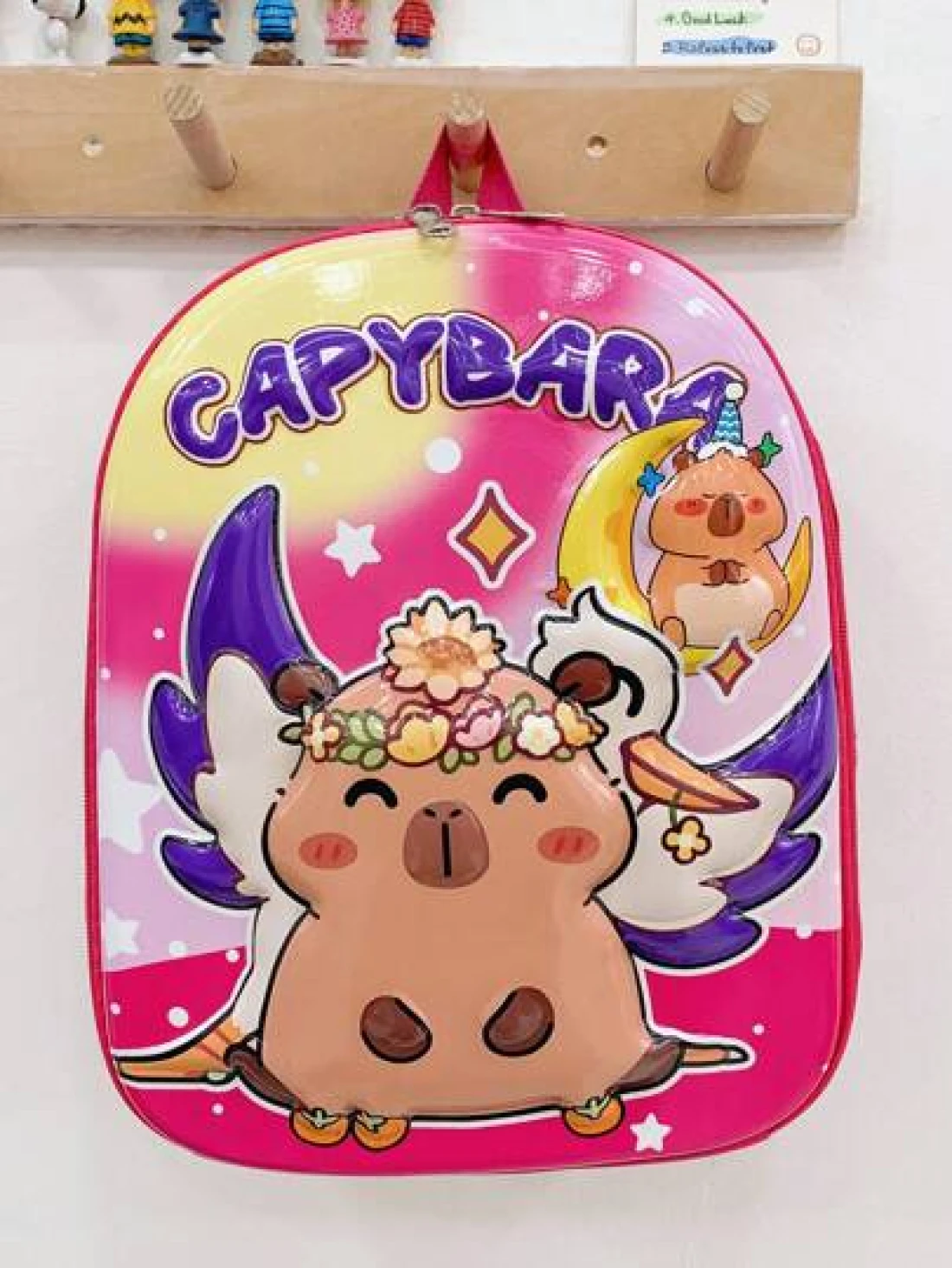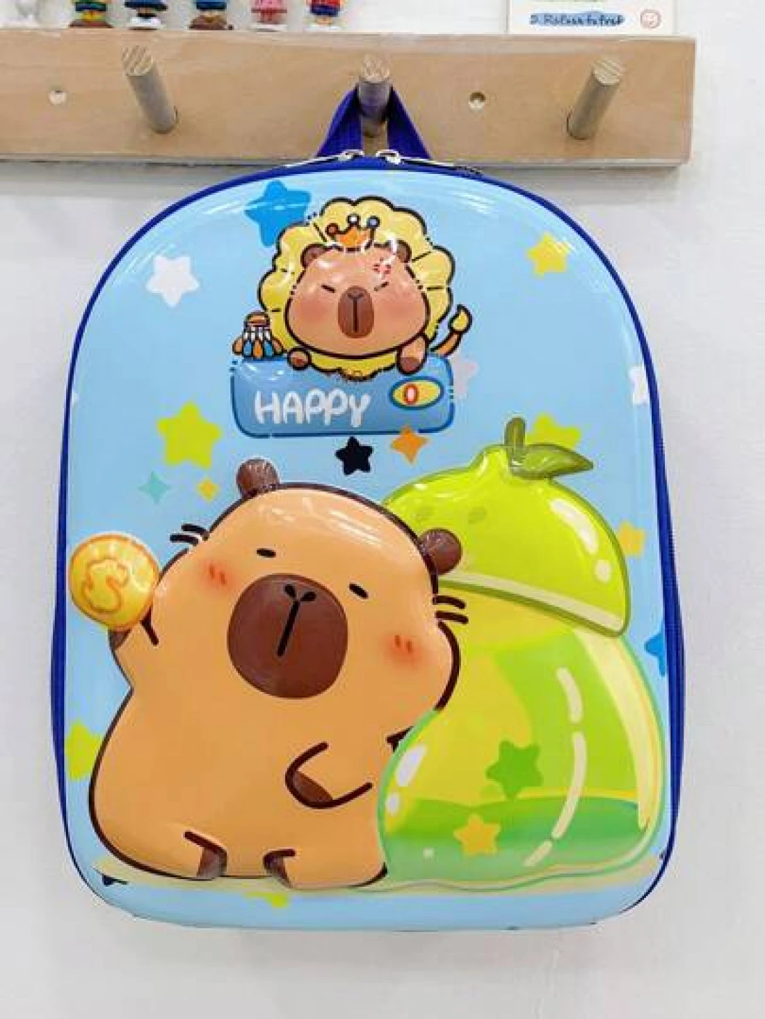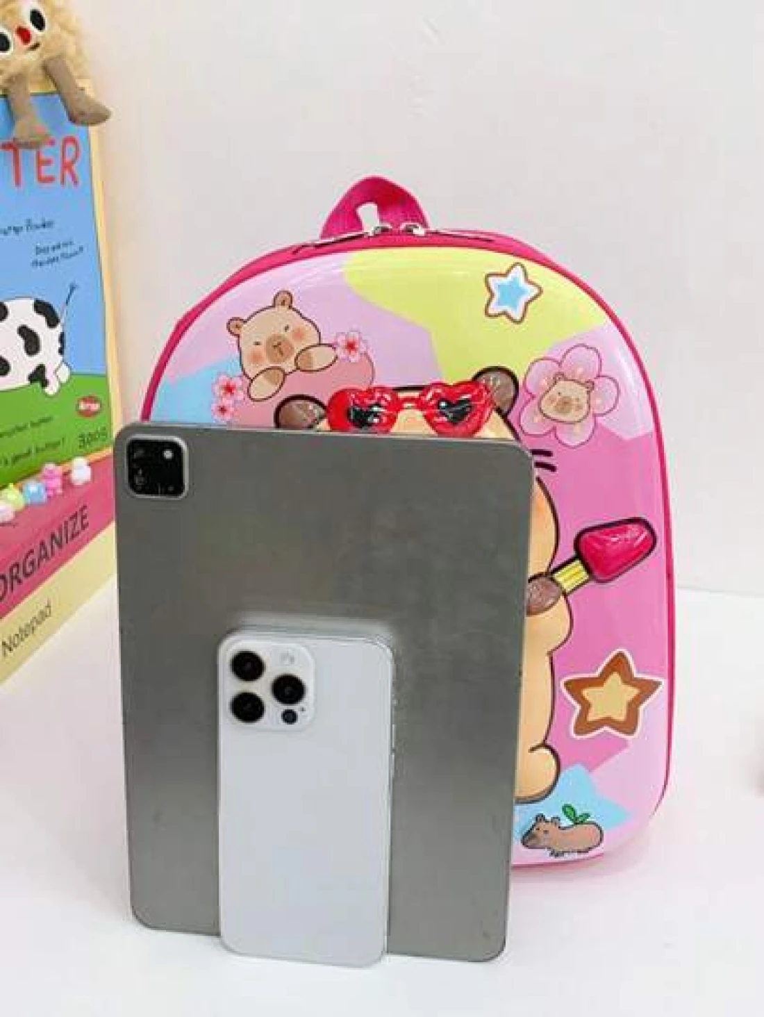 1 Pc New Boys And Girls Cartoon Capybara Print Pvc Nylon Backpack Adjustable Straps Zipper Closure Cute Casual Bag For School Outdoor Activities Travel And Friends Gift
