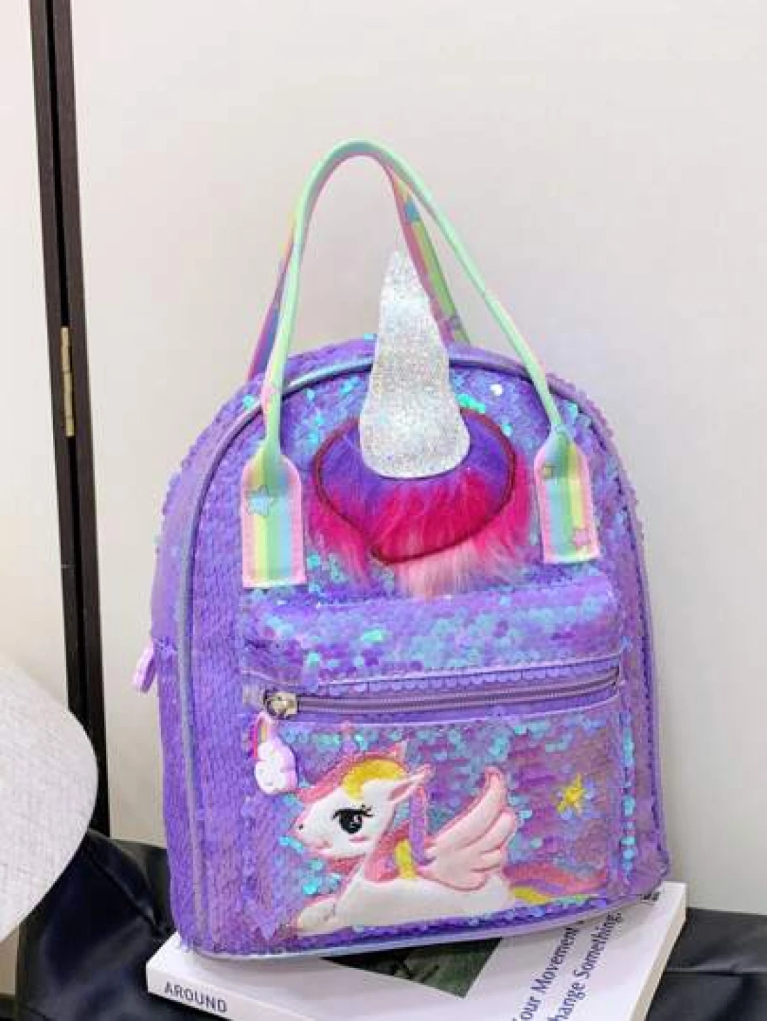 1 Pc New Sequined Material Cute Cartoon Pony Solid Color Girl Backpack Can Be Carried On One Shoulder Smooth Zipper Opening And Closing Sweet And Exquisite Elegant And Stylish Suitable For School Trav