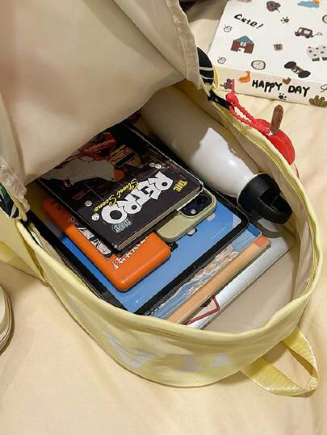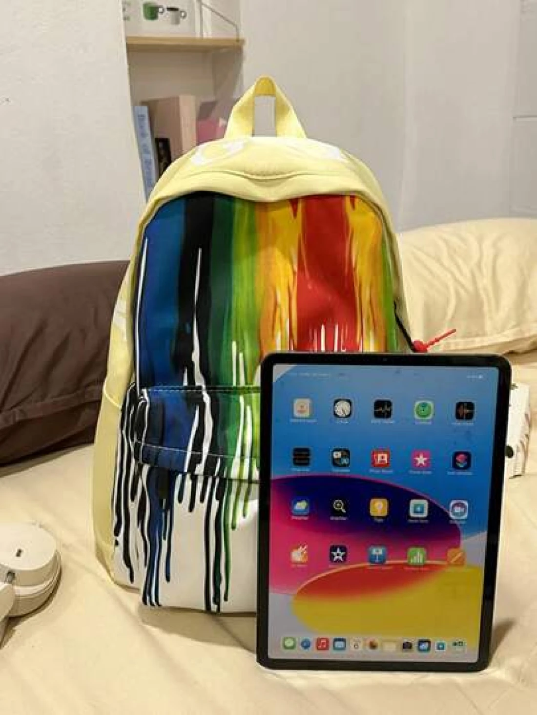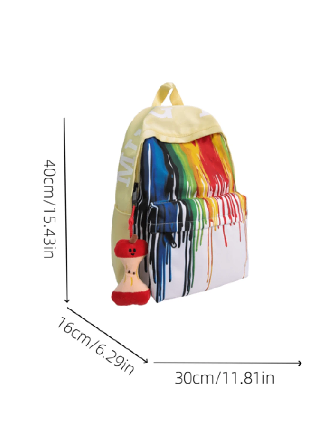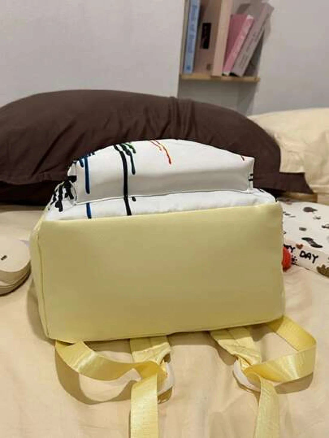 1pc New Fashion Versatile Contrast Color Graffiti Student Backpack Waterproof Nylon Large Capacity Outdoor Schoolbag No Pendant