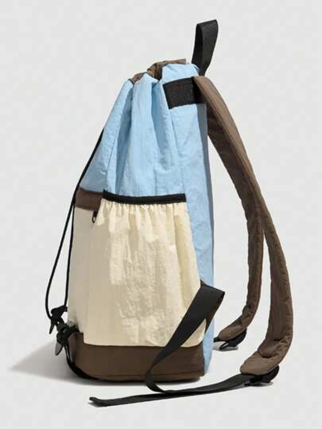 1pc New Fashionable High End Contrast Color Student Backpack Lightweight Backpack For Outdoor Sports And Casual Water Resistant Nylon