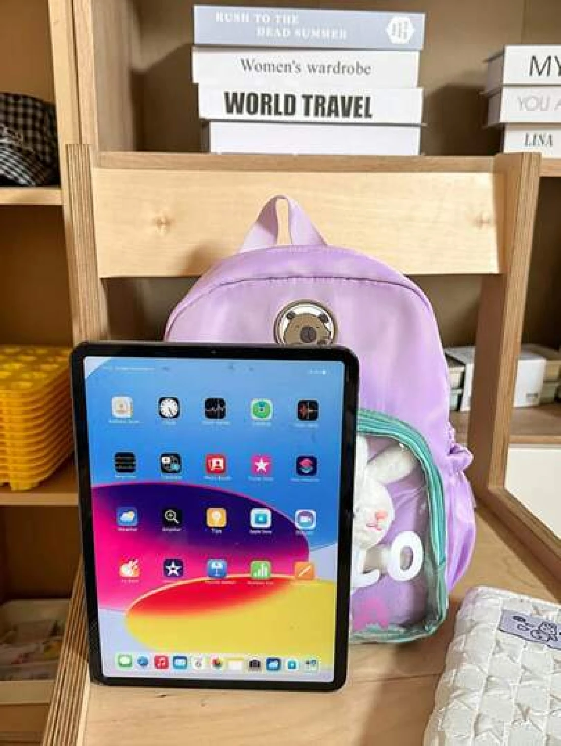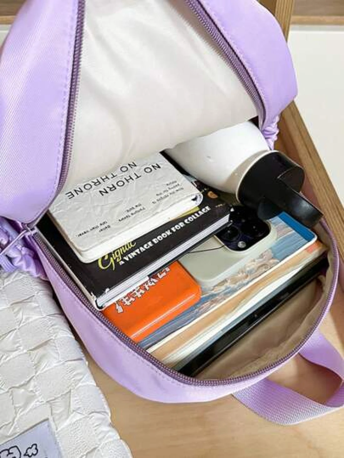 1pc New Fashion Contrast Color Cute Student Backpack Waterproof Large Capacity Nylon Schoolbag Without Pendant