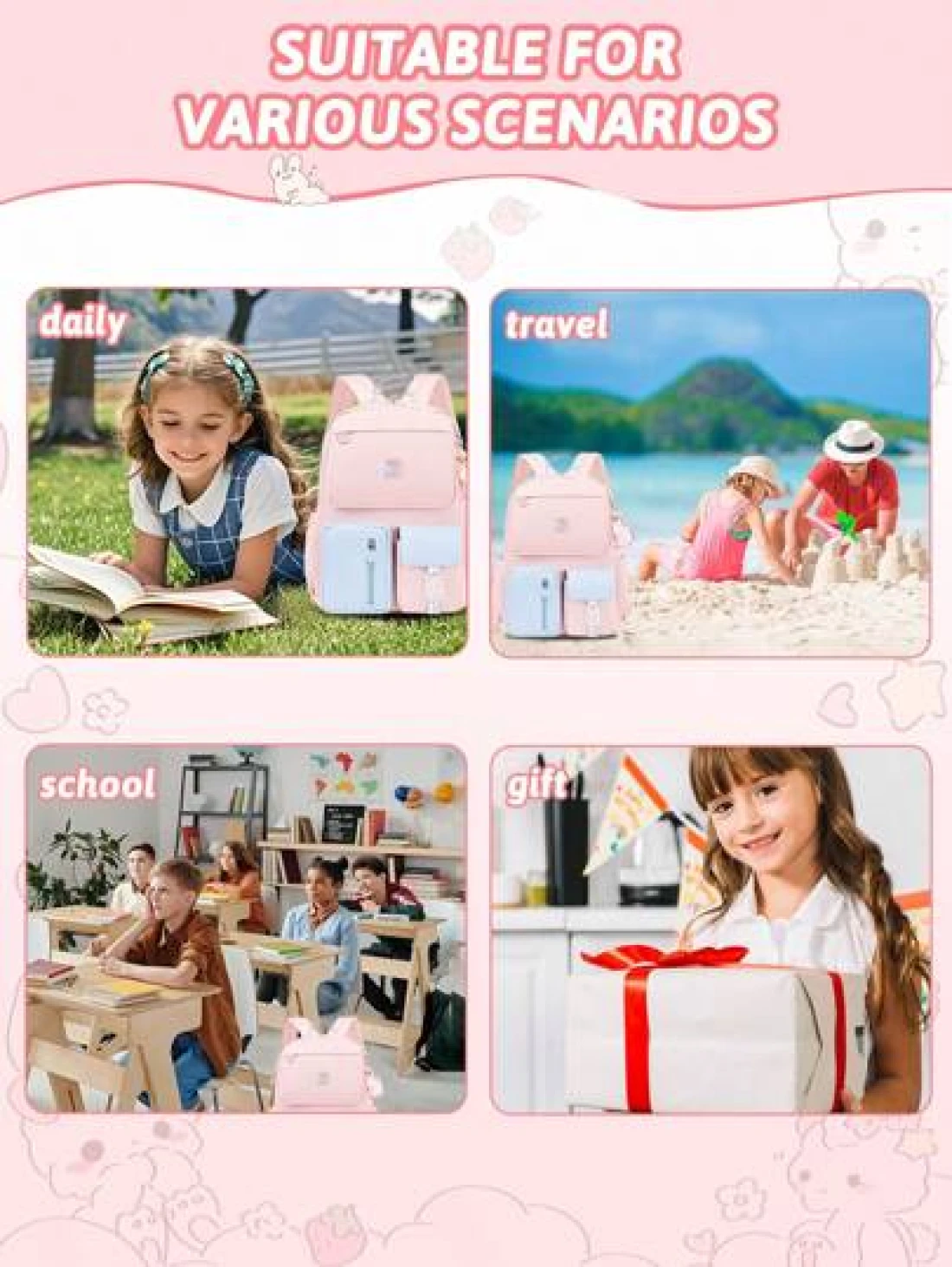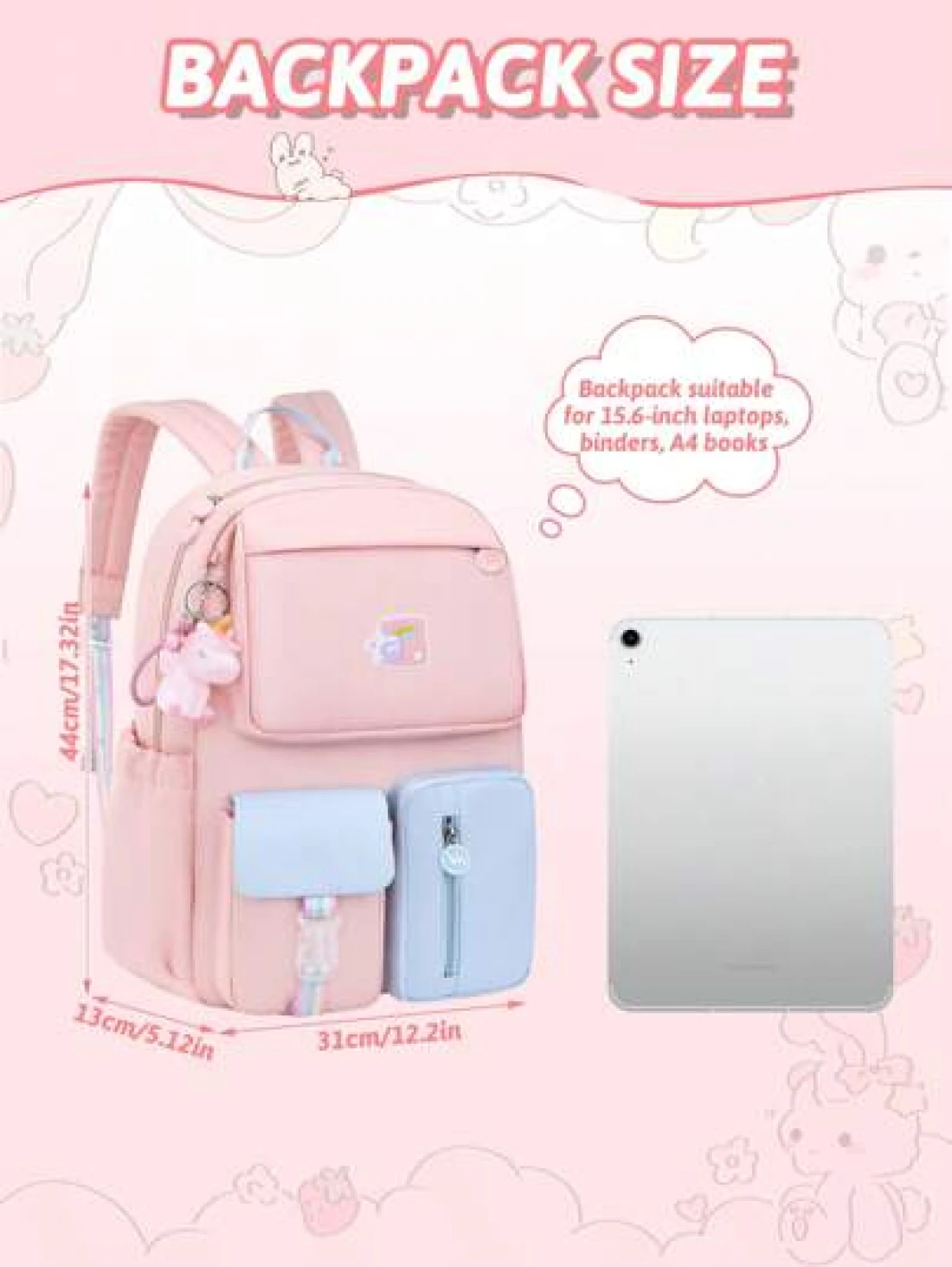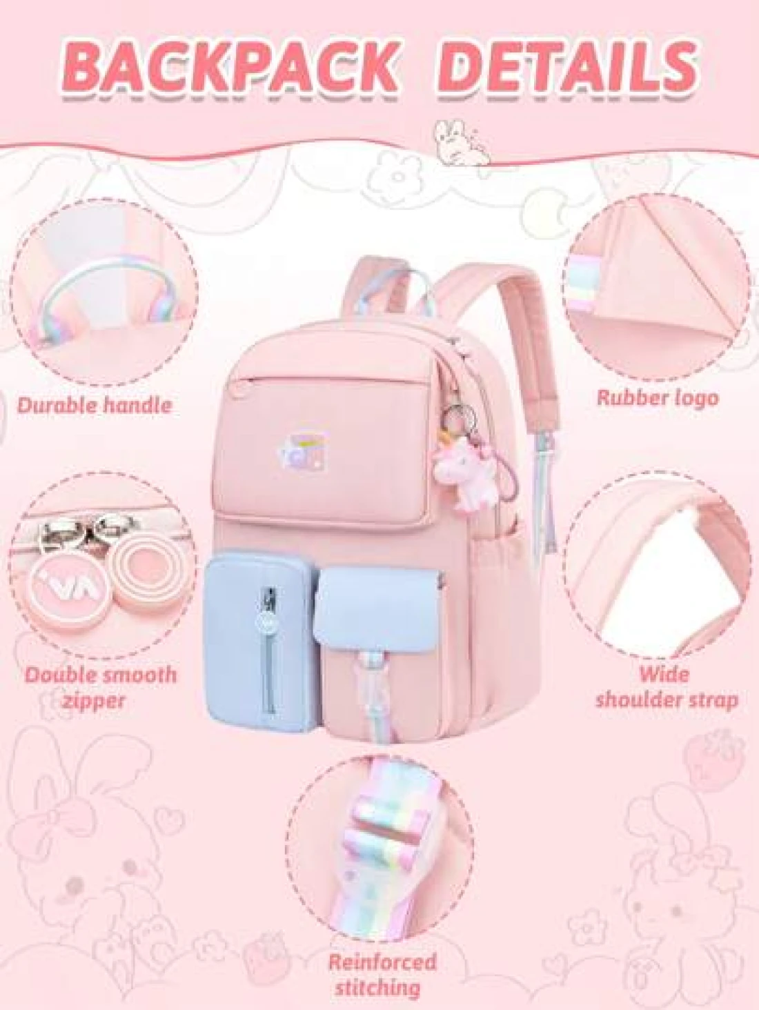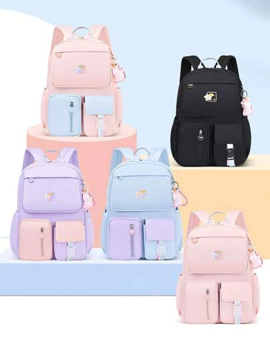 1PC Girls Backpack With Unicorn Keychain Lightweight Macaron Color School Bookbag Simple Polyester Travel Daypack For School Outdoor Ideal Birthday Gift Back To School Essential