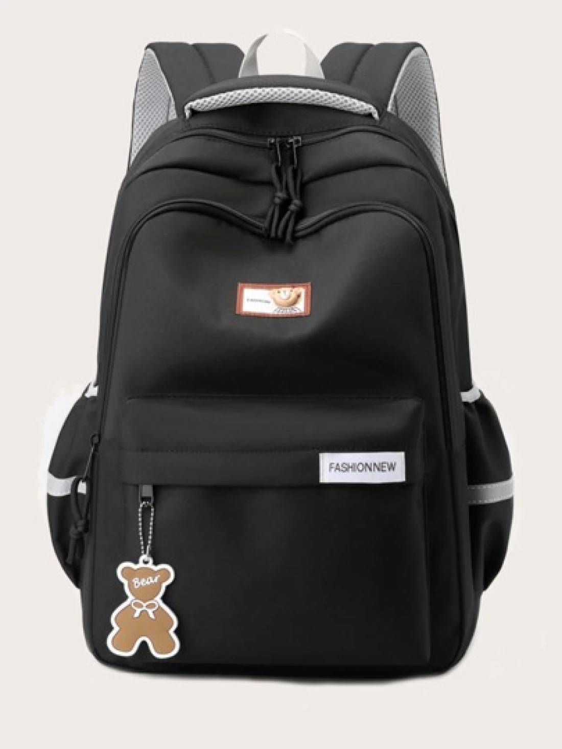Bear Charm Decoration Large Capacity Casual Fashion Backpack Solid Color School Bag Large Capacity Zipper Simple School Bag Cute Student School Bag Suitable For Girls Daily School And Outing Use
