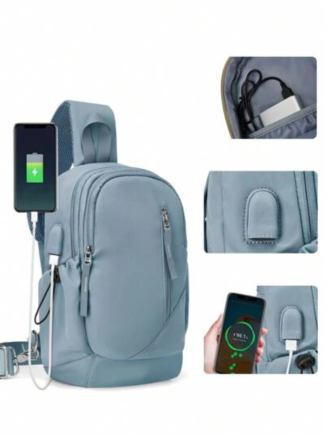 Lightweight Portable Sling Bag Large Capacity Chest Bag With USB Charging Port Multifunctional Side Bag Luxury Shoulder Bag With Multi Pockets For School Students Solid Color Waterproof Travel Crossbody Bag Unisex Mobile Phone Bag For Business Outdoor Hiking Fashion Sport Street Bag For Boy Girl