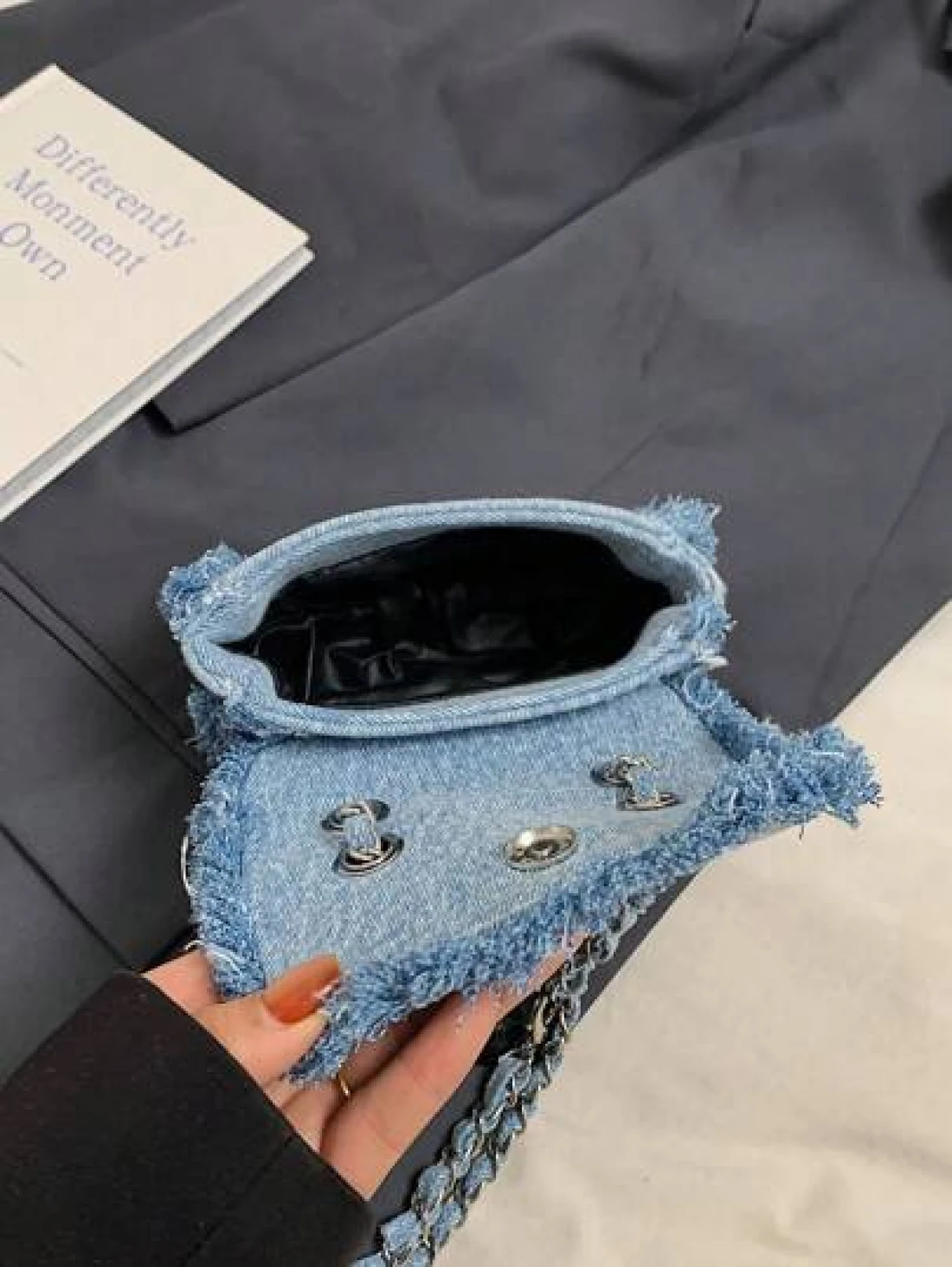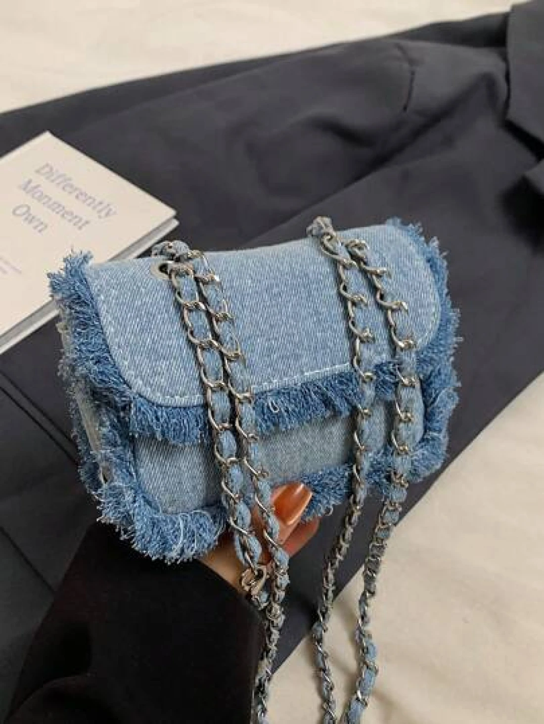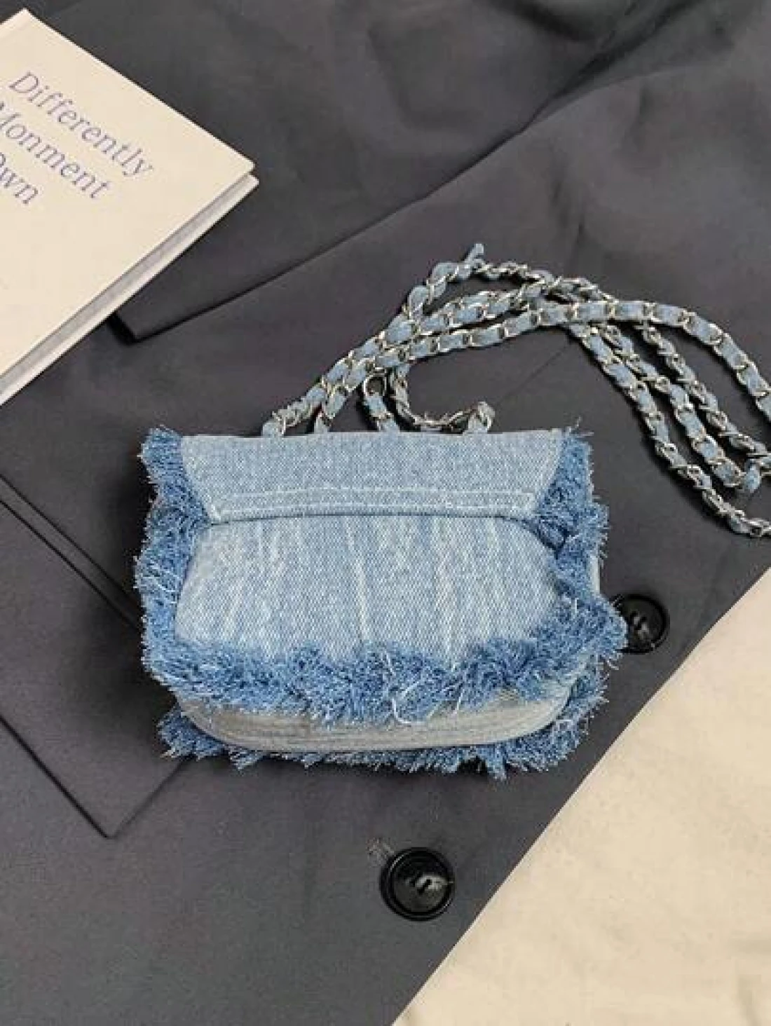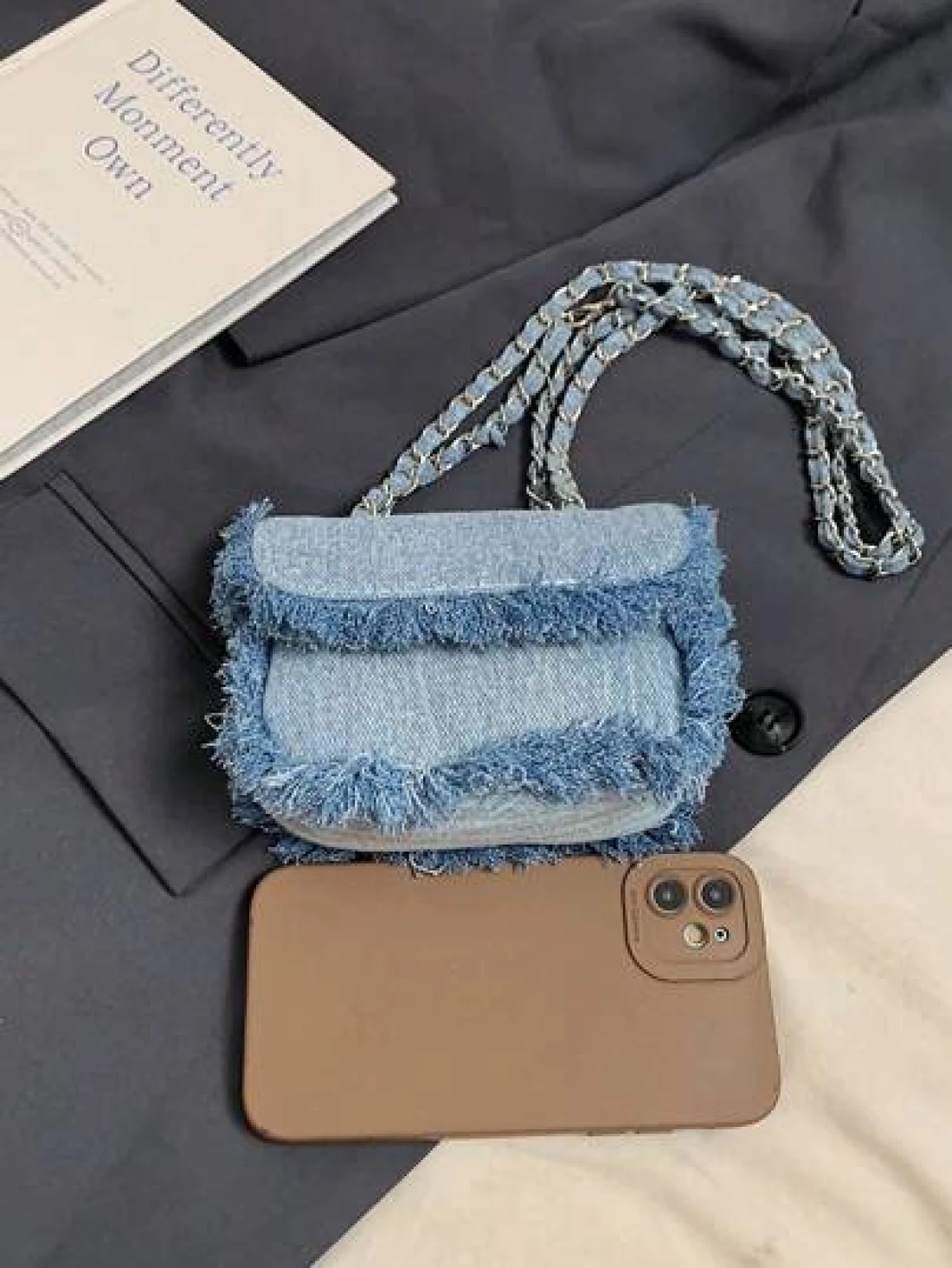 Frayed Chain Strap Shoulder Crossbody Mini Square Bag For Girls Retro Style