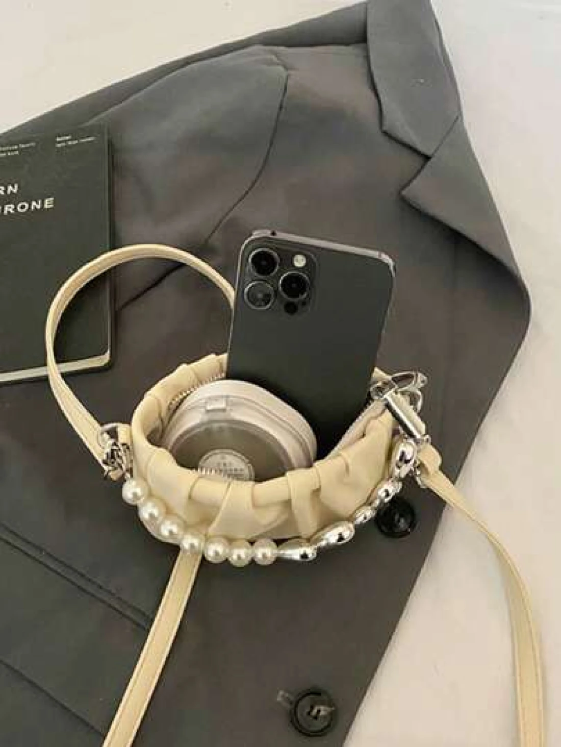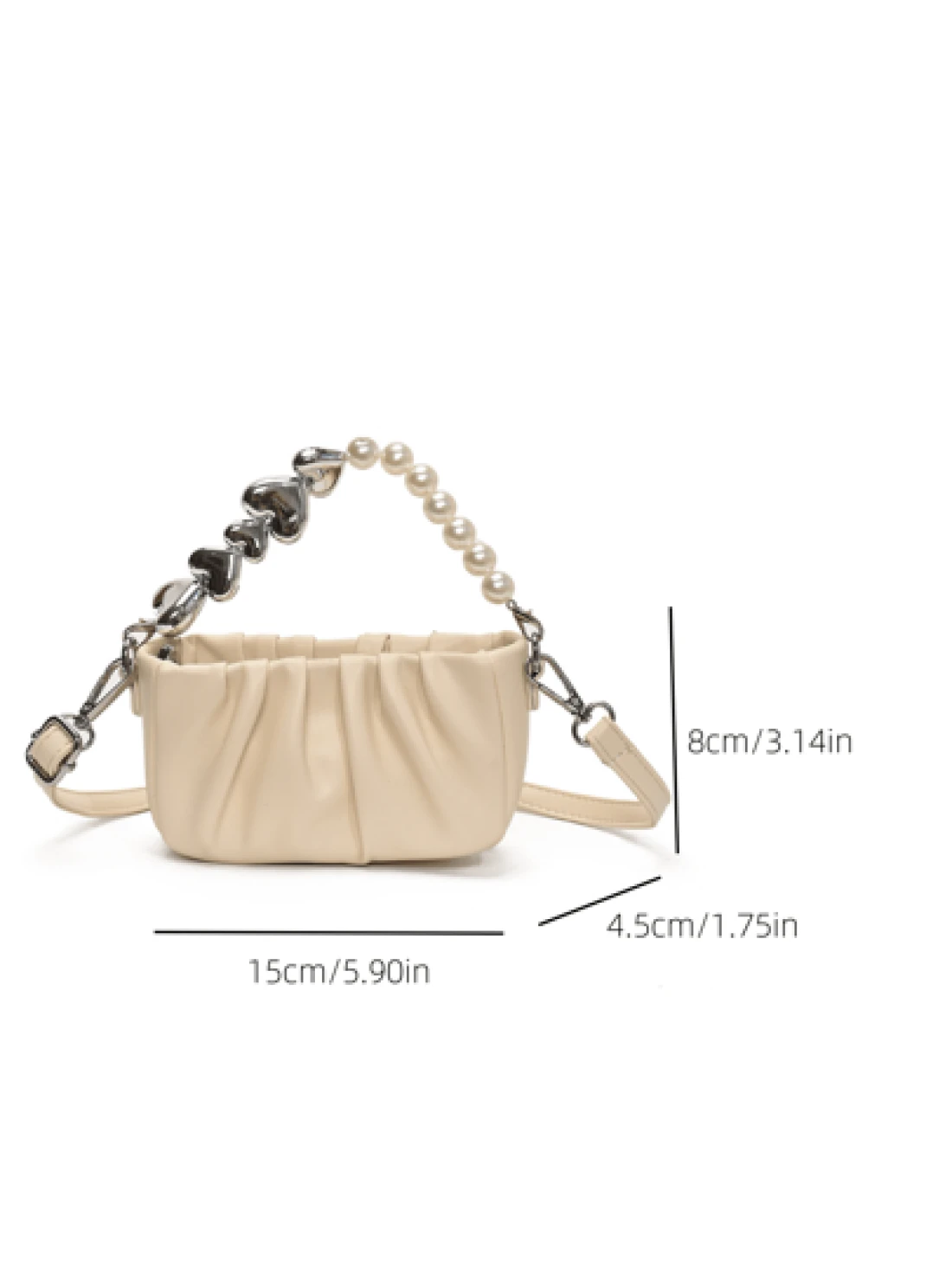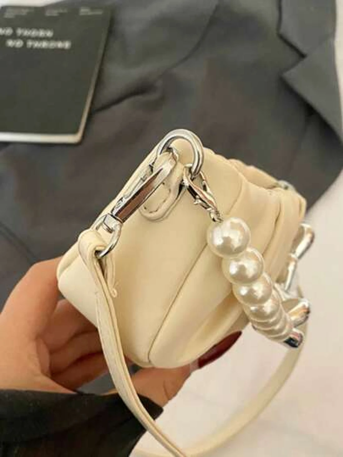 1pc New Fashion Elegant Solid Color Pearl Handbag With Pleats Shoulder Crossbody Bag