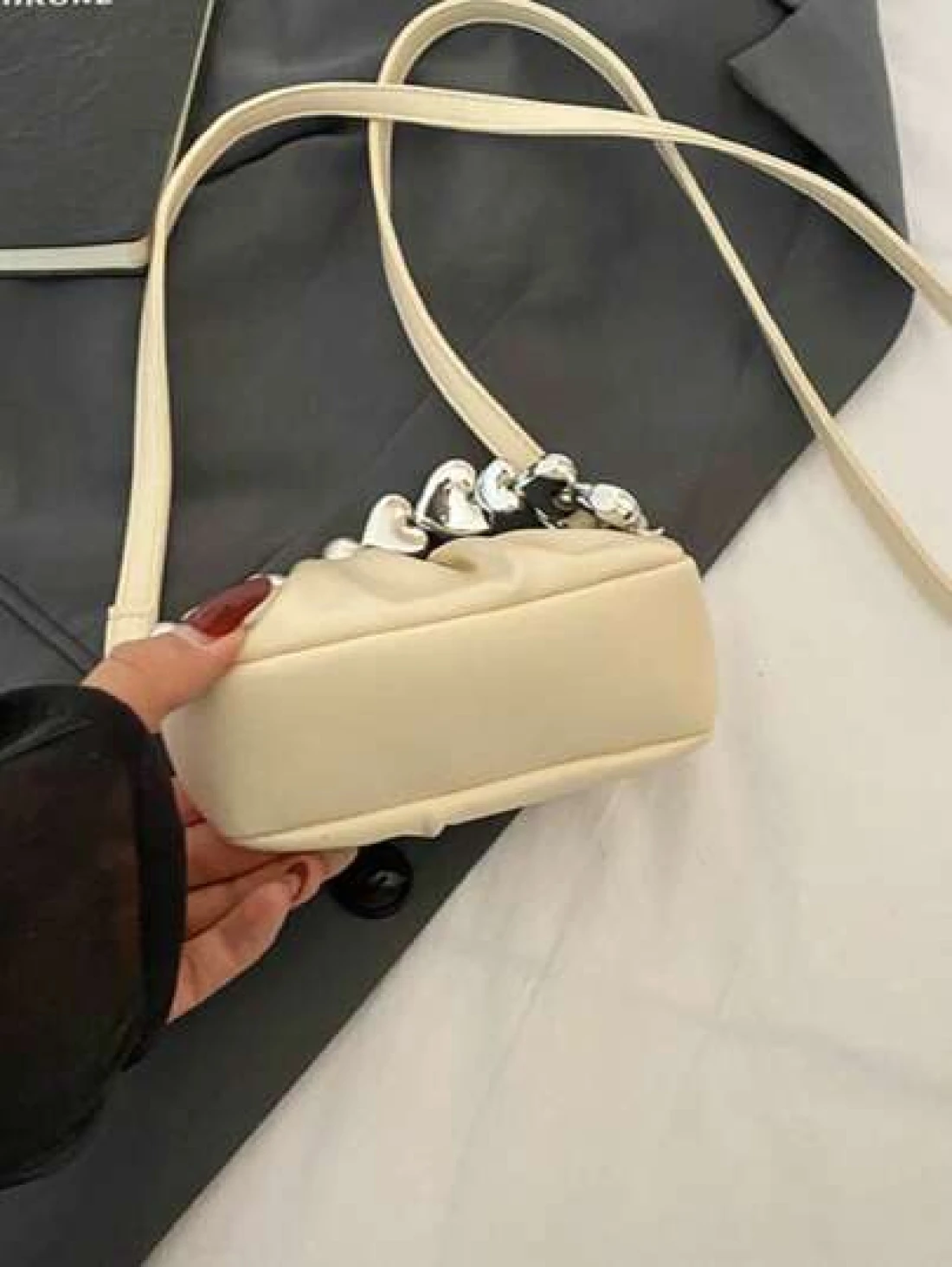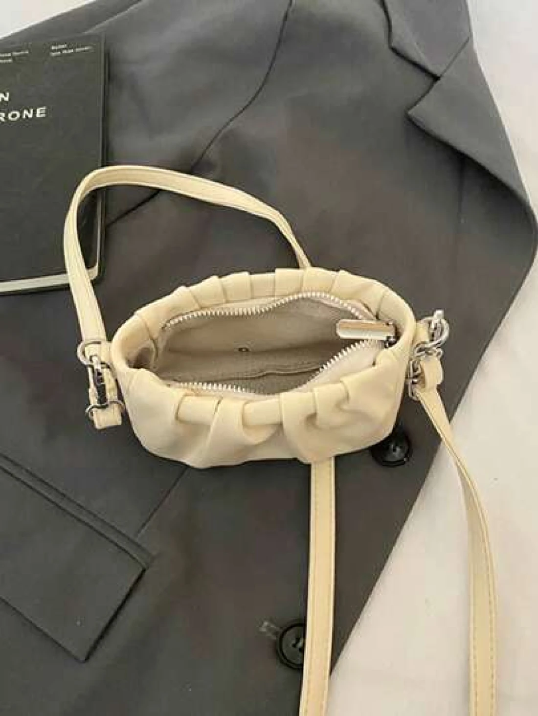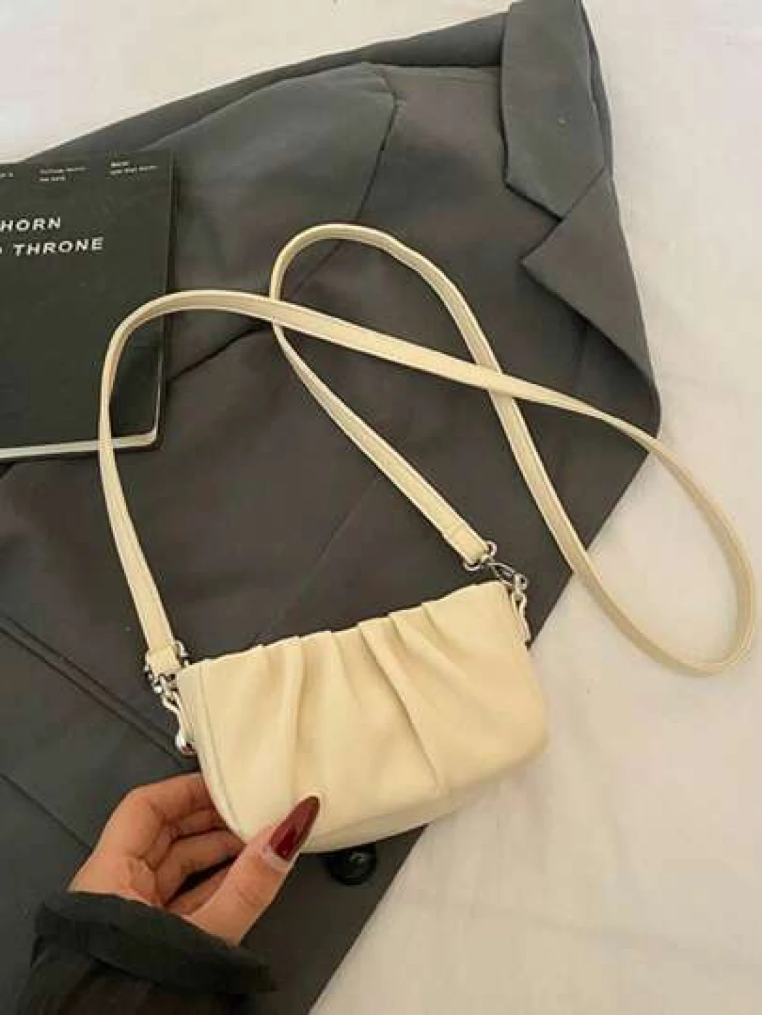 1pc New Fashion Elegant Solid Color Pearl Handbag With Pleats Shoulder Crossbody Bag