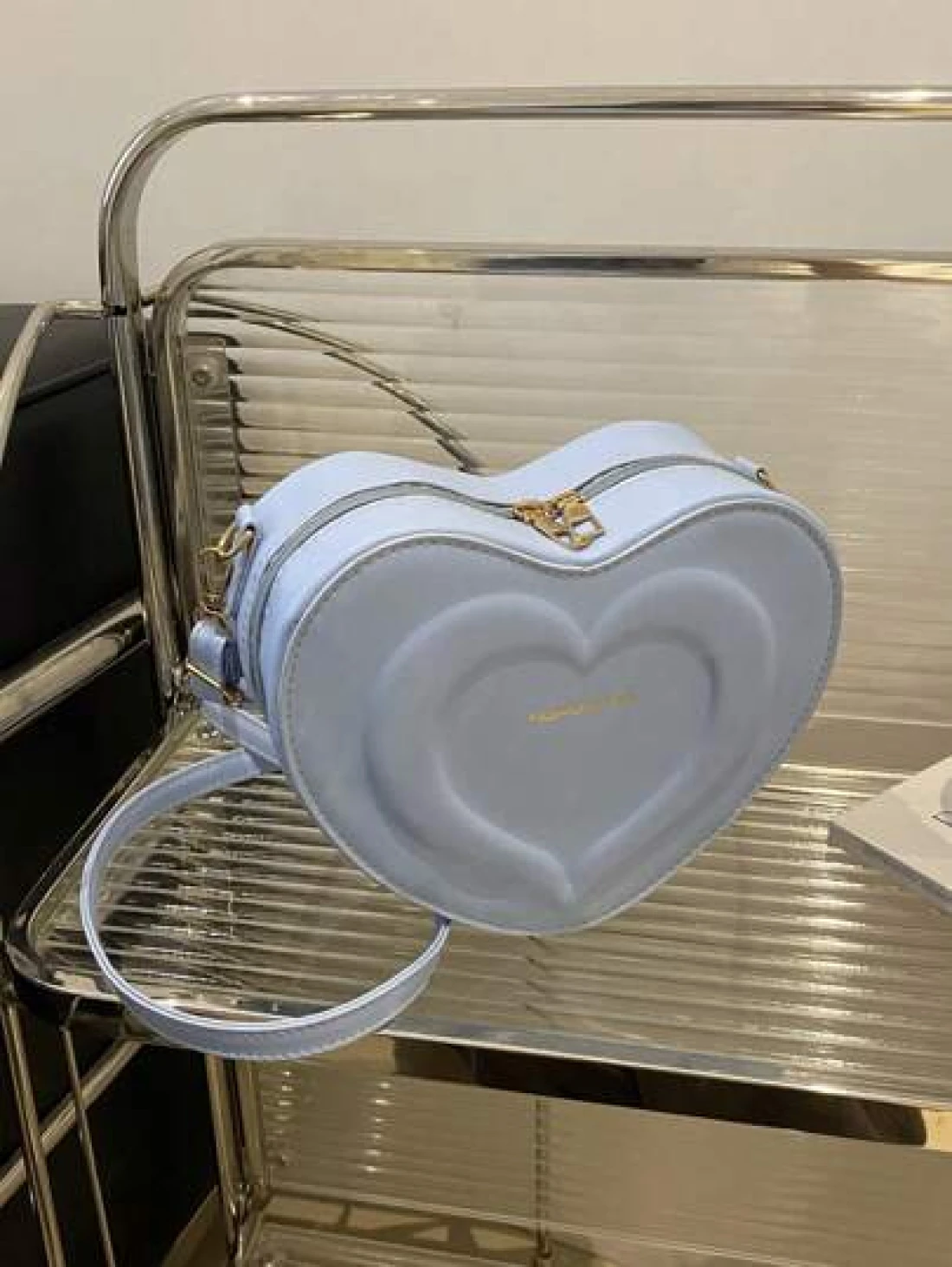 1pc A Cute And Fresh Style Heart Shaped Crossbody Bag Made Of Pu Material With Zipper Closure Adjustable Shoulder Strap And Large Capacity It Is Suitable For Teenagers Whether It Is For Students Daily