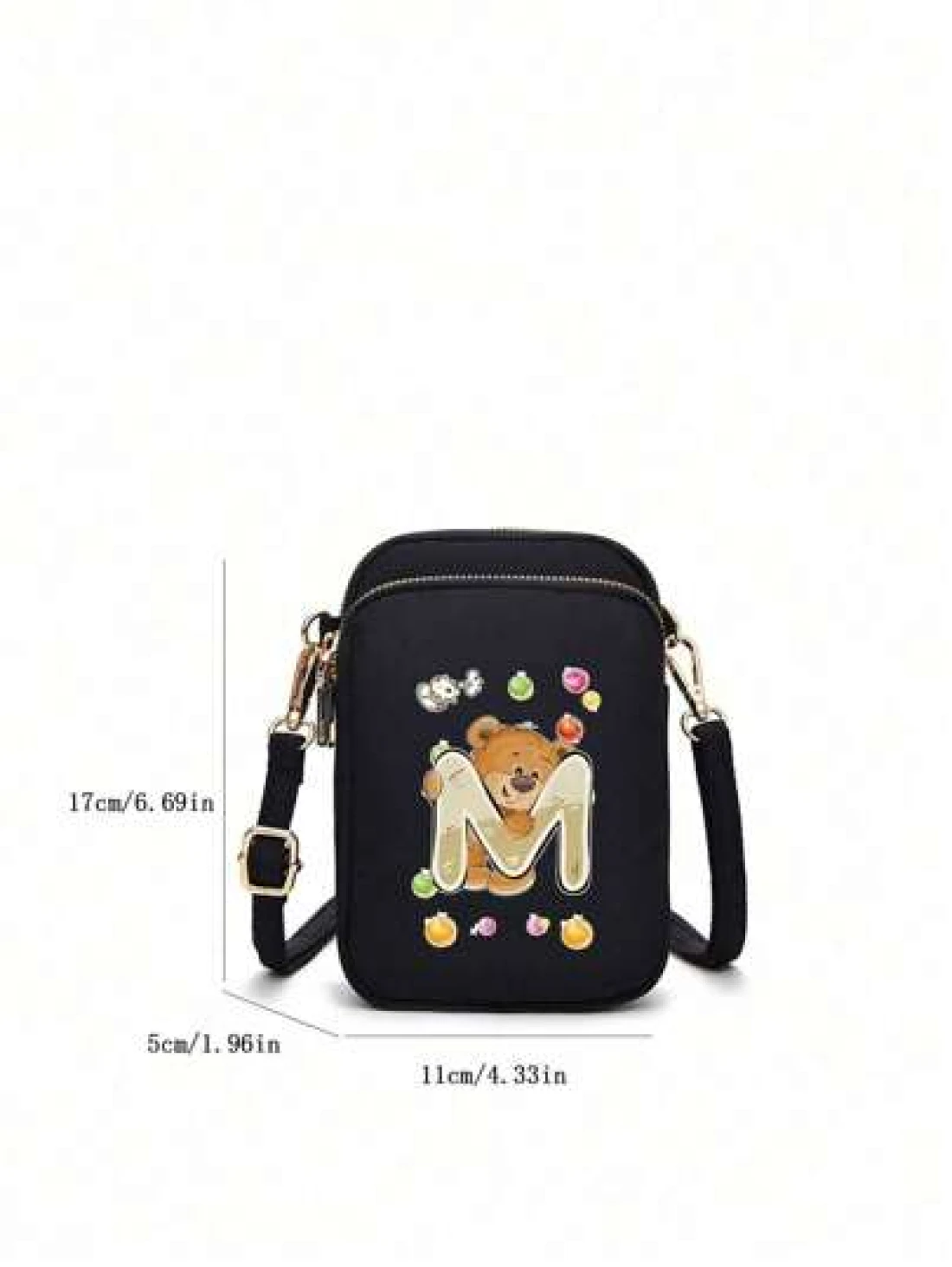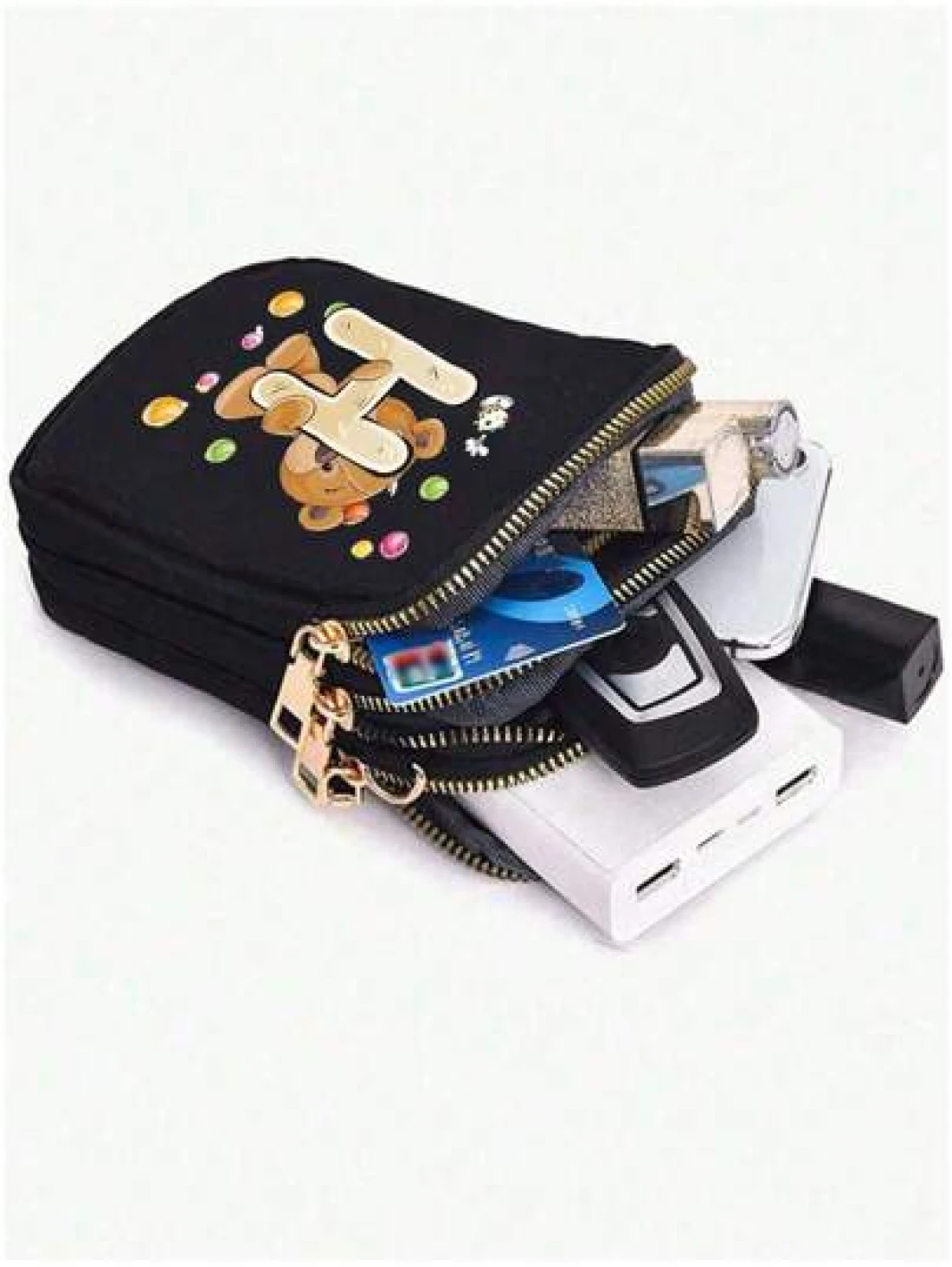 1pc Stylish And Simple Straddle Walk Mini Bag Bear Ko U Wood Printed Coin Wallet With Mobile Phone Pocket Casual Trip Back To School Gift
