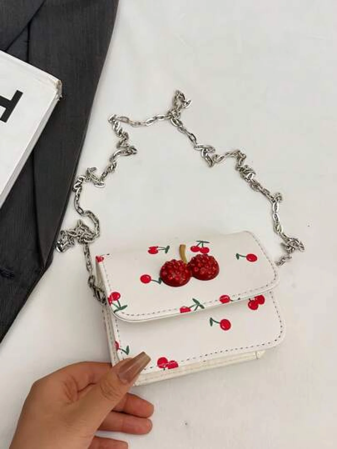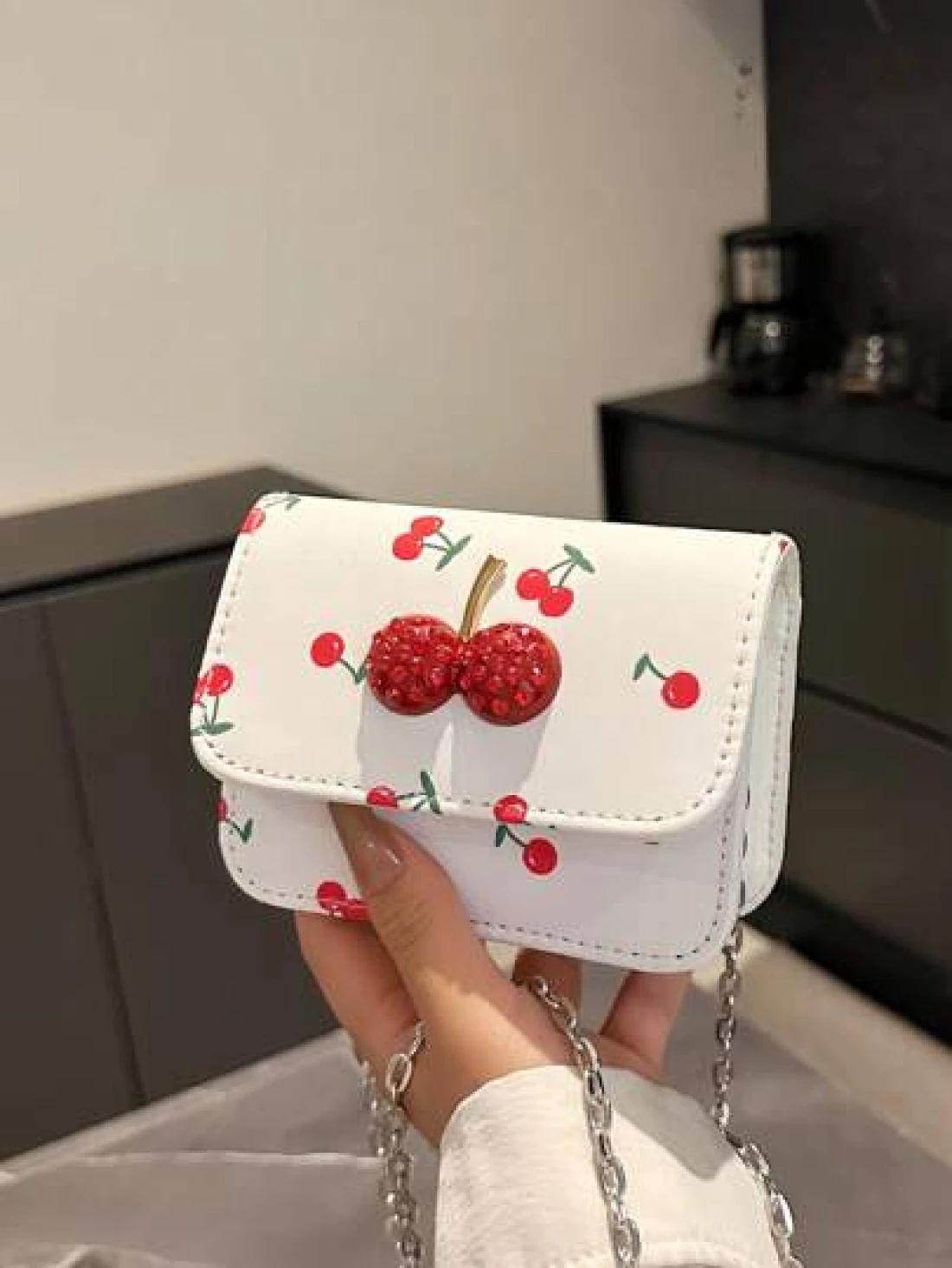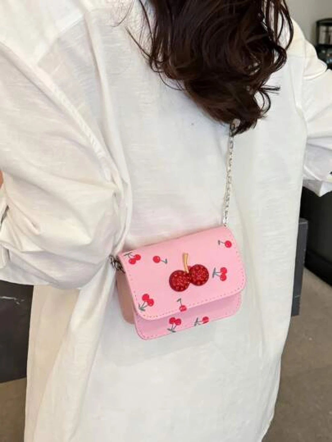 Fresh Cherry Print Mini Small Bag Foreign New Summer Cute Sweet Mini Lipstick Bag Chain Crossbody Headphone Bag Shoulder Bag Korean Fashion Crossbody Bag