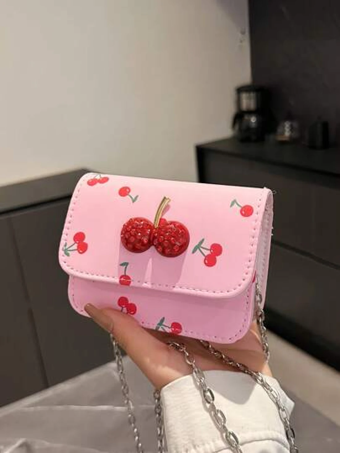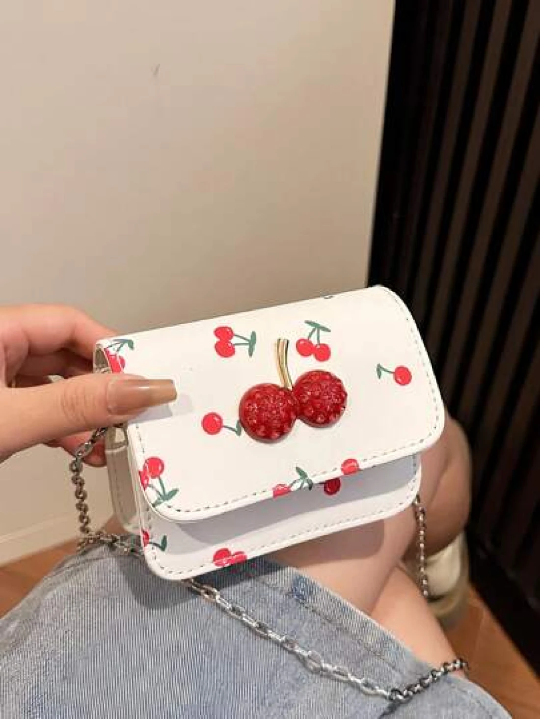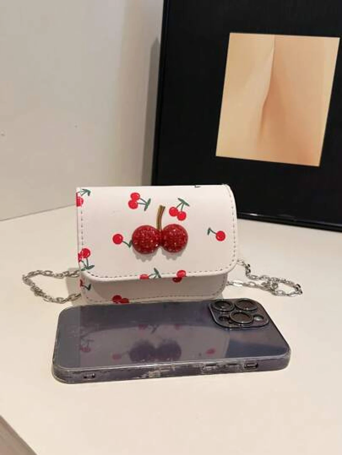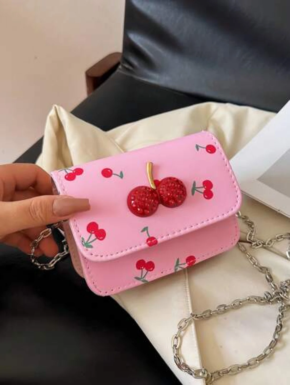 Fresh Cherry Print Mini Small Bag Foreign New Summer Cute Sweet Mini Lipstick Bag Chain Crossbody Headphone Bag Shoulder Bag Korean Fashion Crossbody Bag
