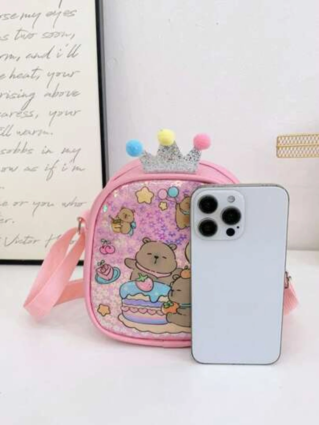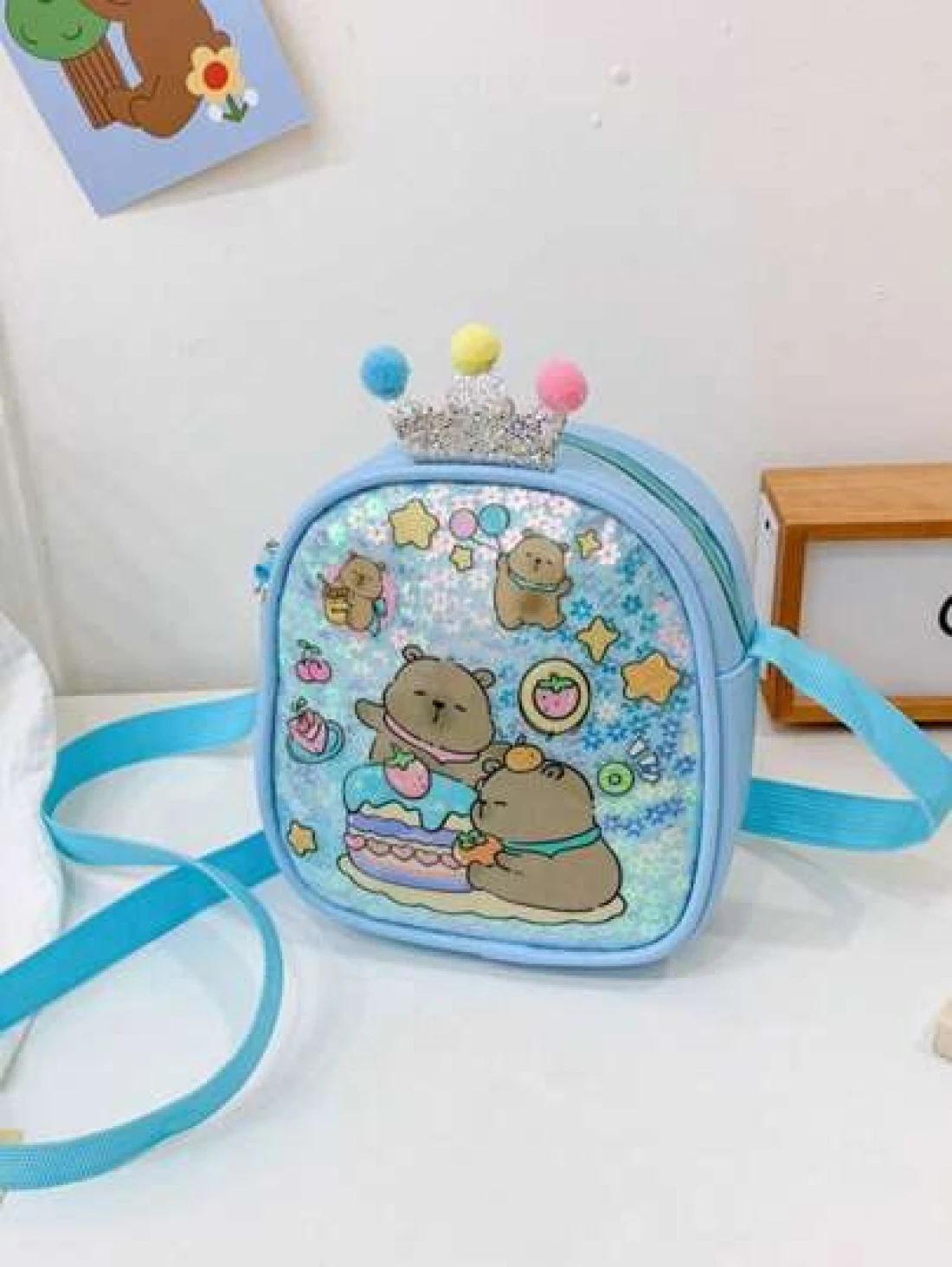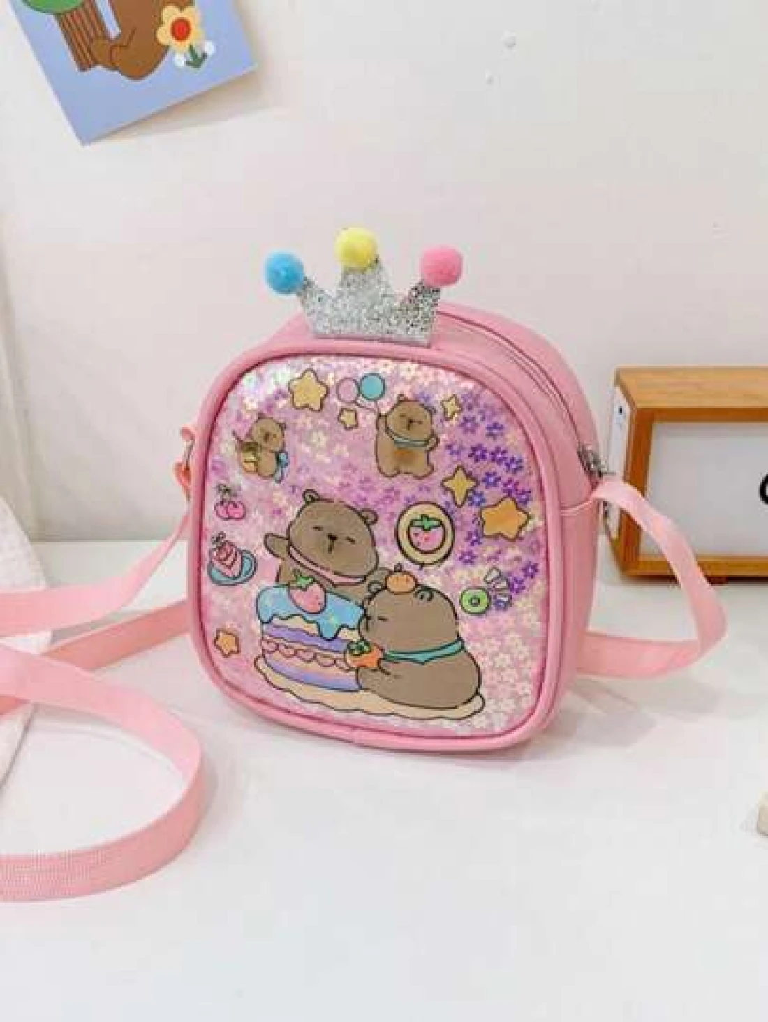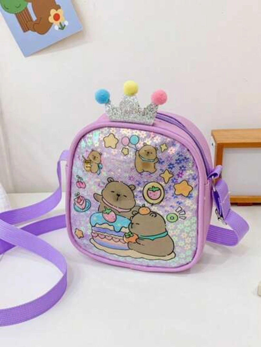 1pc Pu Zipper Closure Fashion Sweet Cute Princess Style Cartoon Capybara Shiny Square Bag Versatile Casual Highly Attractive Bag Multiple Colors To Choose From Suitable For Going Out Outdoor Daily Use Is A Perfect Gift For Friends
