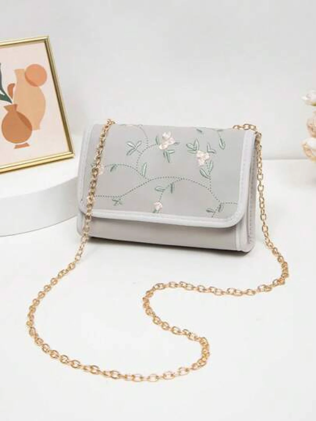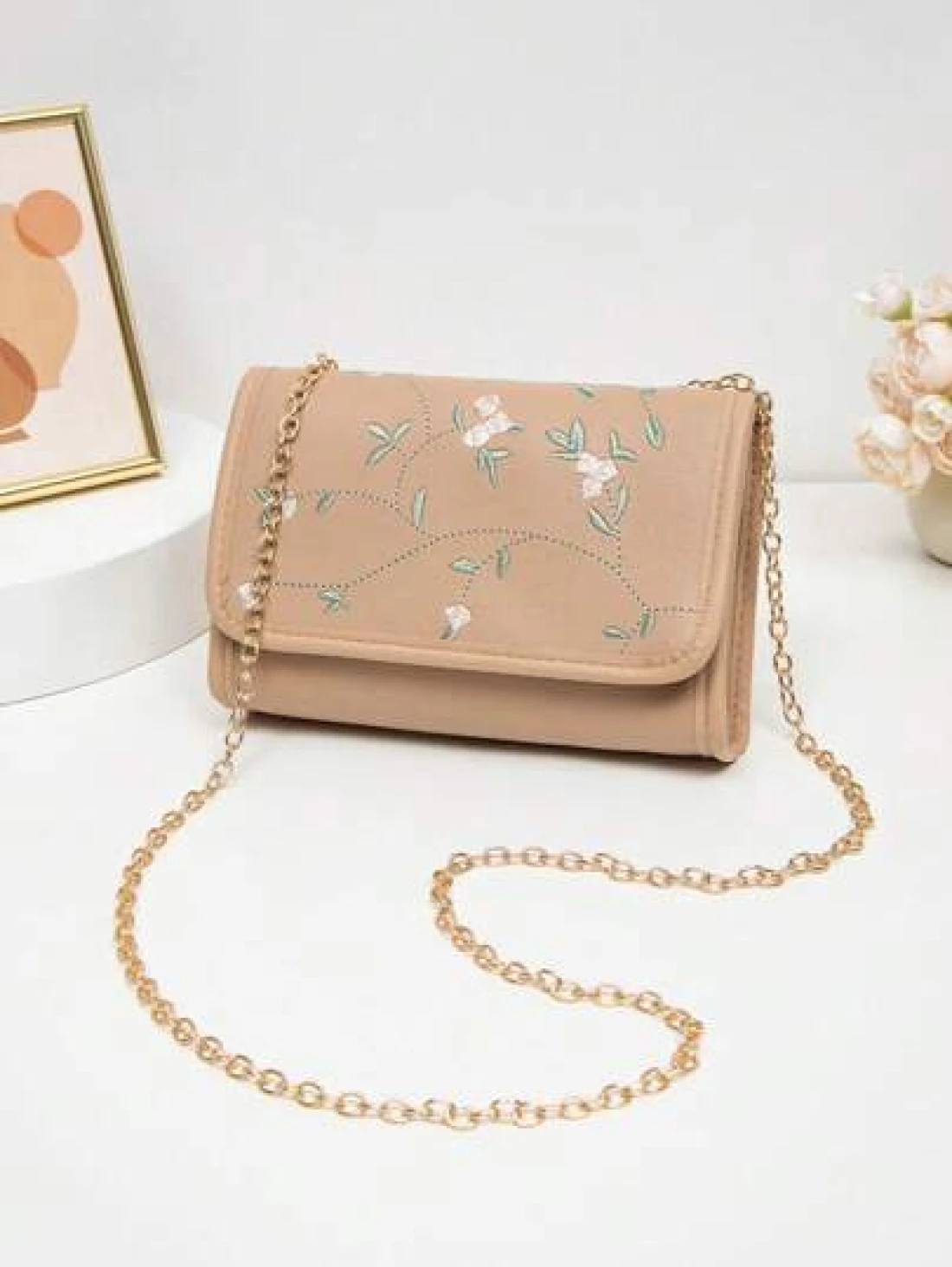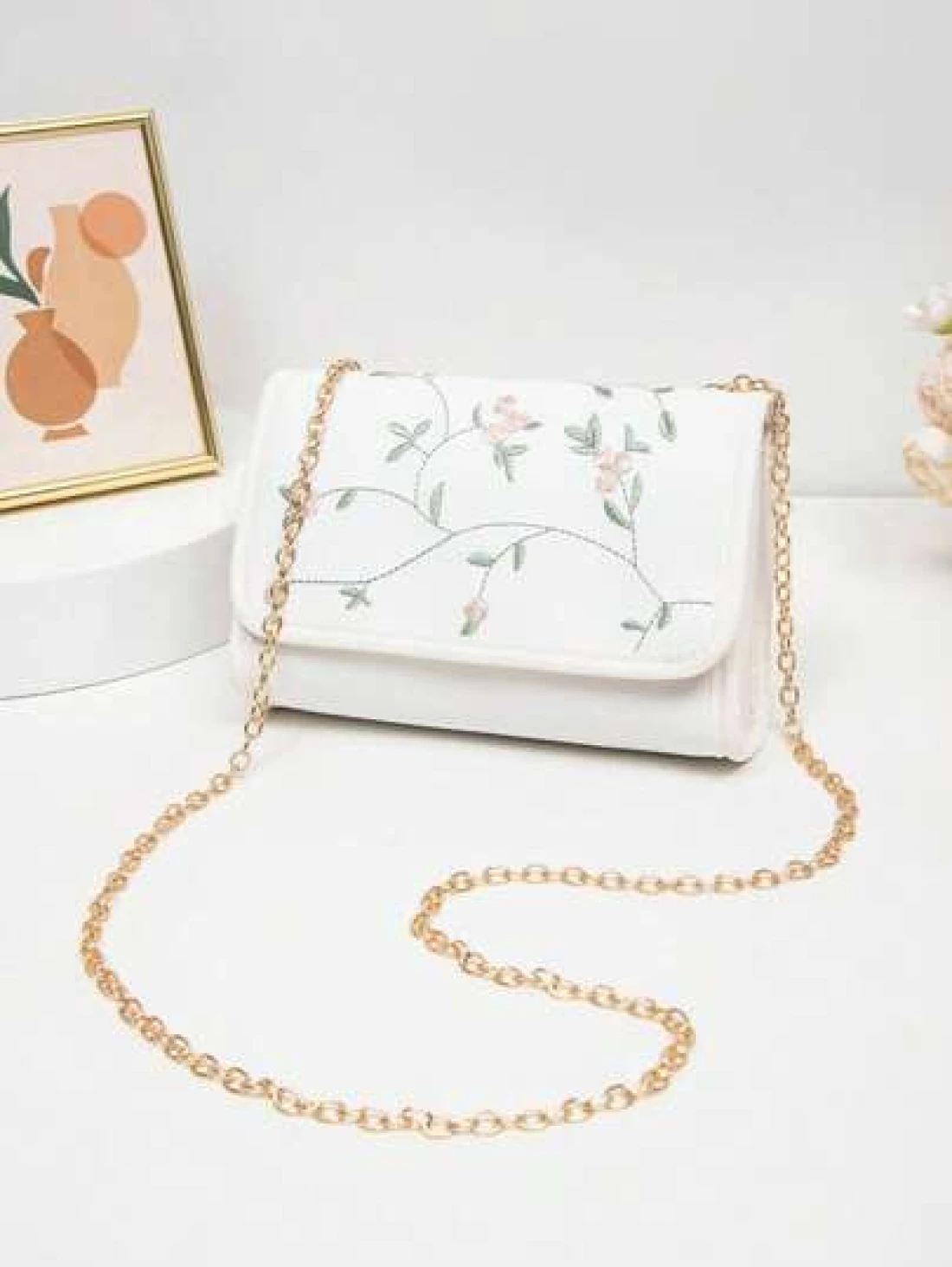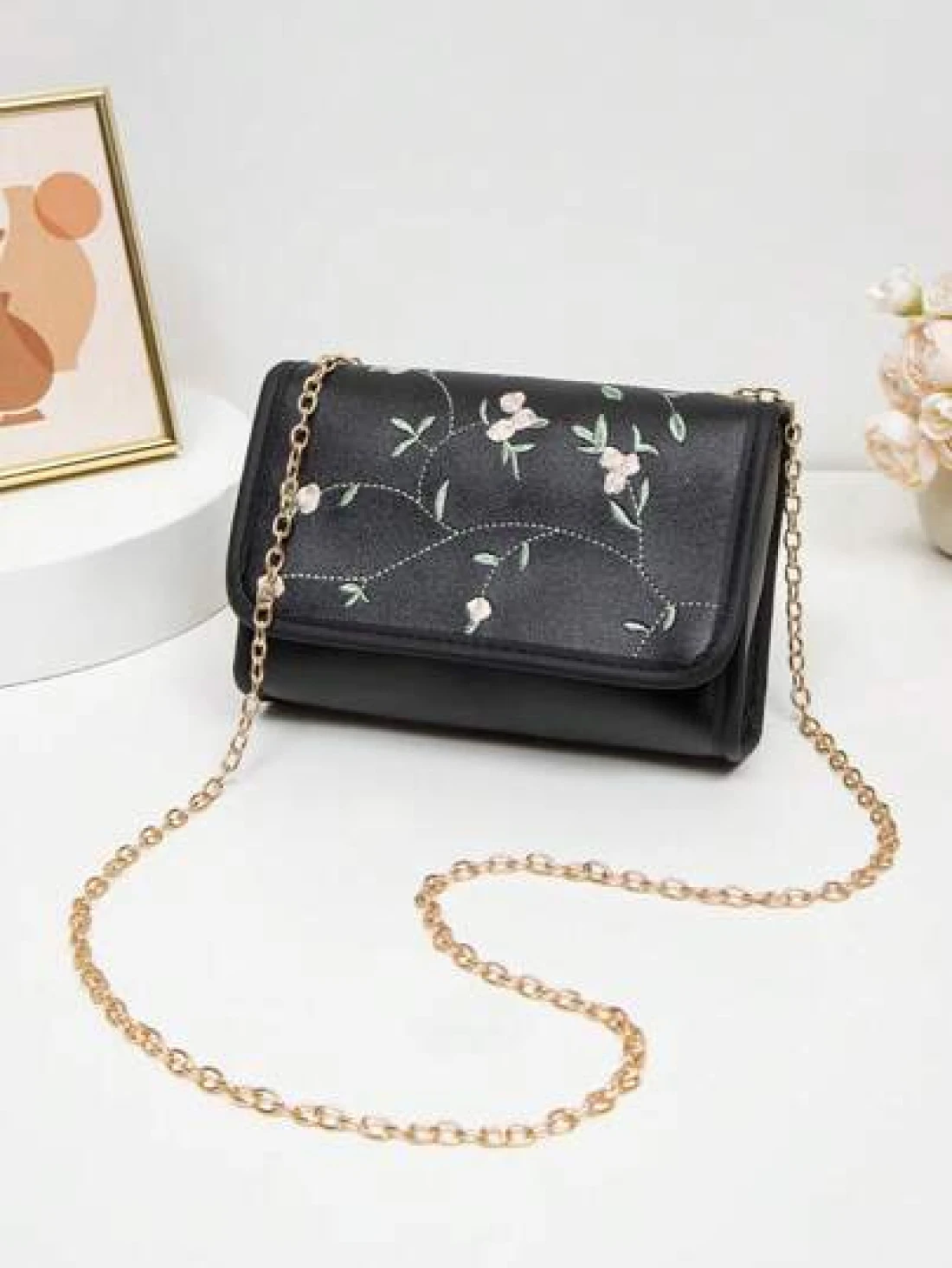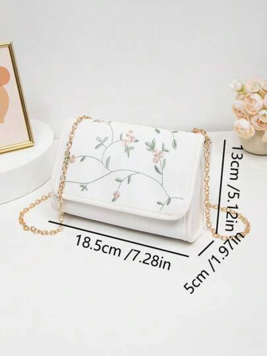 1pc Embroidered Crossbody Bag For Girls Floral Embroidery Shoulder Bag Coin Purse Chain Minimalist Crossbody Bag Suitable For Daily Use Gatherings Gift Giving An Ideal Gift Choice