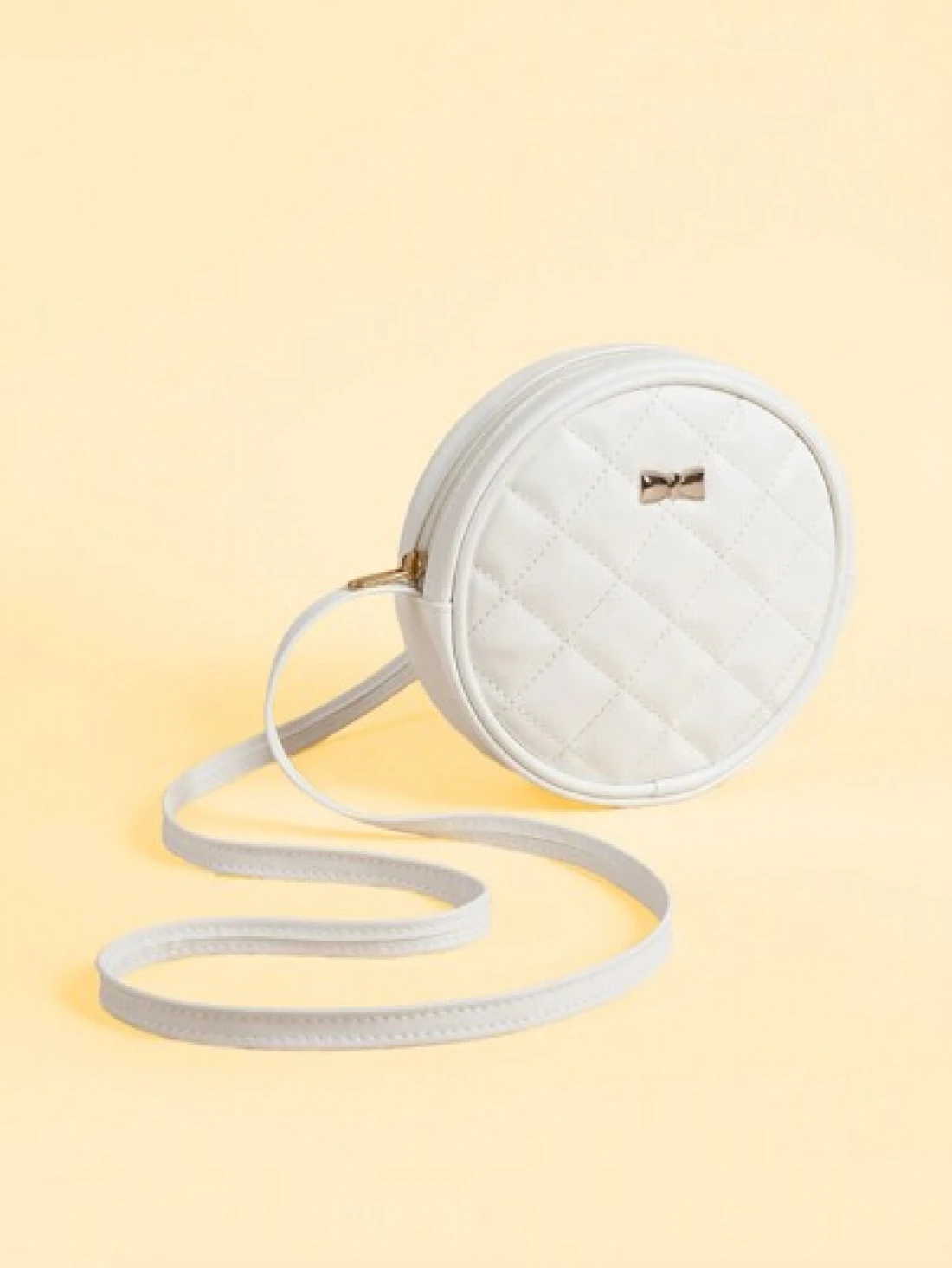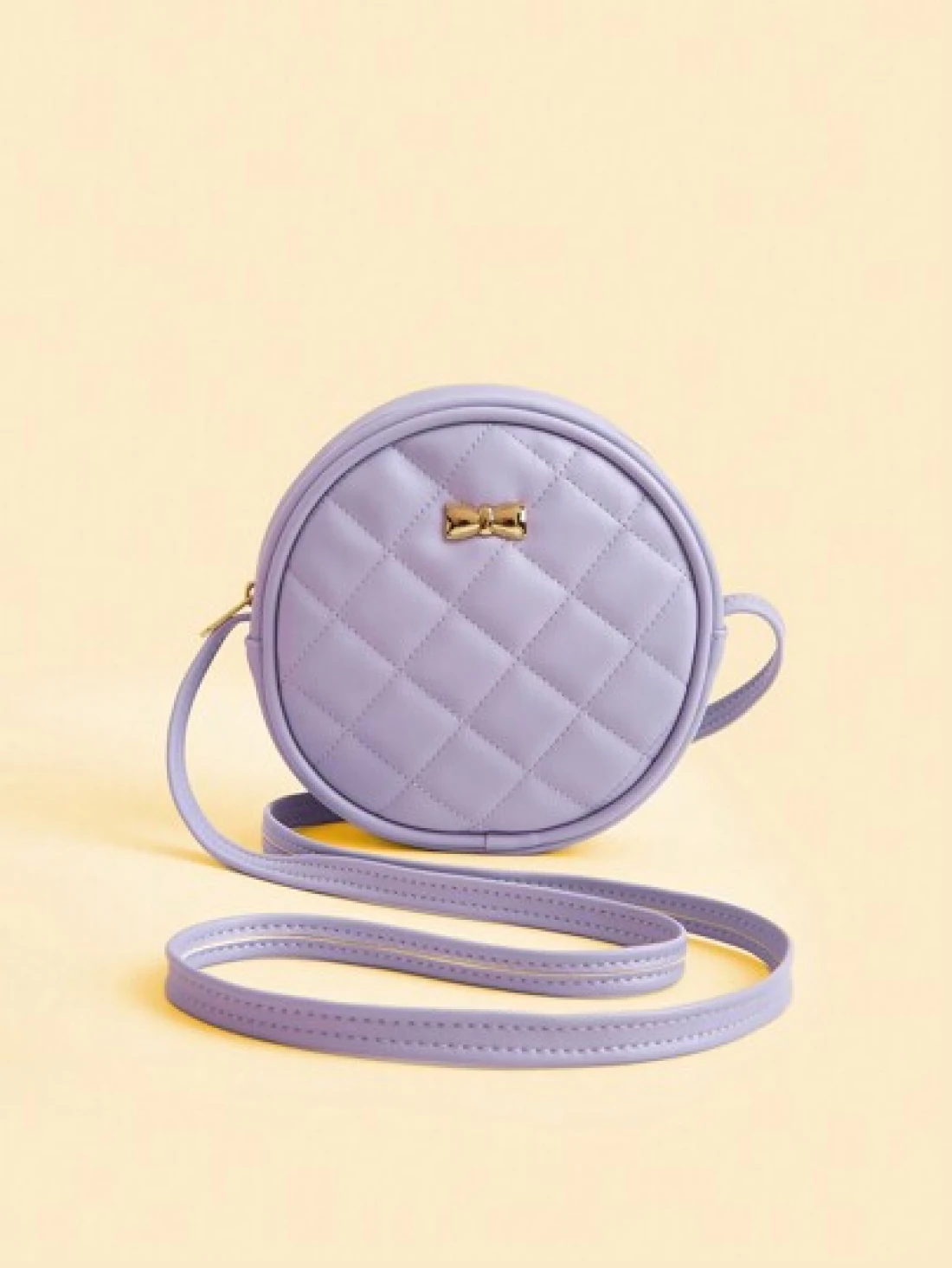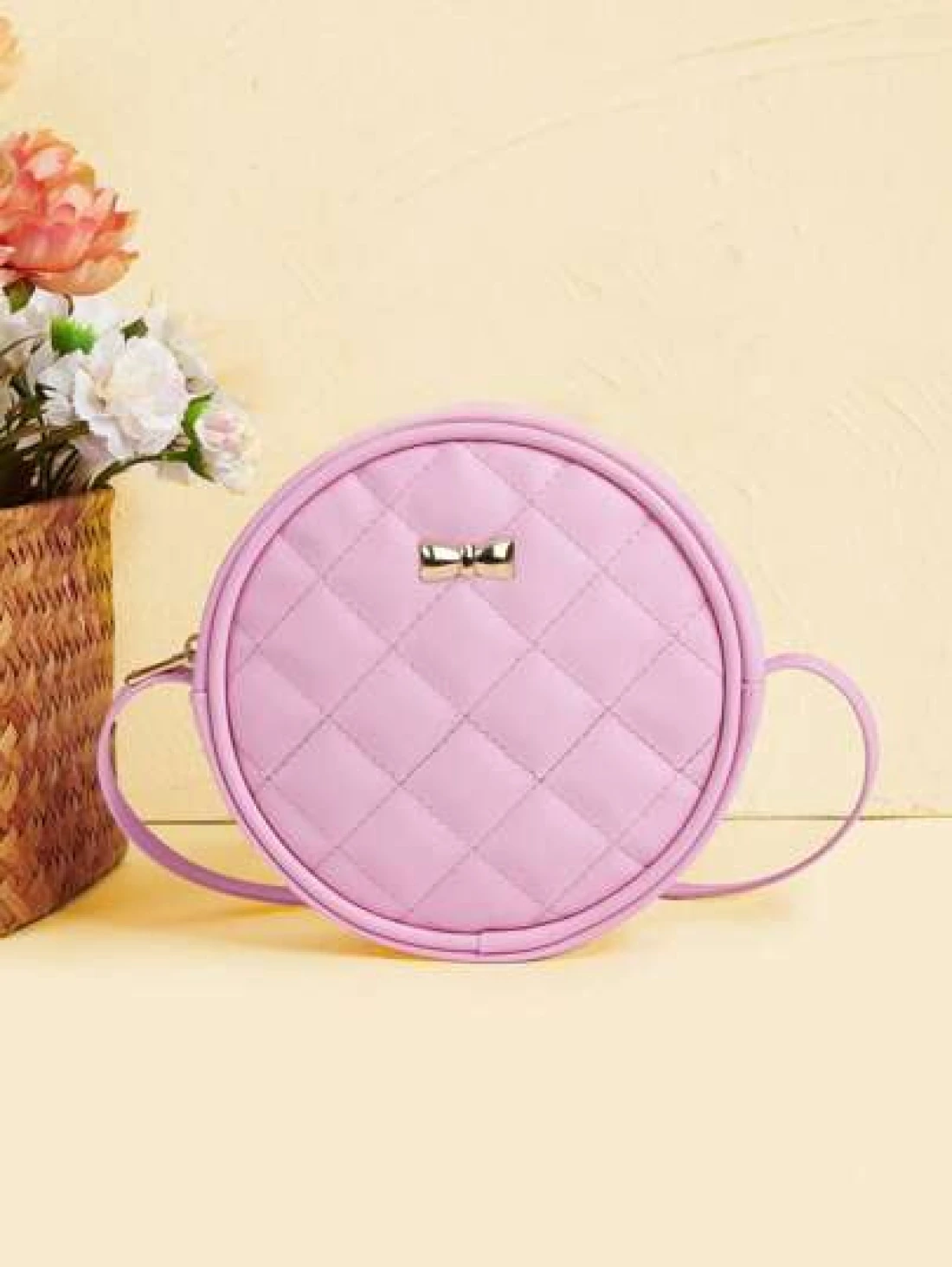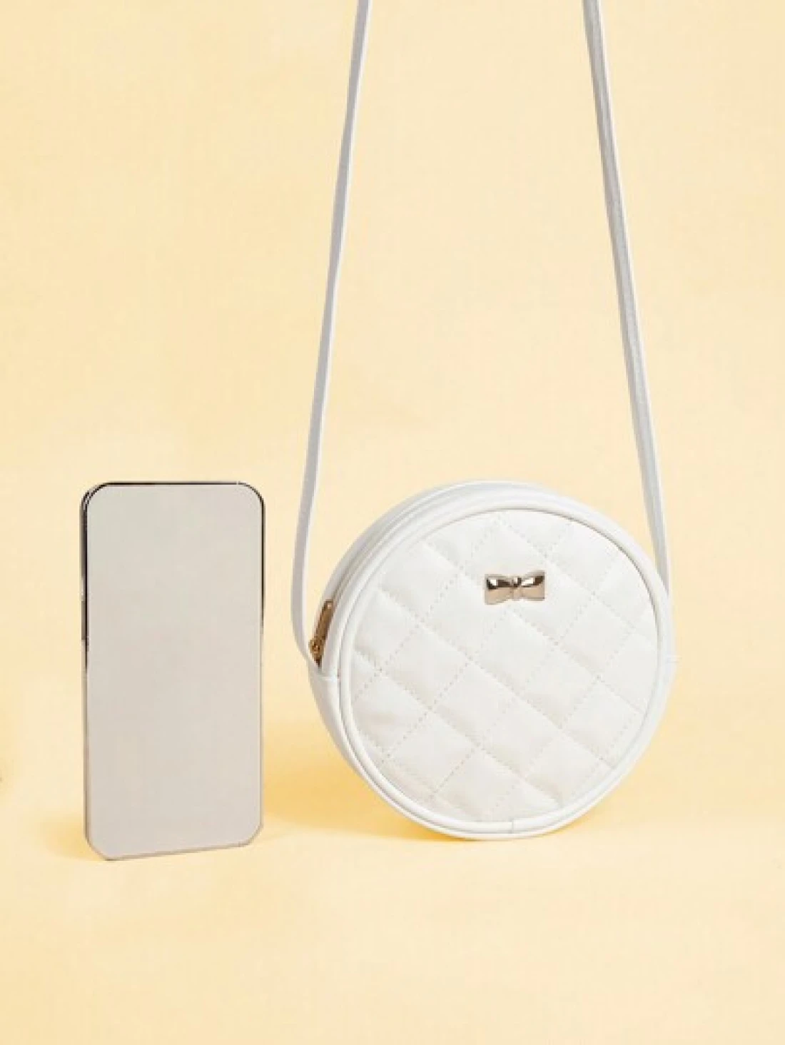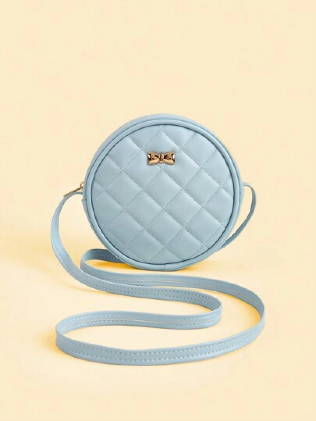 1pc Metal Bow Quilted Minimalist Versatile Lightweight Round Shoulder Crossbody Bag Mini Small Casual Pouch For Outing Coin Purse