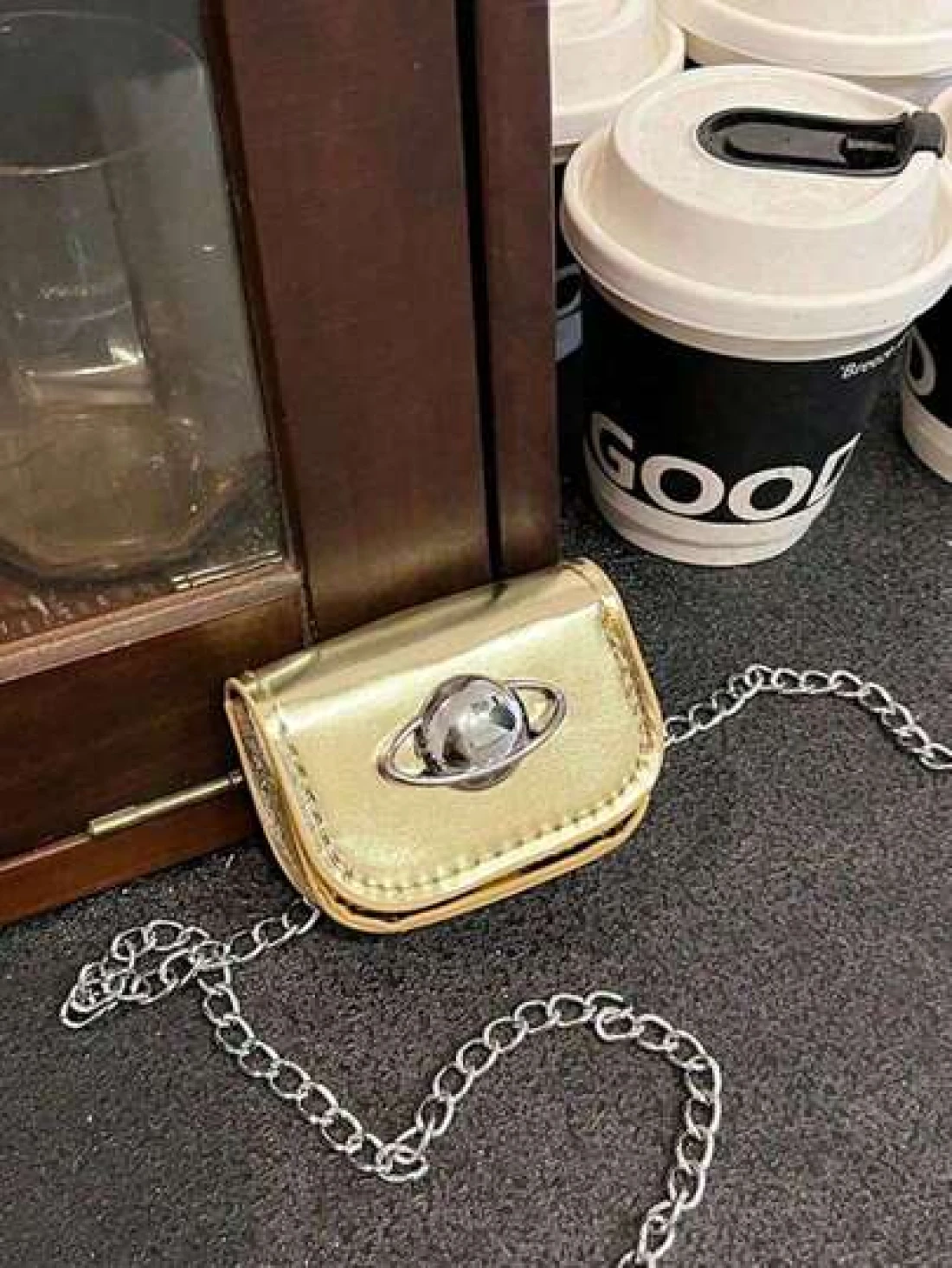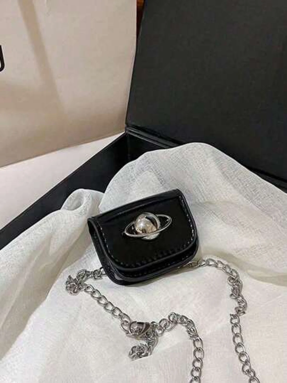 One Piece Mini Pu Flip Crossbody Bag Stylish And Simple Design Fashionable And Personalized Celebrity Decoration Planet Printed Mini Lipstick With Chain Bag Mini Wallet Crossbody Waist Bag Chain Decoration Pu Leather Zipper Backpack Fashionable Casual Backpack Suitable For Daily School Play Travel And Also A Christmas Gift For Friends