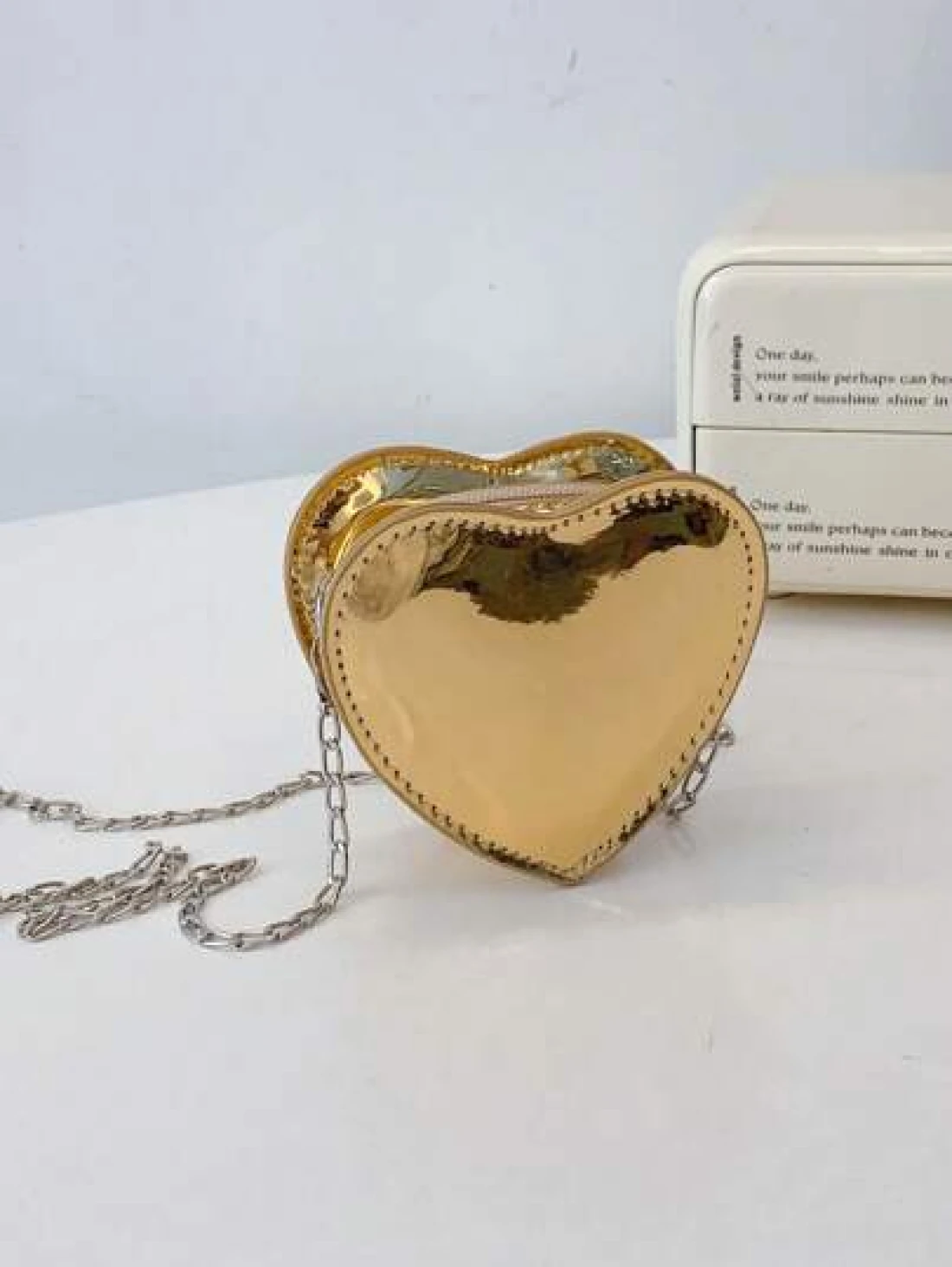 Laser Heart Girls Fashionable Shoulder Bag Chain Strap Crossbody Purse PU Leather Casual Small Bag