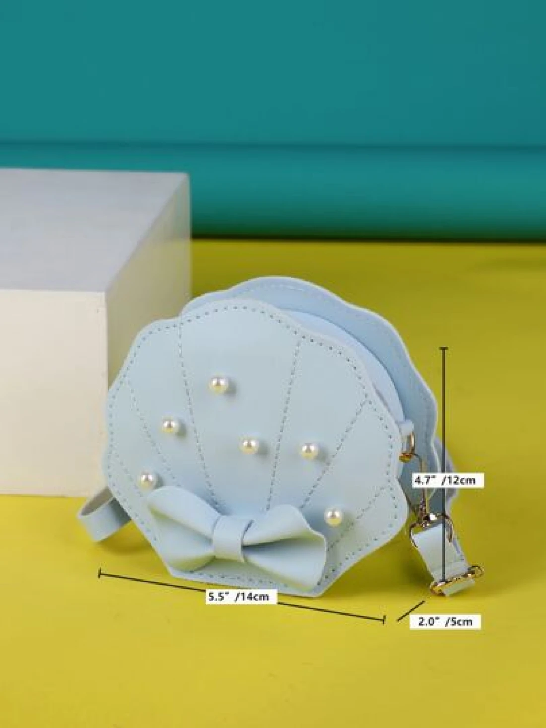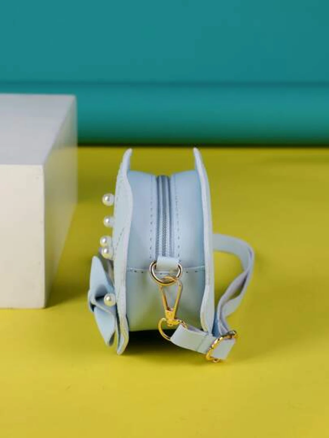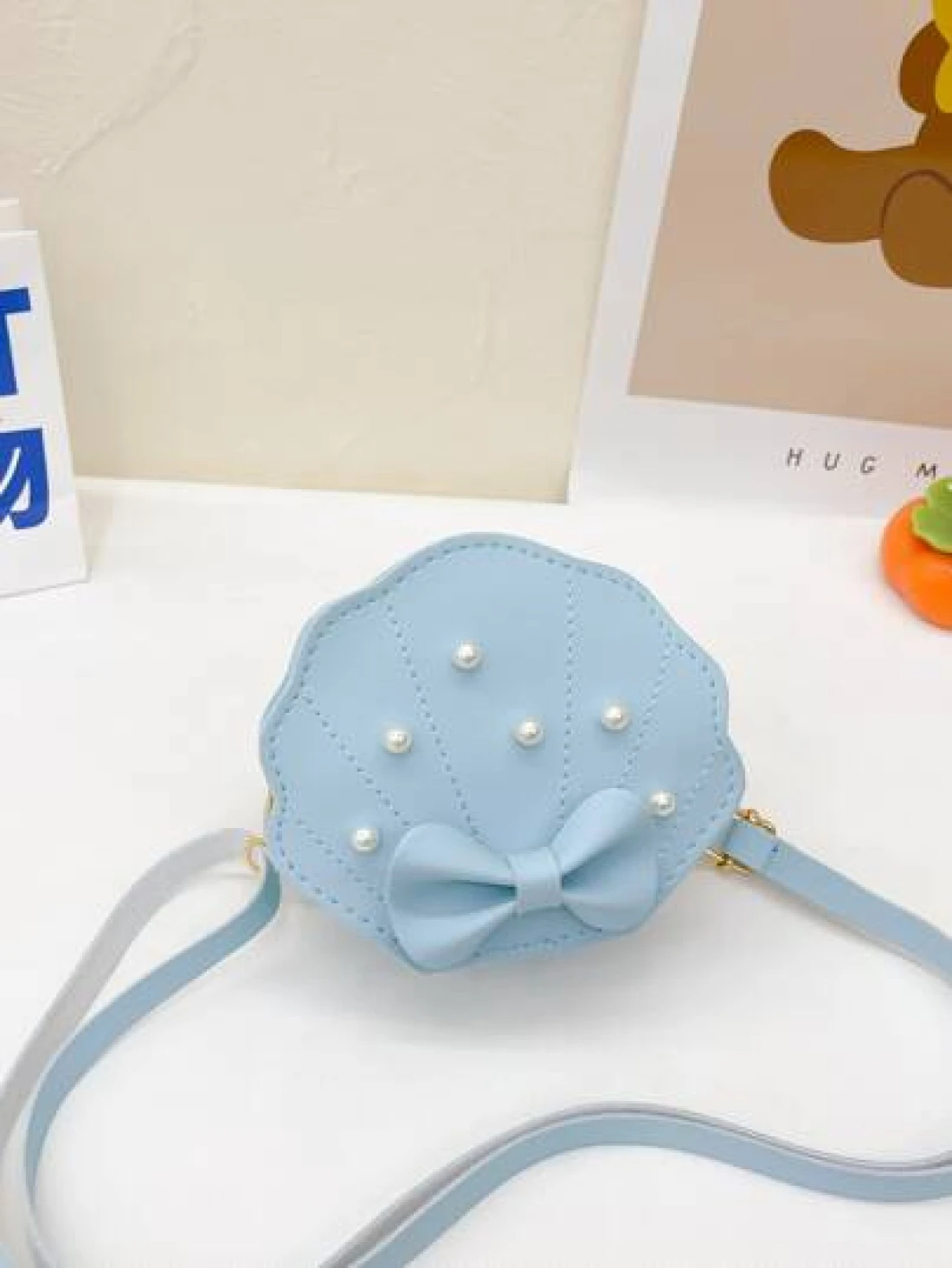 Girls Faux Pearl Bow Decor Dome Bag Mini Blue