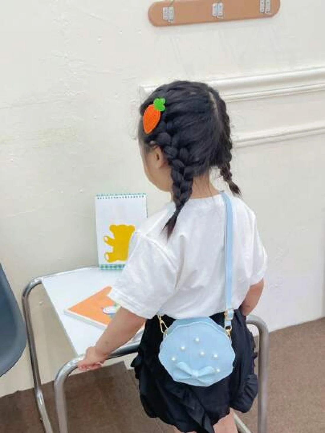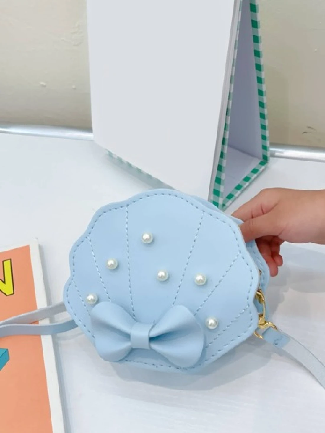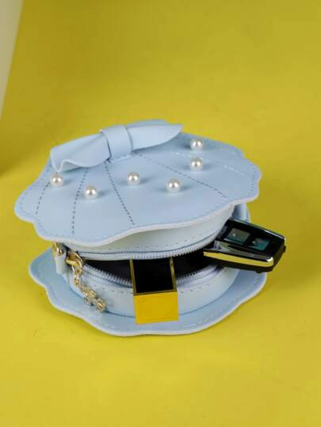 Girls Faux Pearl Bow Decor Dome Bag Mini Blue