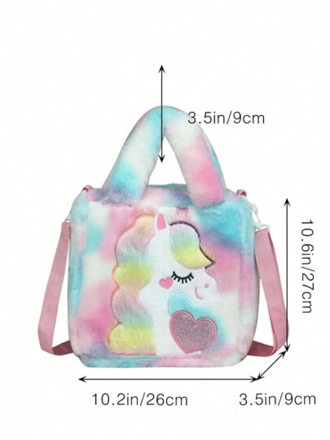1pc Cartoon Plush Shoulder Bag Cute Unicorn Girls Crossbody Bag Tie Dye Gradient Color Plush Unicorn Style Handbag With Zipper Closure For Girls Simple Style Suitable For Trips Study Shopping Comes With Removable Shoulder Strap Random Gradient Color