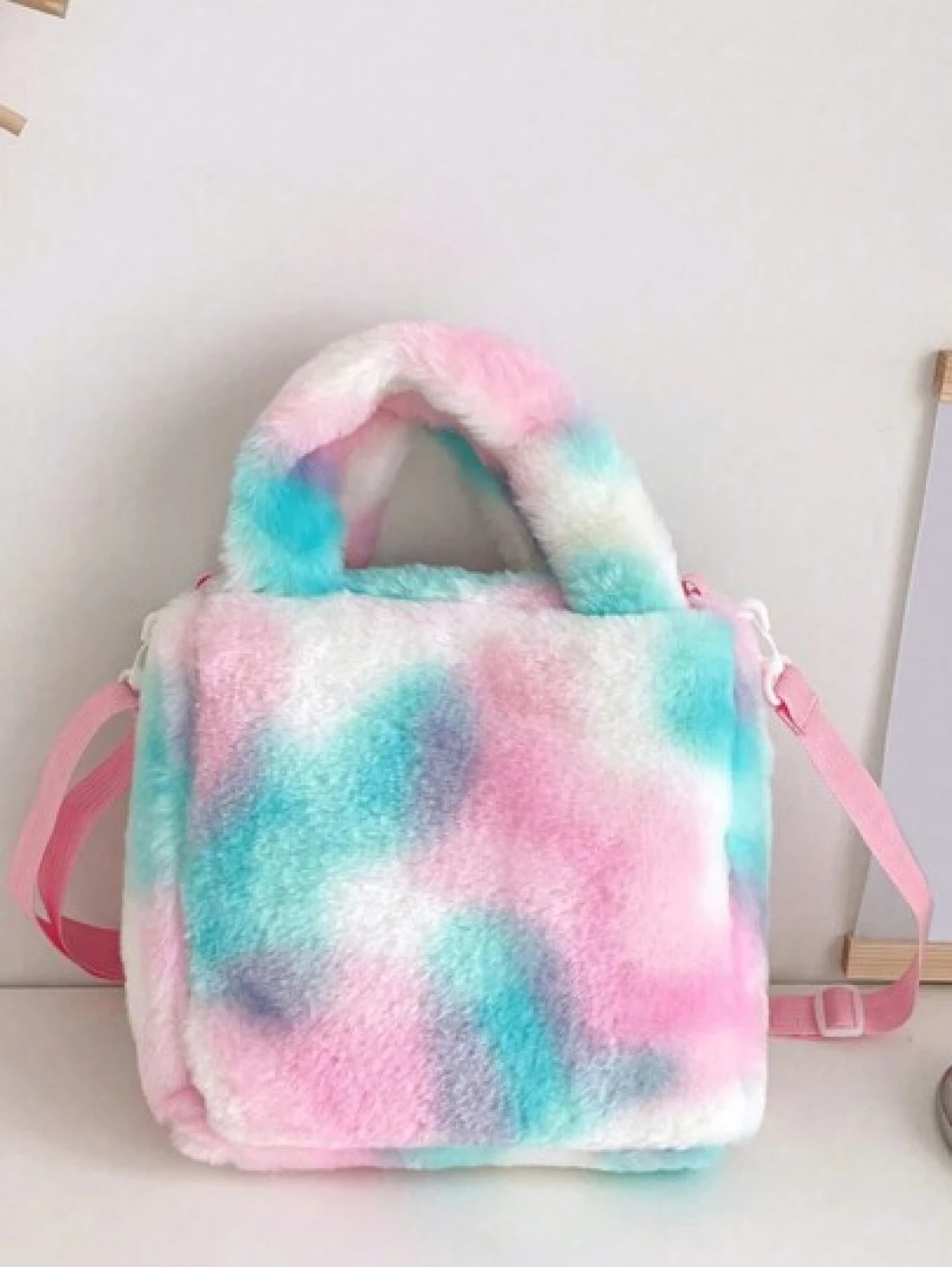 1pc Cartoon Plush Shoulder Bag Cute Unicorn Girls Crossbody Bag Tie Dye Gradient Color Plush Unicorn Style Handbag With Zipper Closure For Girls Simple Style Suitable For Trips Study Shopping Comes Wi