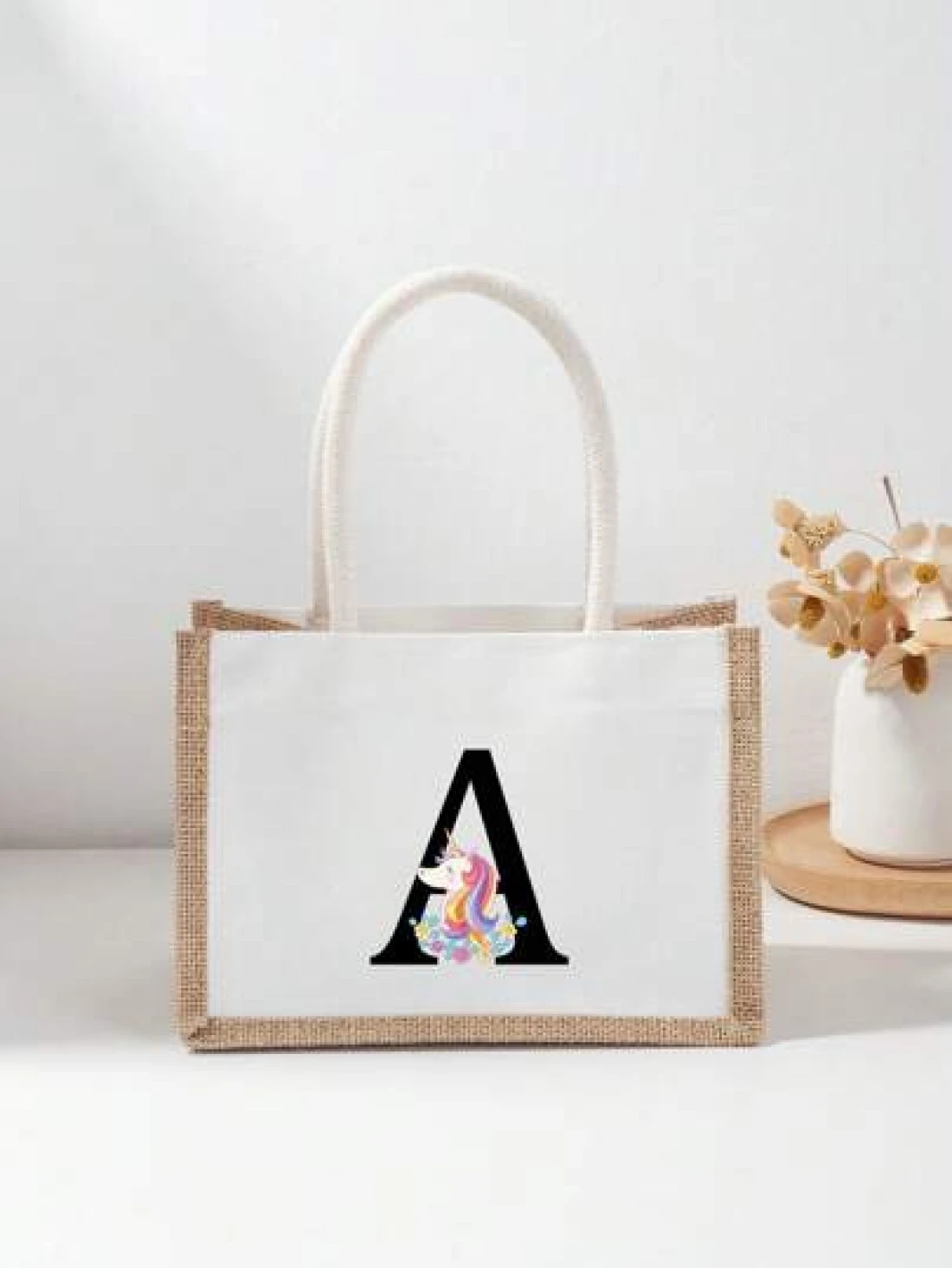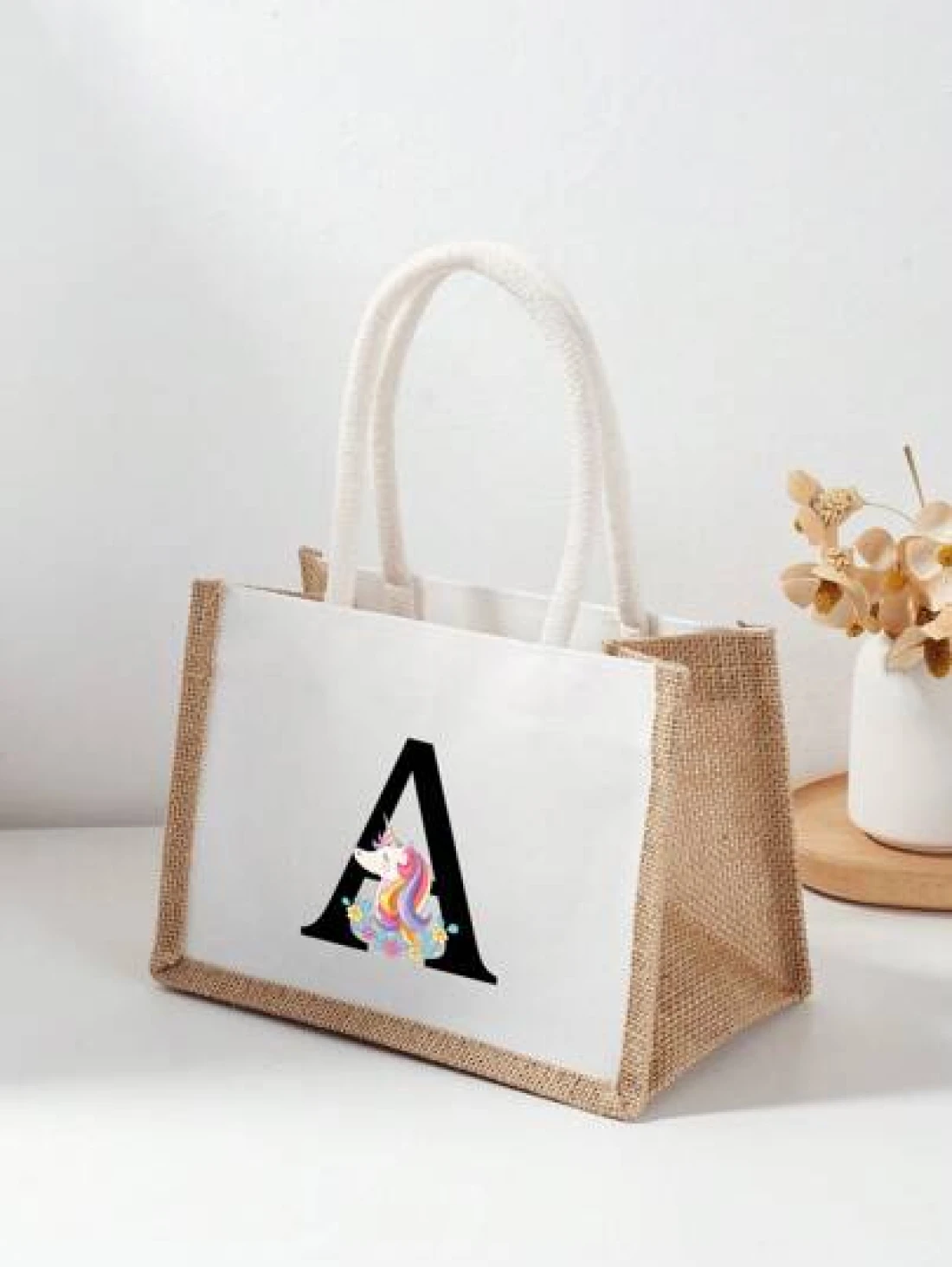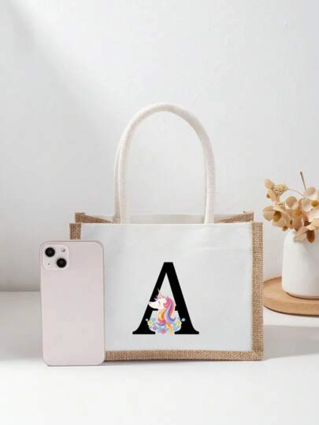 1 Pc Children Cartoon Handbag Shoulder Bag Holiday Gift Bag Square Bag Storage Bag Shopping Bag Versatile Lightweight For Daily For Travel Vacation College Outdoor Shopping Supermarket Festival Classics Simple Solid Color Linen Cute Cartoon Unicorn Letter Pattern Fashion Casual Bag For Bestfriend Student Boy Girls Travel Accessories