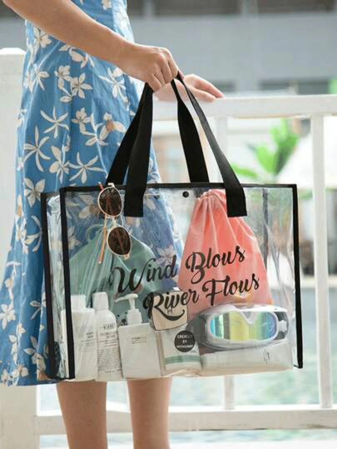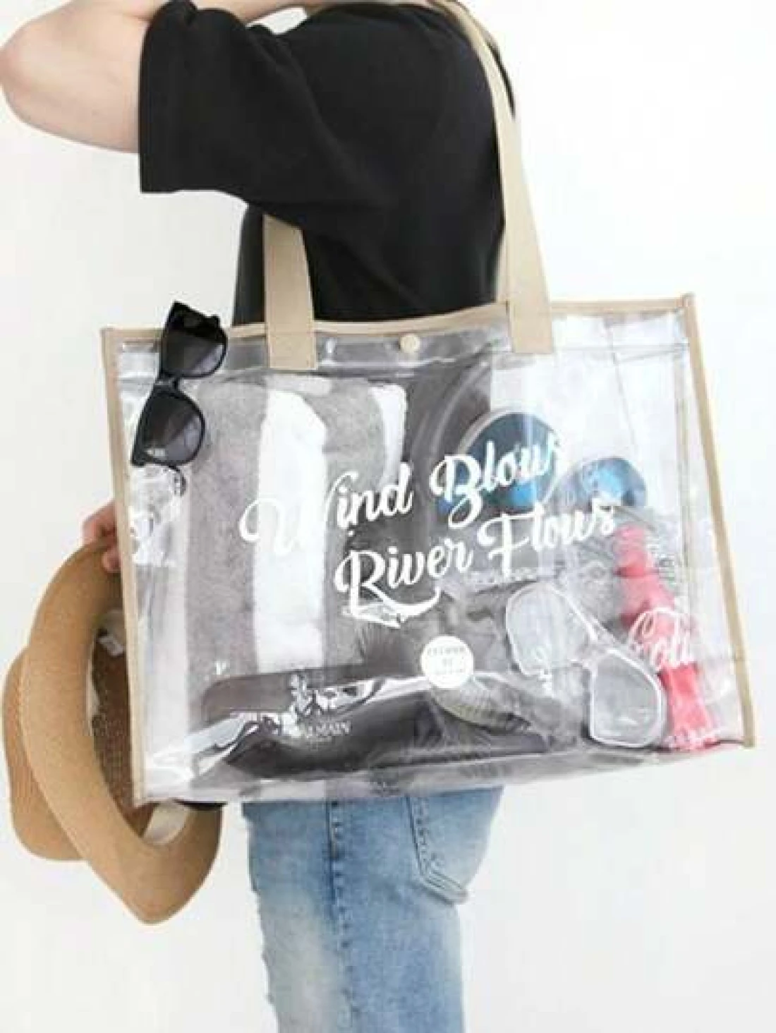 Transparent PVC Beach Tote Bag Large Capacity Jelly Bag Minimalist Travel Storage Bag Swimsuit Gym Handbag Toiletry Organizer