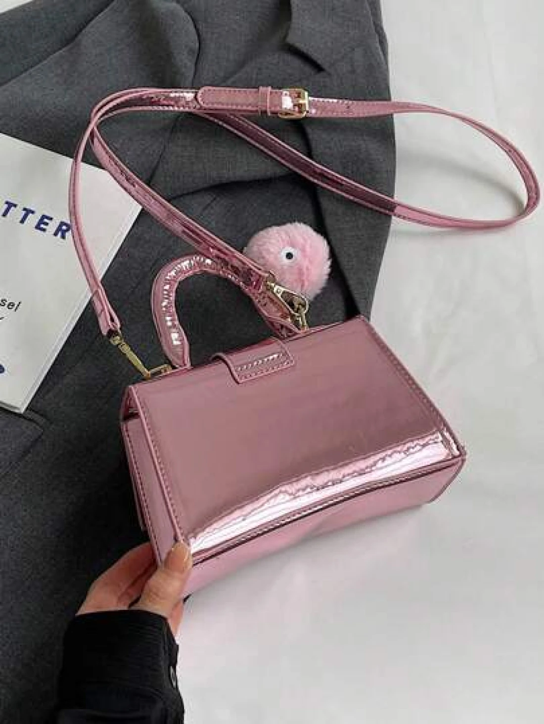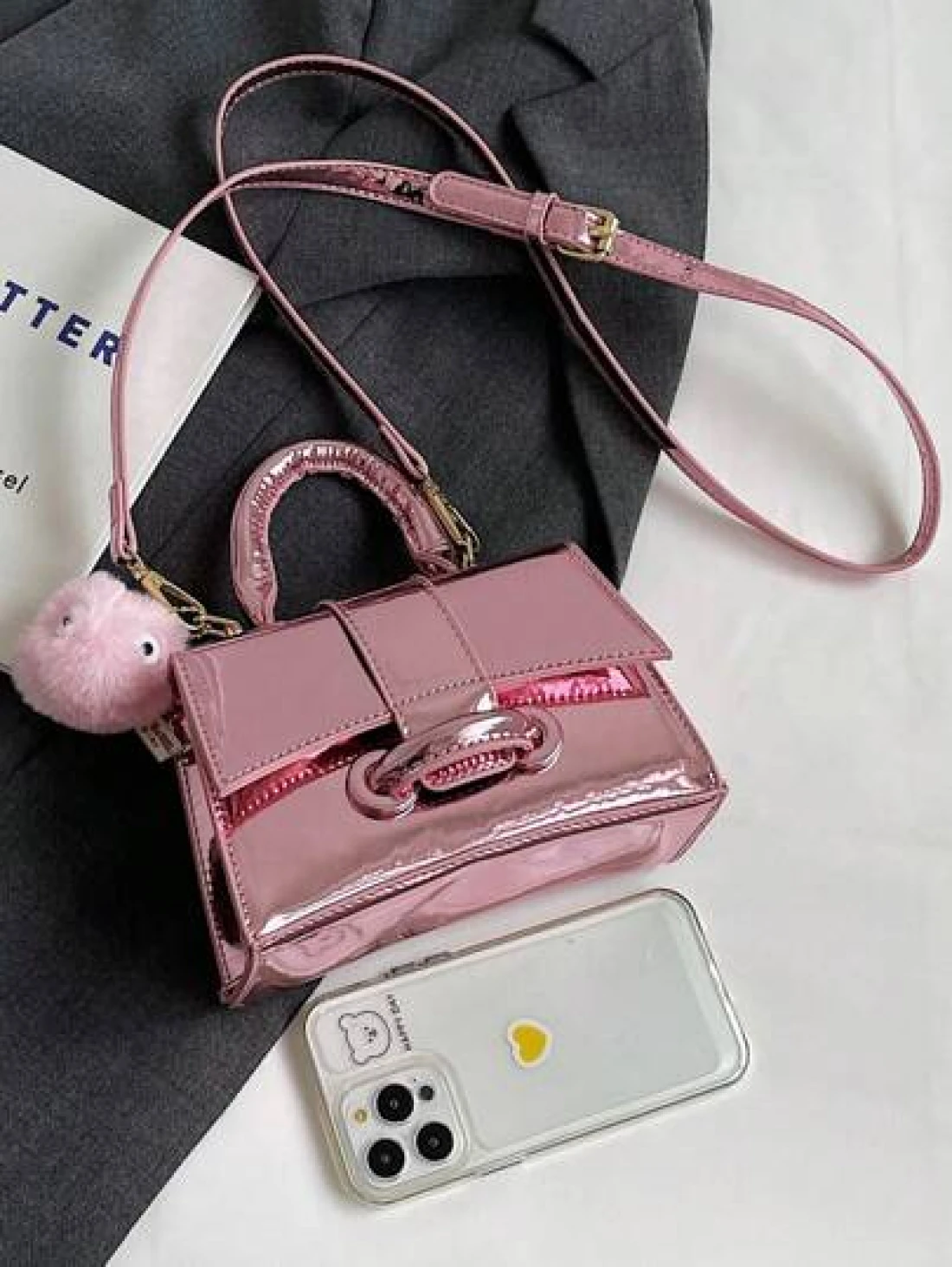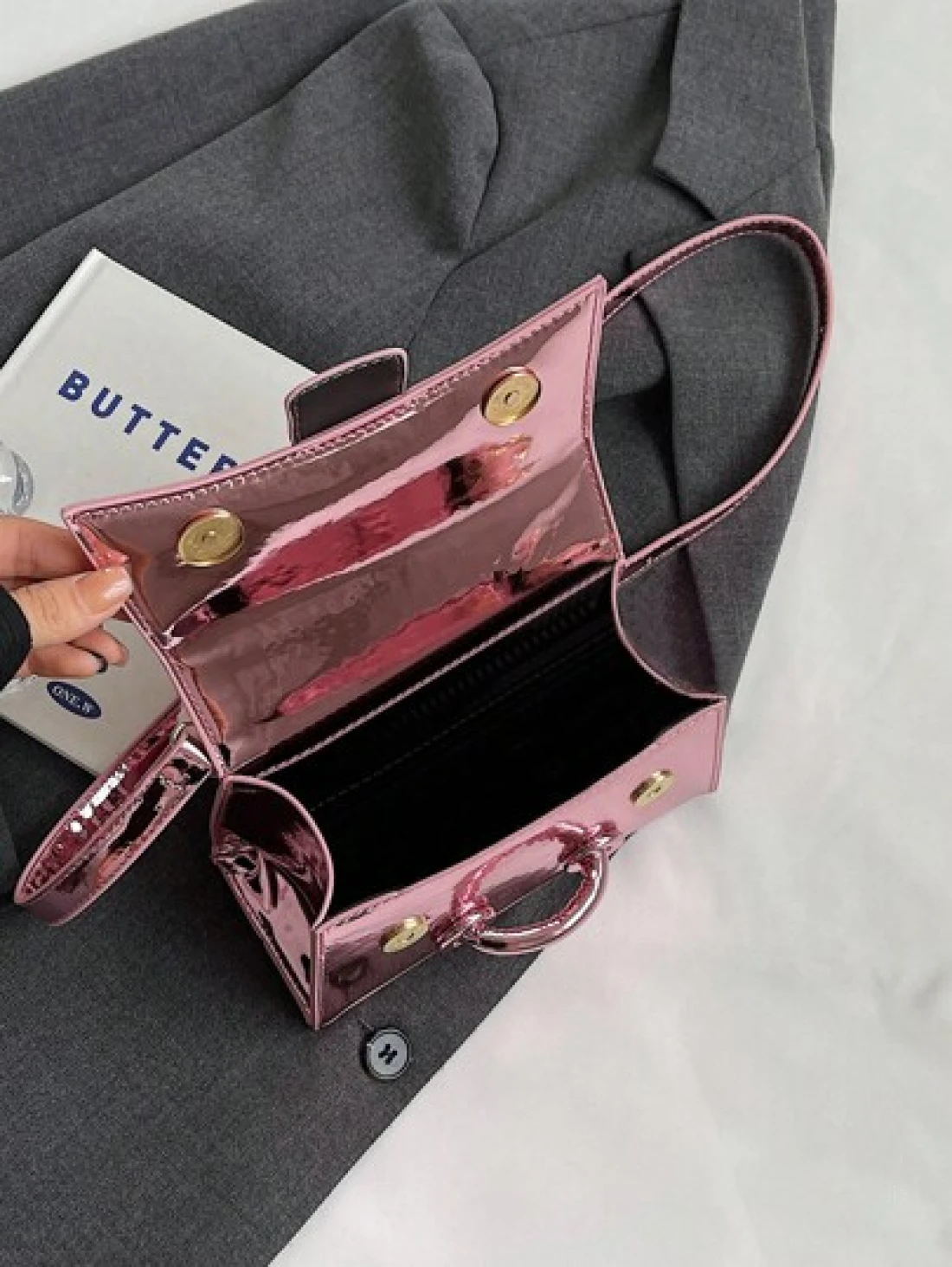 Solid Color Pu Leather Mini Children s Handbag With Metallic Texture
