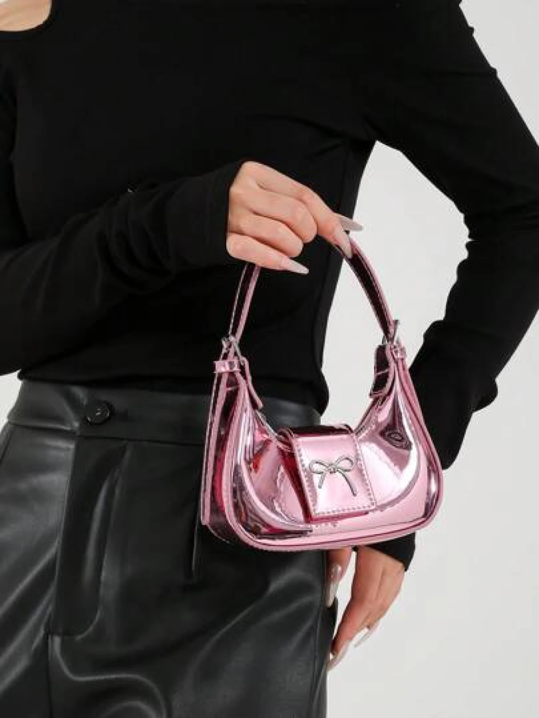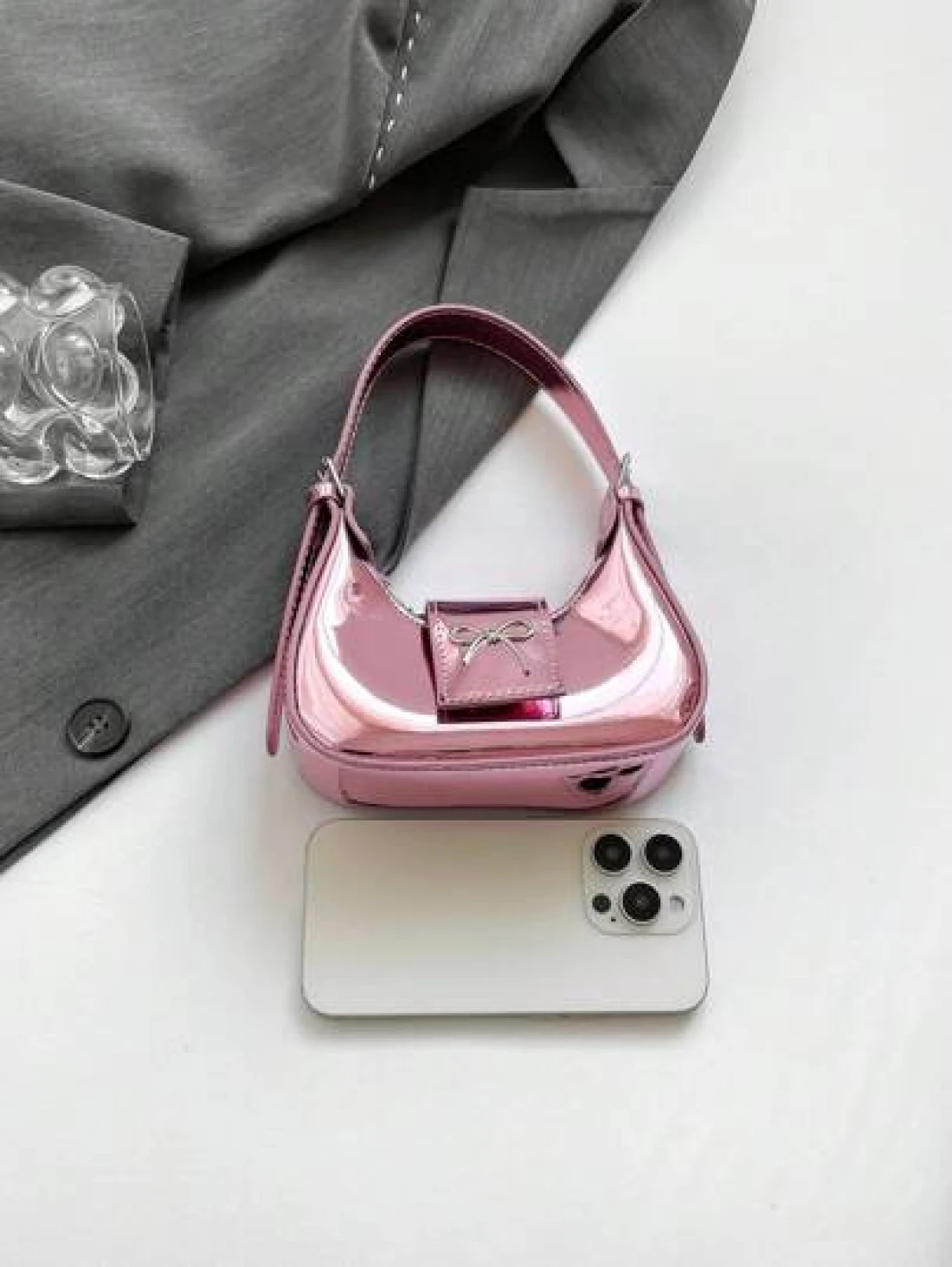 Girls Fashionable Glossy Handbag Coin Purse Butterfly Decor Small Crossbody Bag