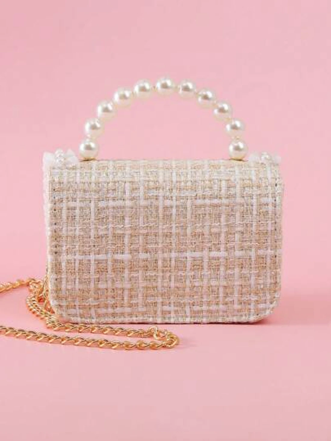1pc Mini Girls Bowknot Pearl Lace PU Metallic Chain Flap Cover Cute Handbag Shoulder Bag Children Snack Bag For Casual Outings And Holidays