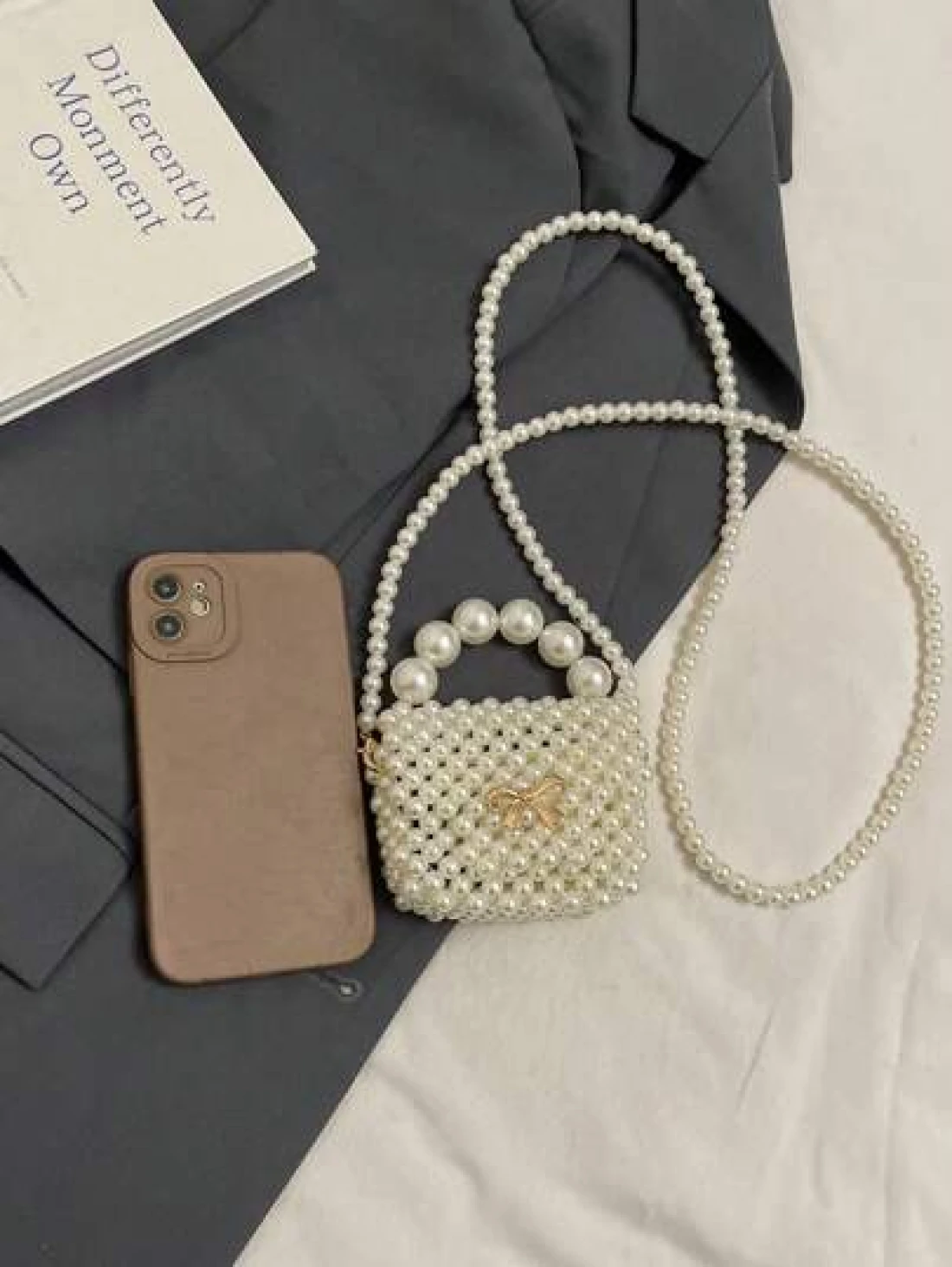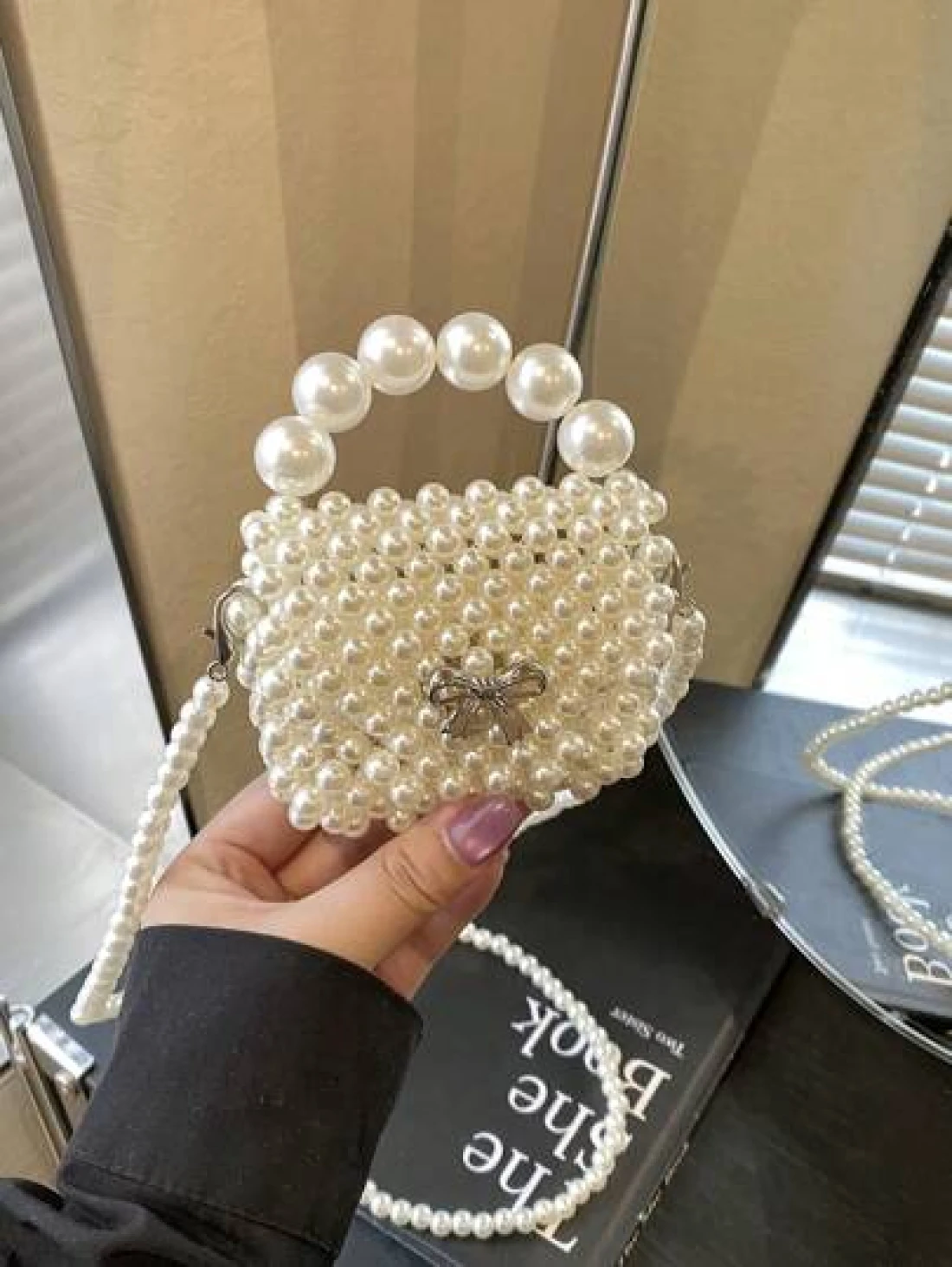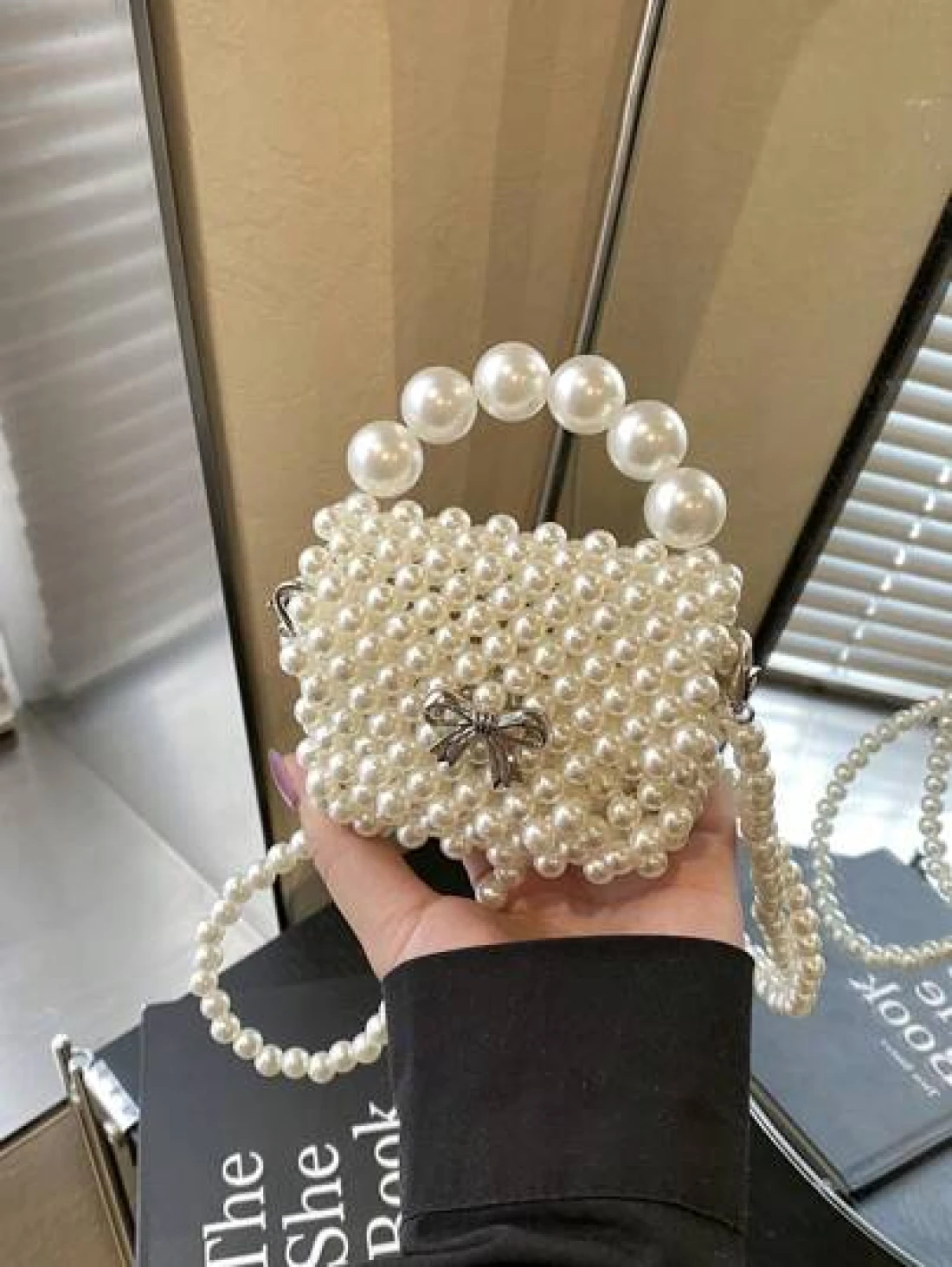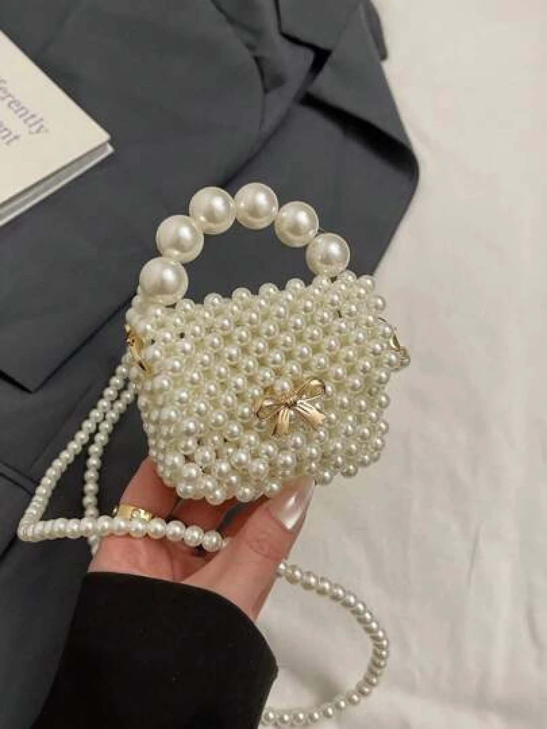 1pc Fashionable Solid Color Bow Pearl Mini Handbag Niche Design Shoulder Messenger Bag Casual Sweet Hollow Mini Change Lipstick Bag Suitable For Teenagers To Travel Shopping Party Date And Daily Use Is A Perfect Gift For Teenagers