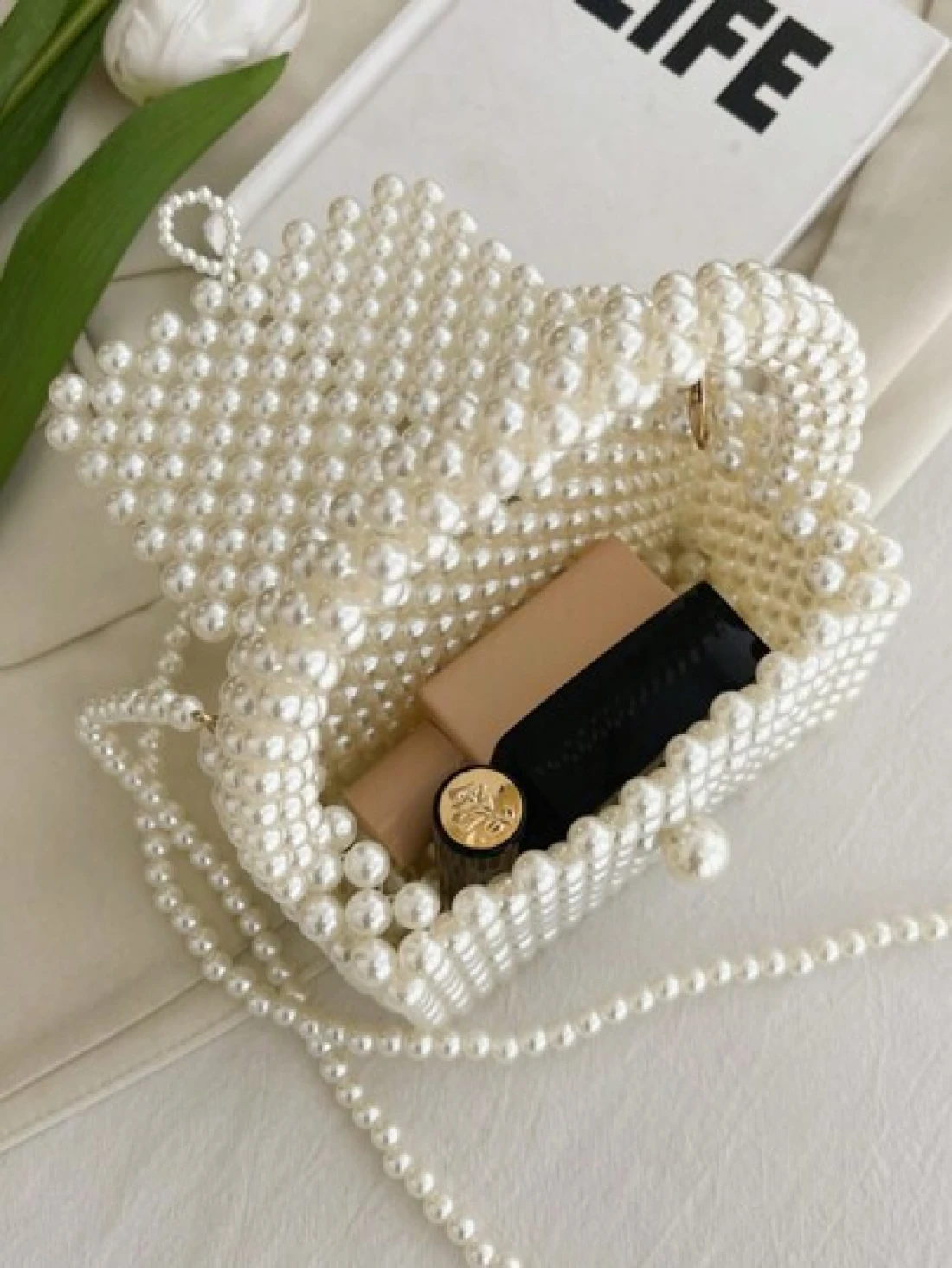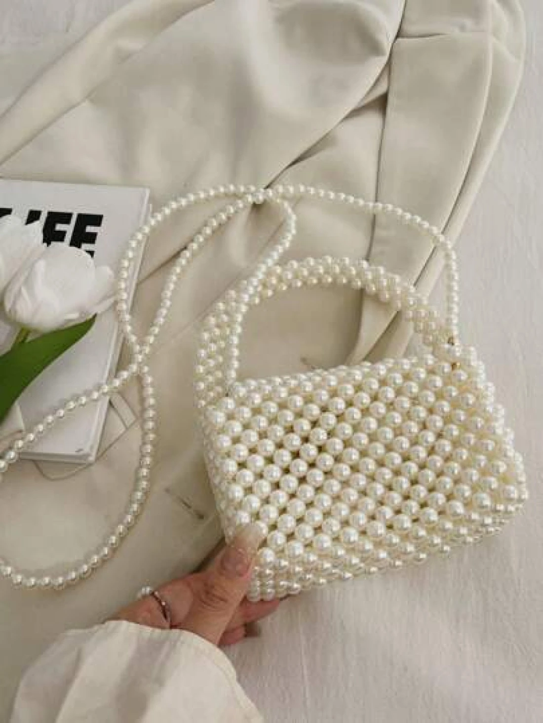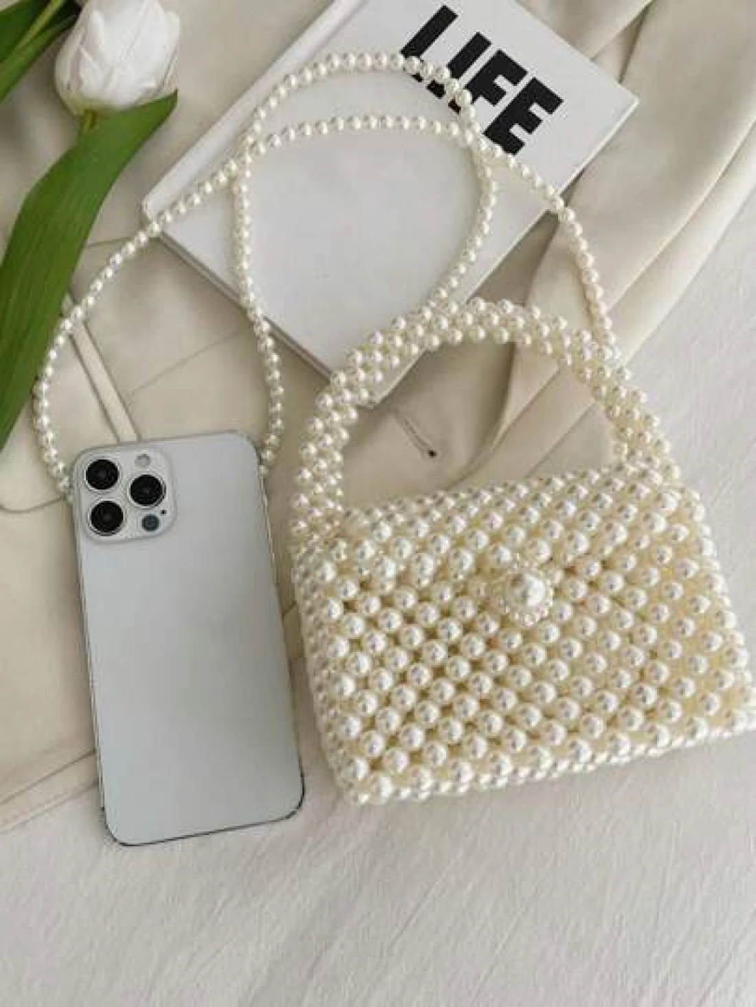 1pc Beaded Handbag Fashion Pearl Small Shoulder Bag Spring Summer
