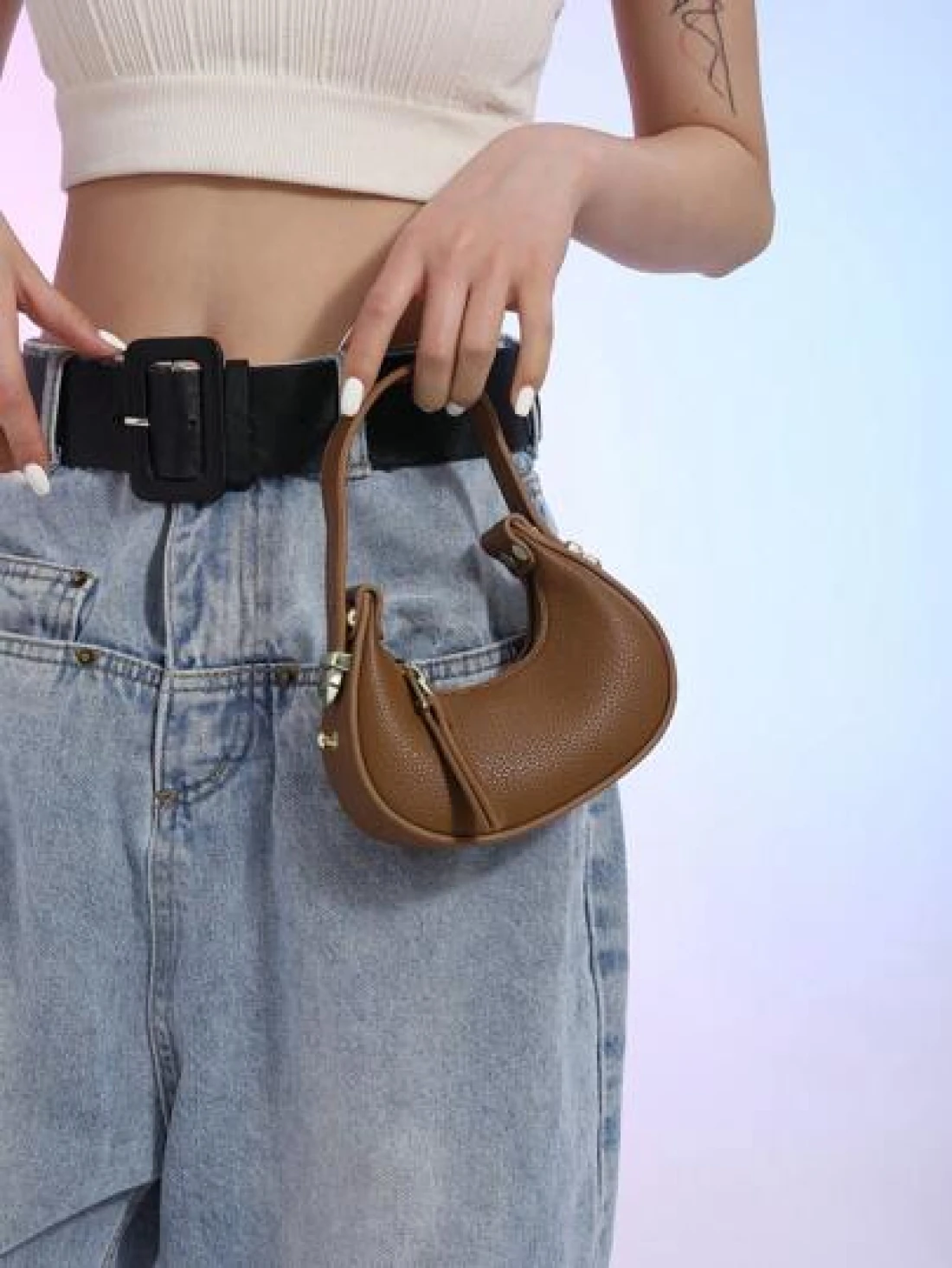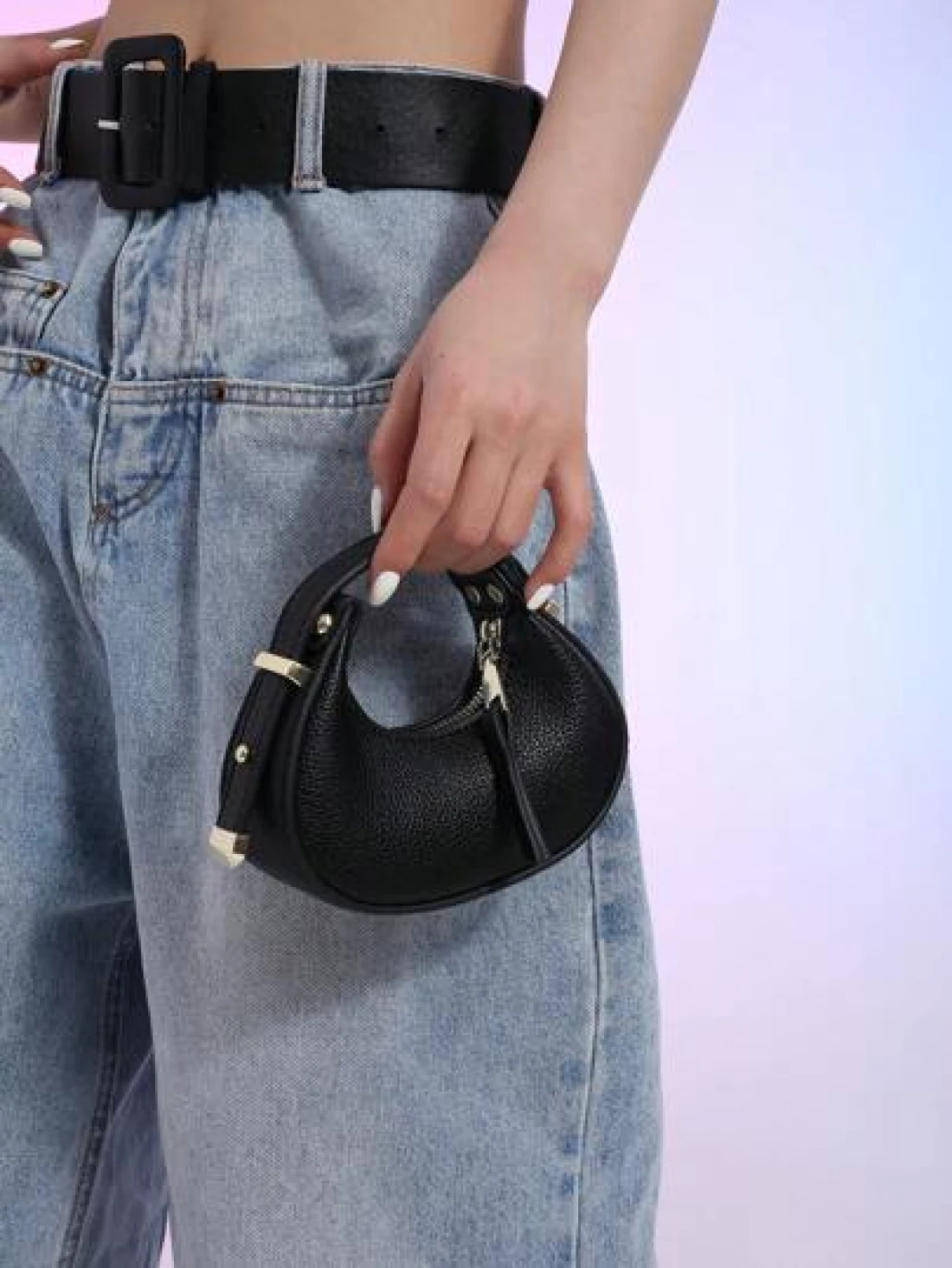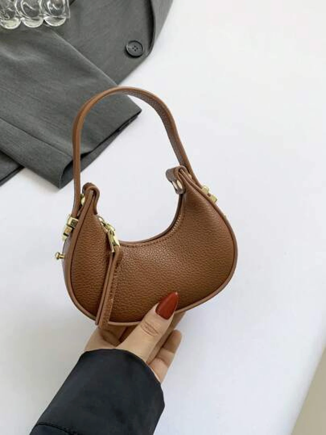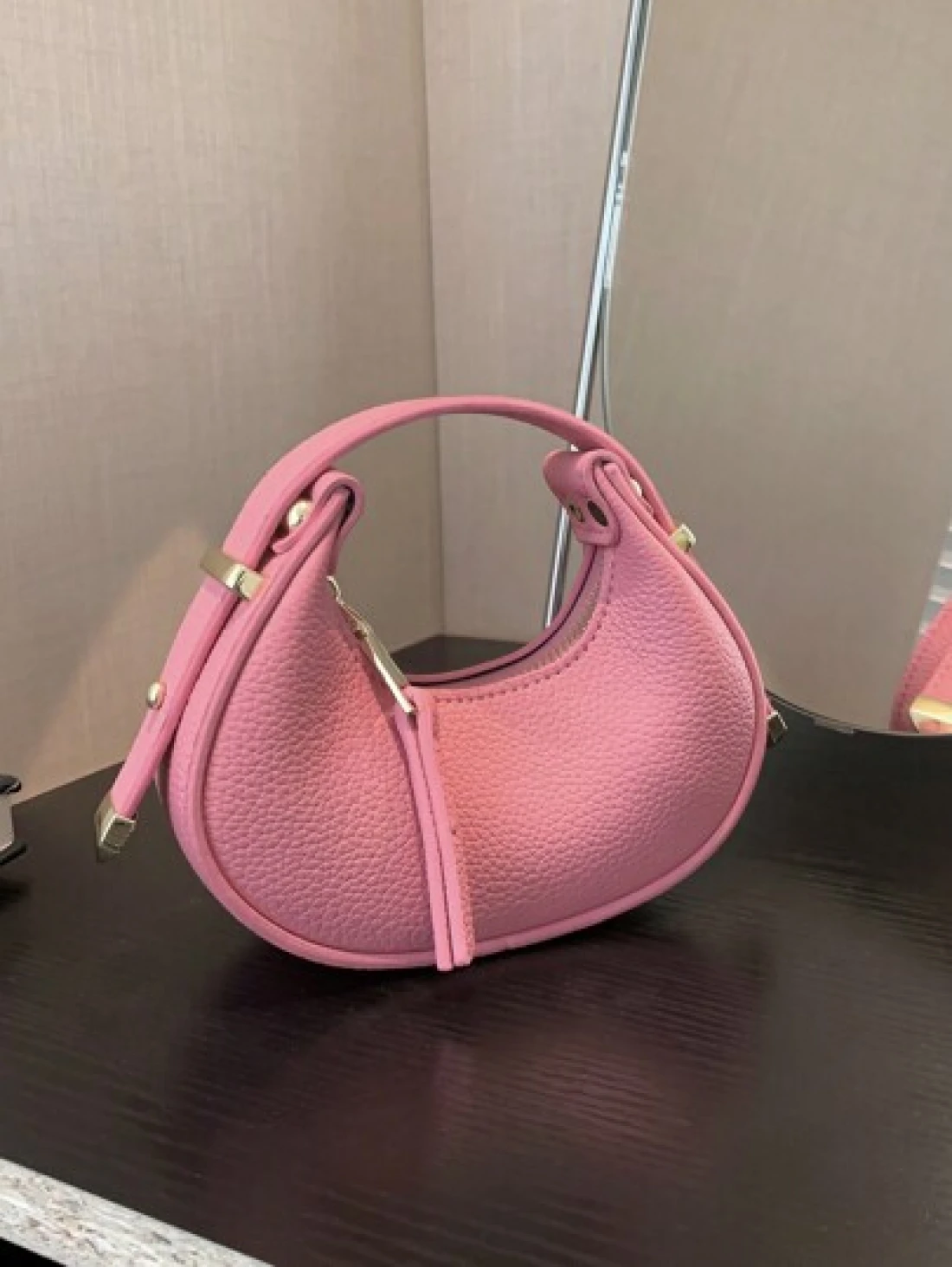 1pc Glossy Patent Leather Solid Color Mini Handbag Adjustable Crescent Shaped Handle For Kids