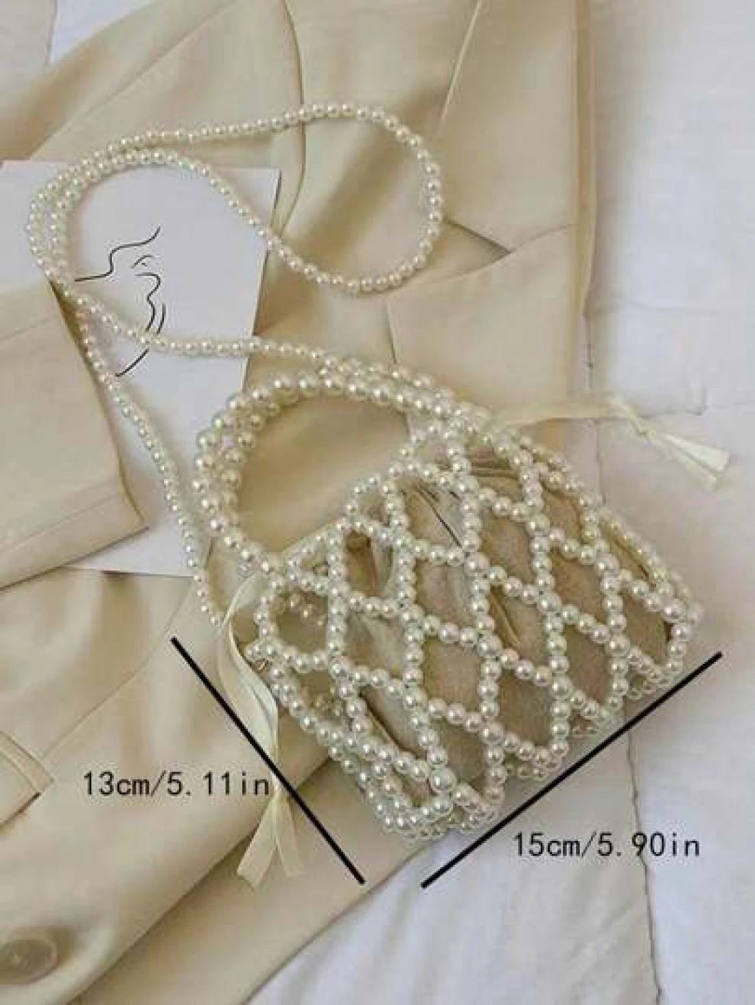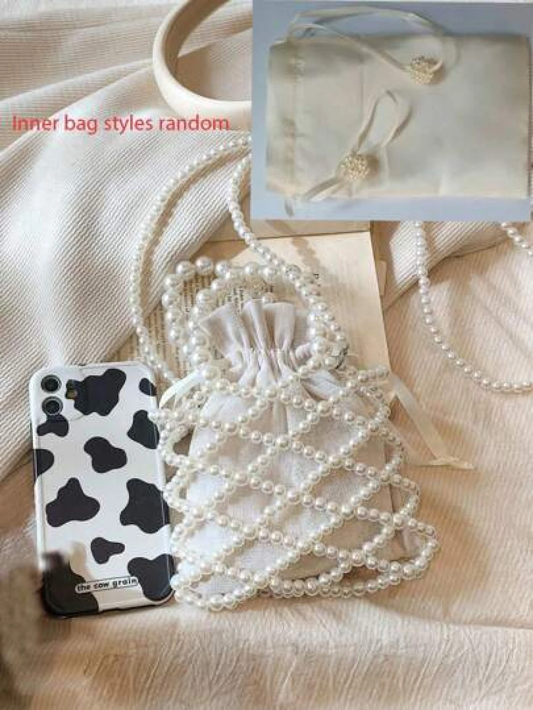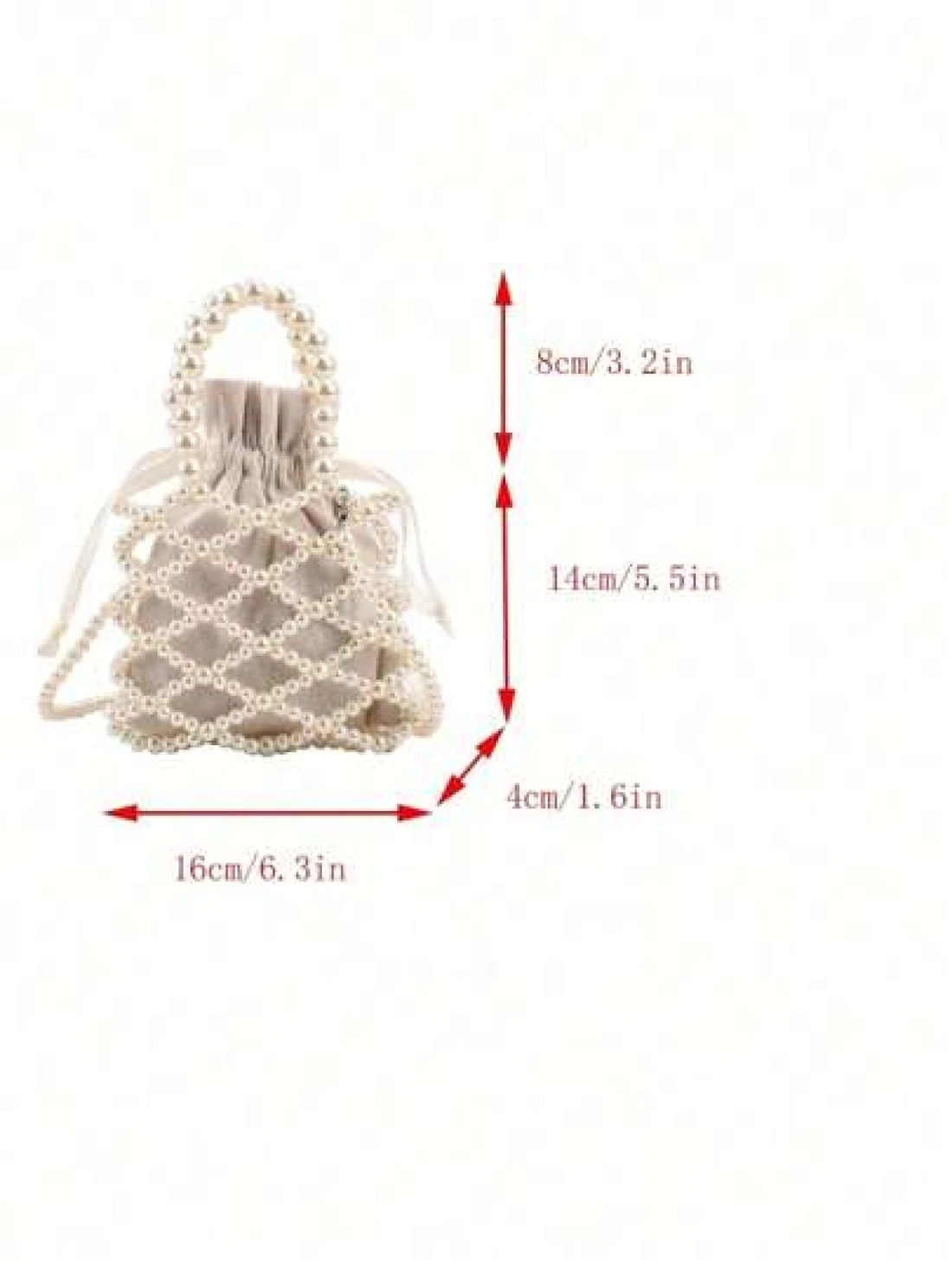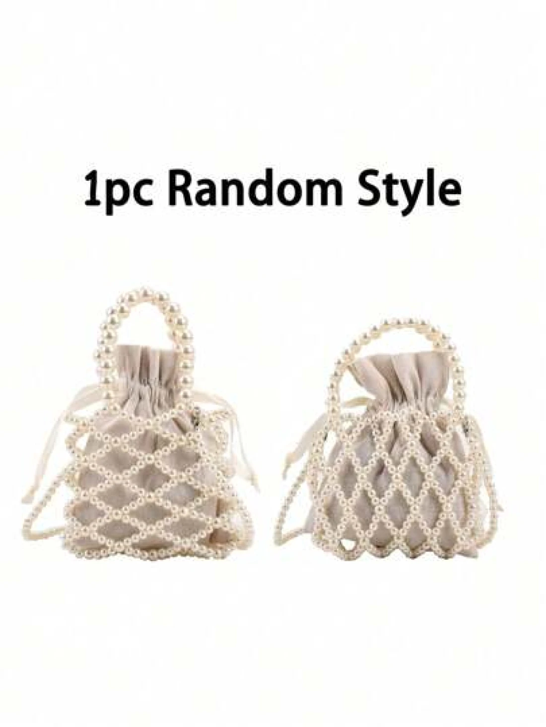 1PC French Retro Fairy Bag Woven Beaded Bucket Bag Hand Held Crossbody Bag Early Spring Pearl Bag Niche Design Hollow Pearl Bag Perfect Gift For Girls Suitable For Daily Use Random Style