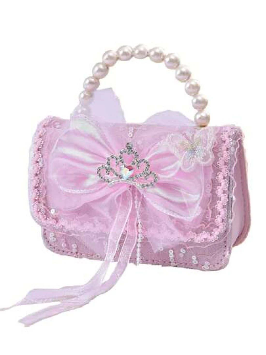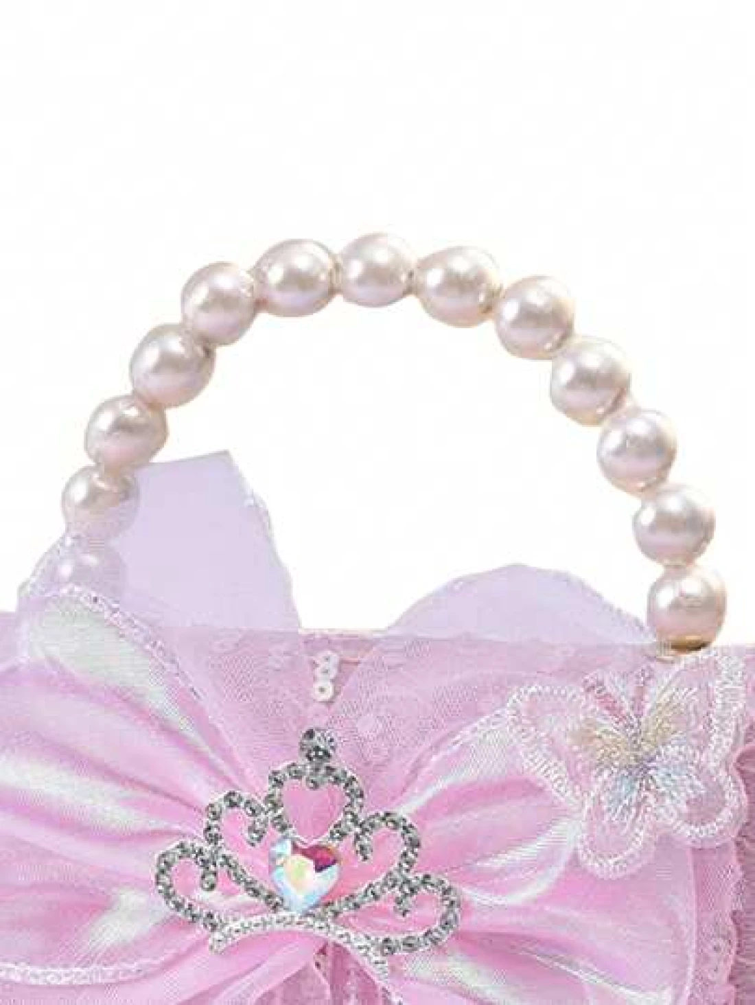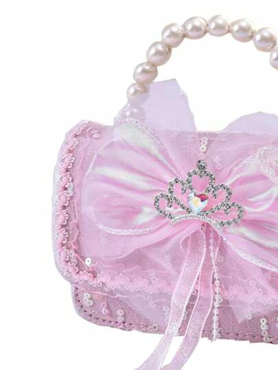 1pc Kids Bow Knot Crown Decor Handbag Pearl Accent Tassel Pouch For School Work Travel