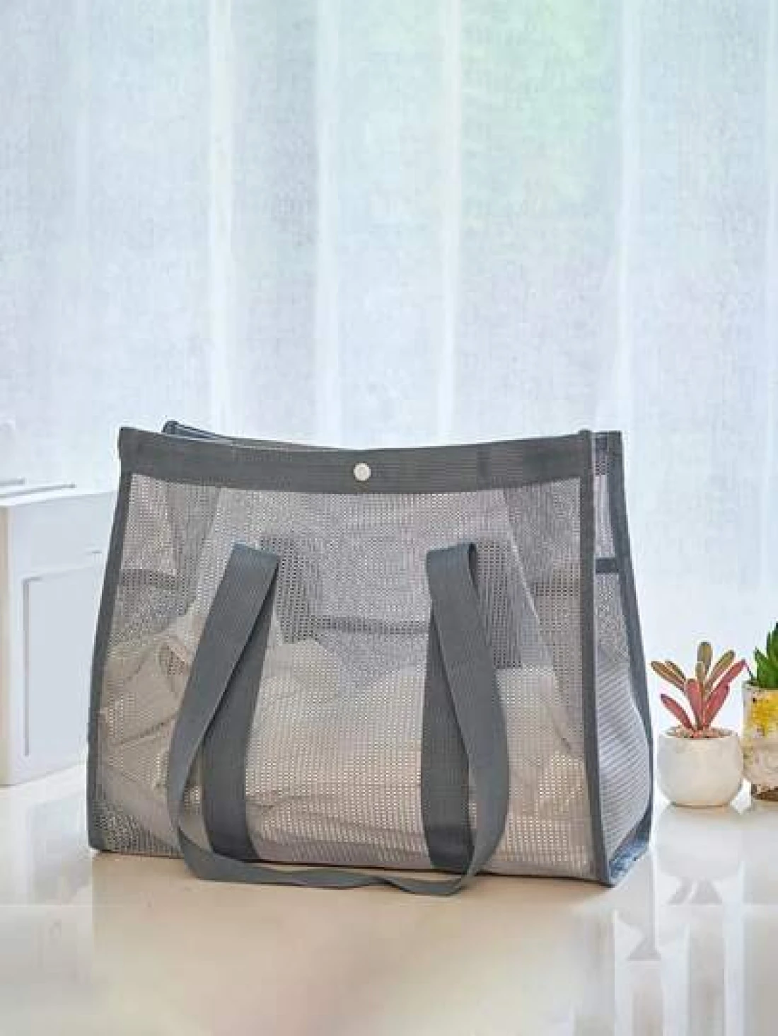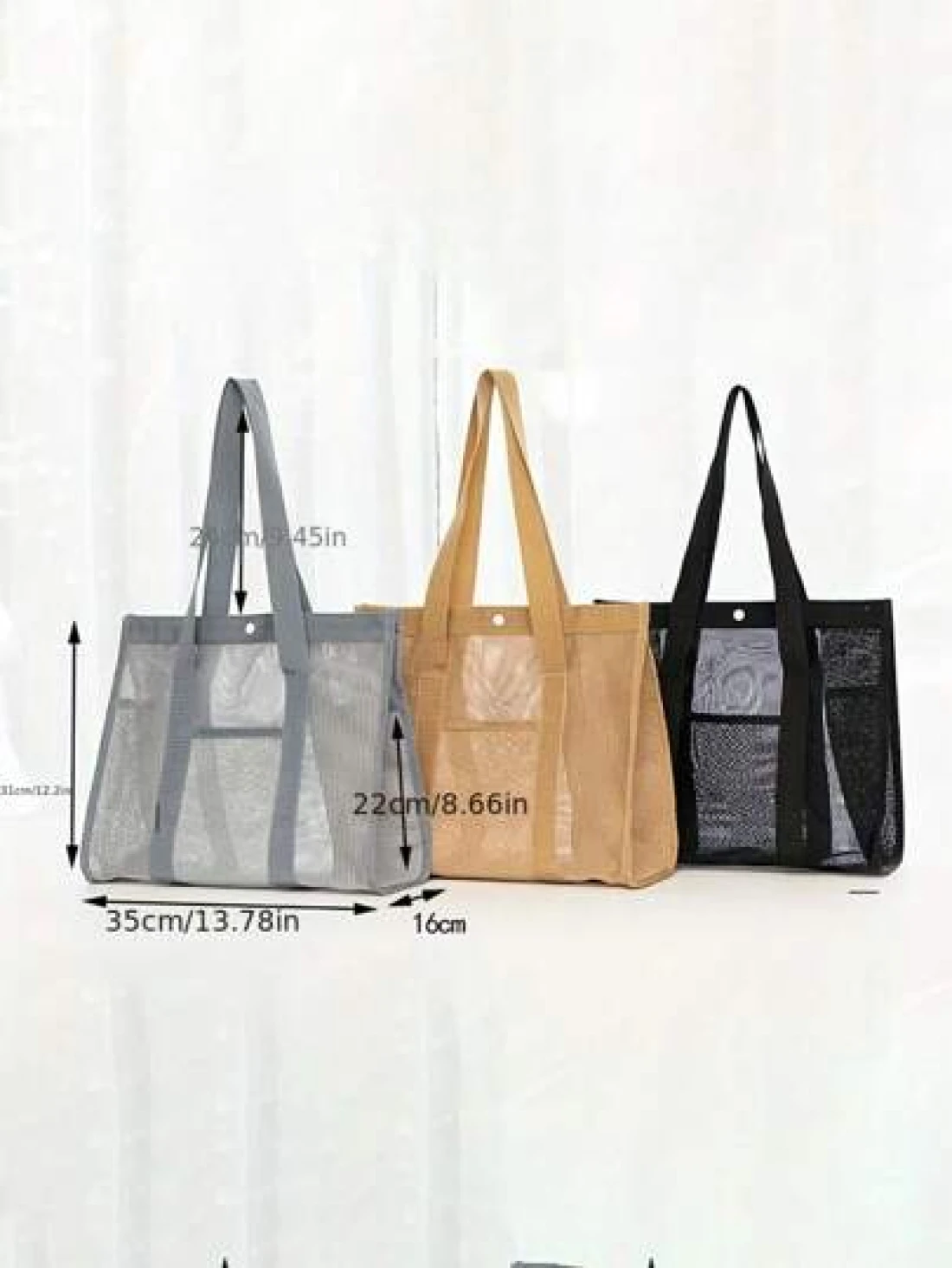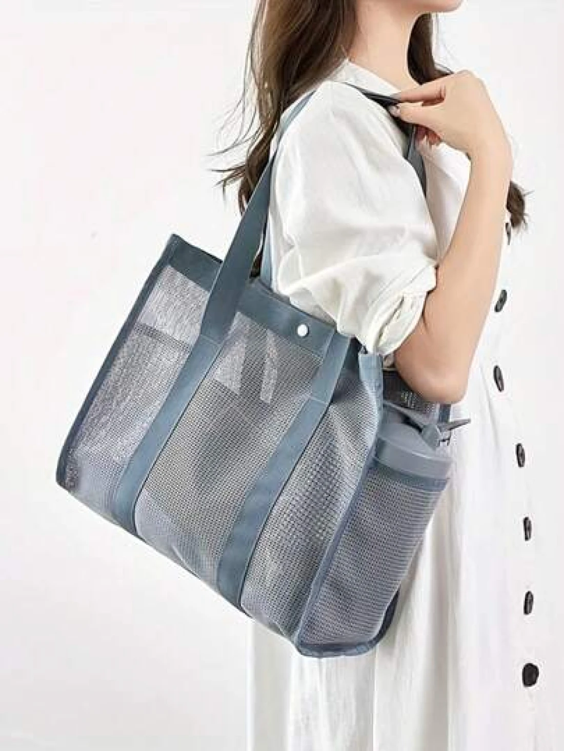 New Fashion Mesh Hollow Out Tote Bag Shoulder Bag Casual Swimwear Bag Travel Toiletry Organizer Bag With Buckle