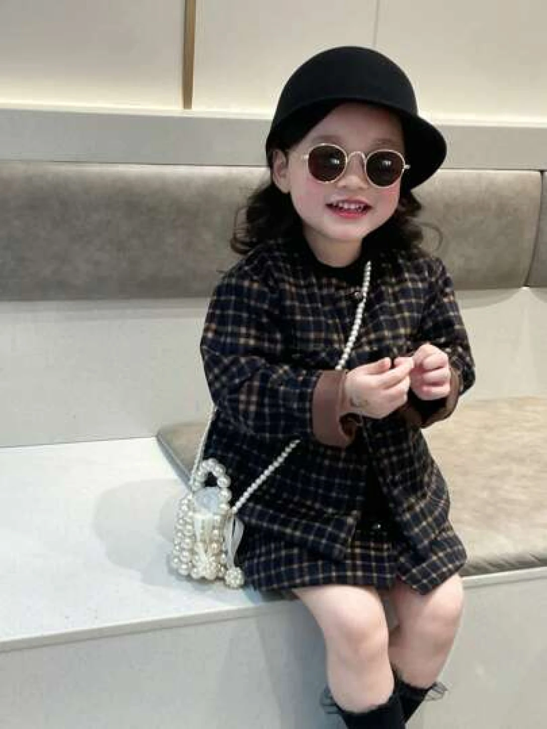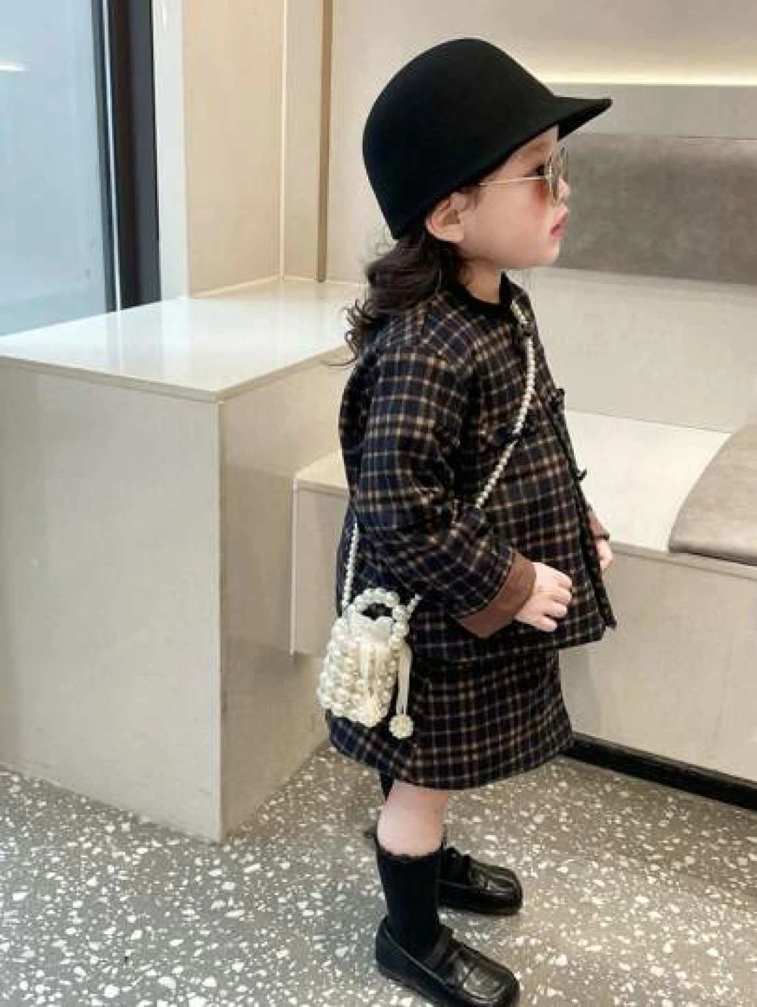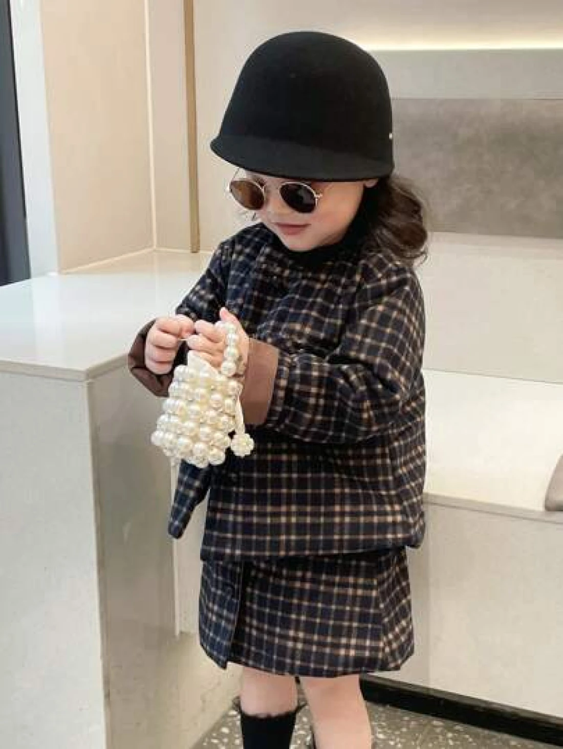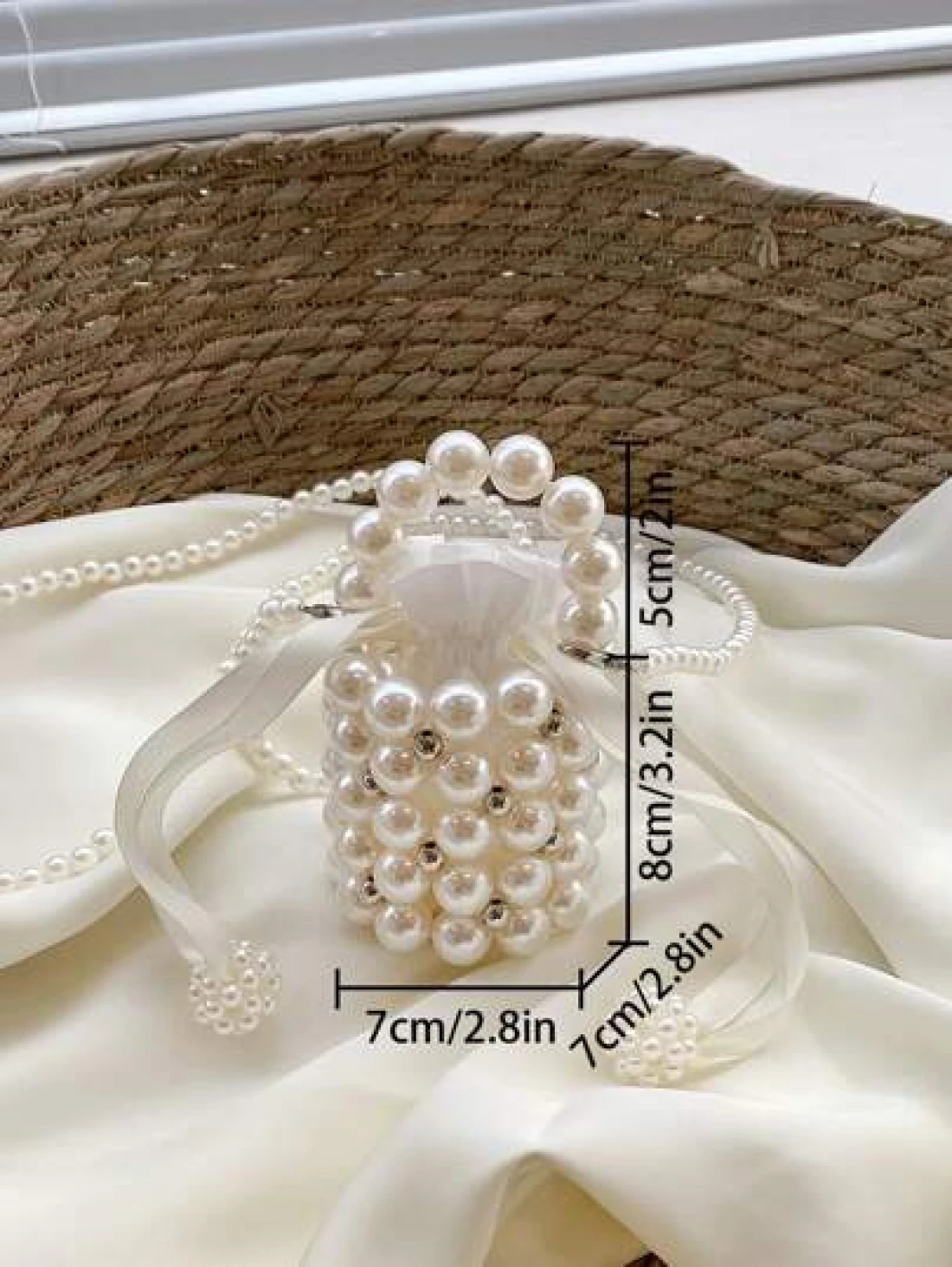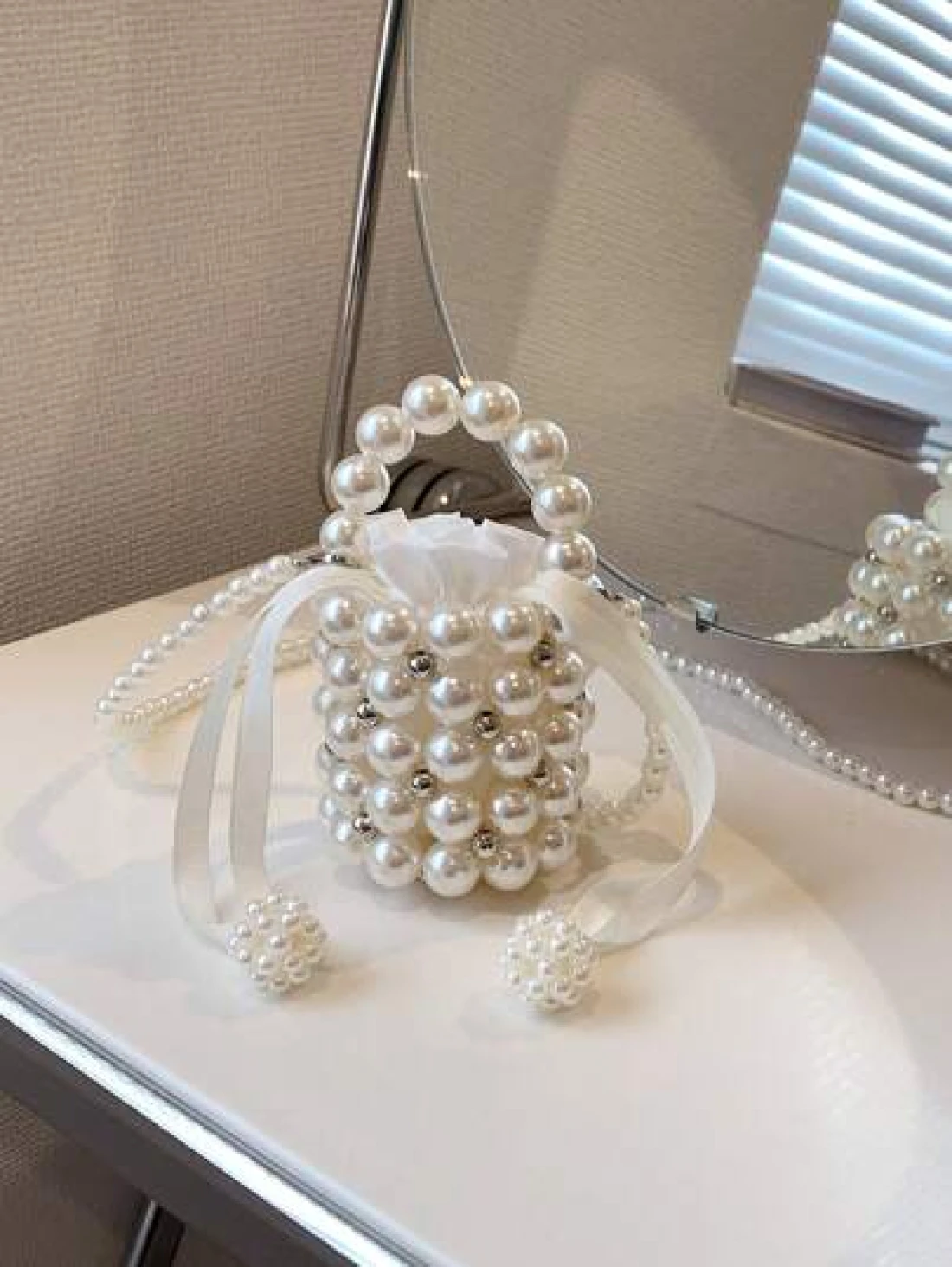 Girls Faux Pearl Beaded ABS Drawstring Satchel Bag
