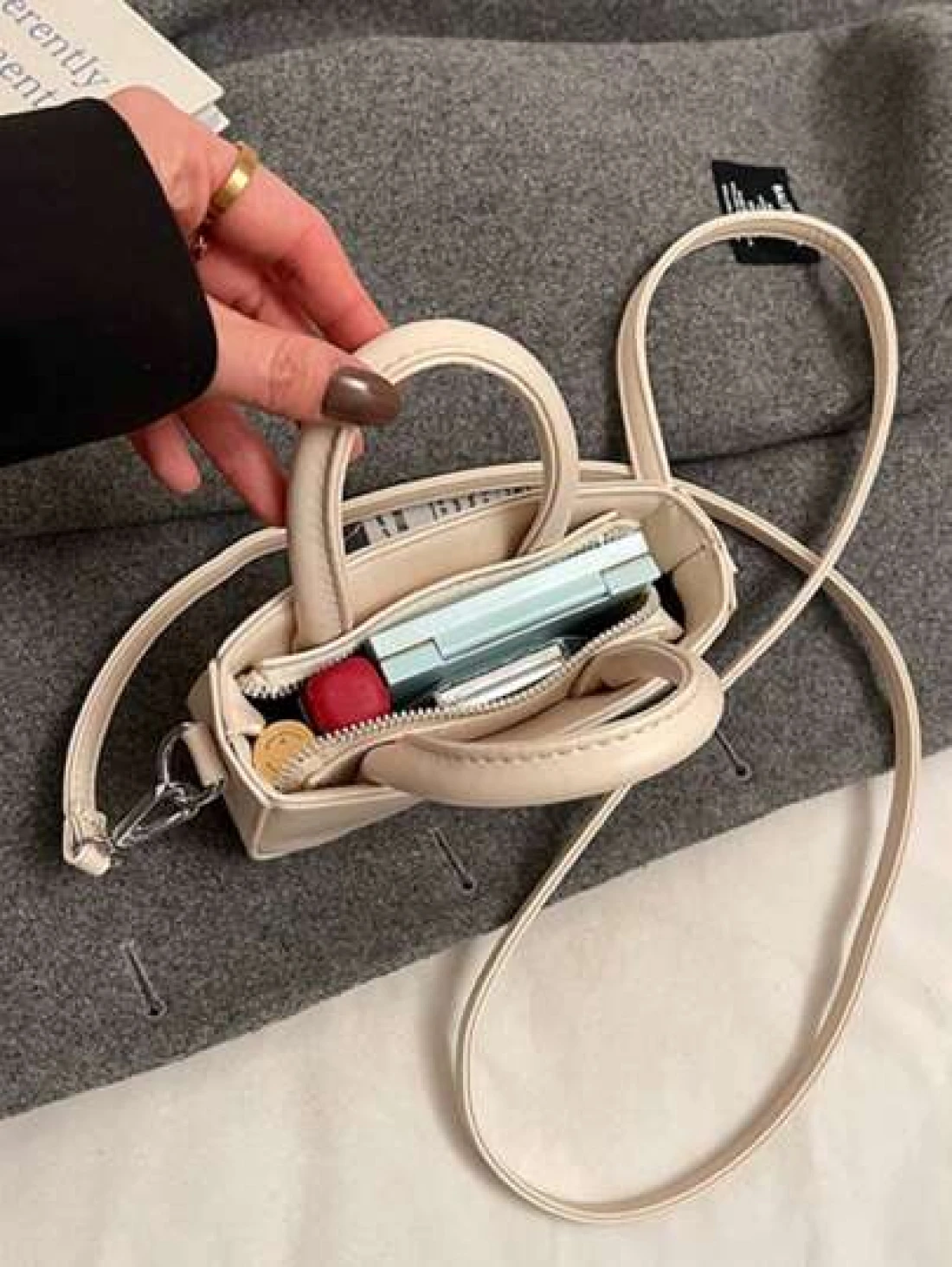 1pc Simple Fashionable Girls Handbag Solid Color PU Leather Letter Shoulder Crossbody Bag