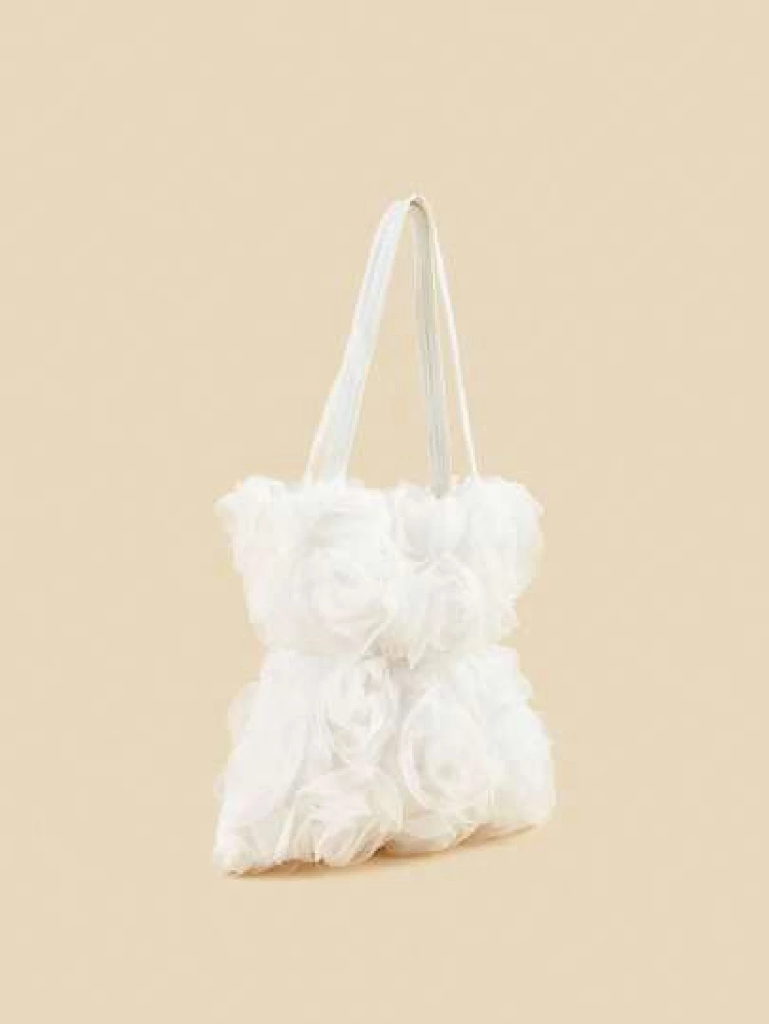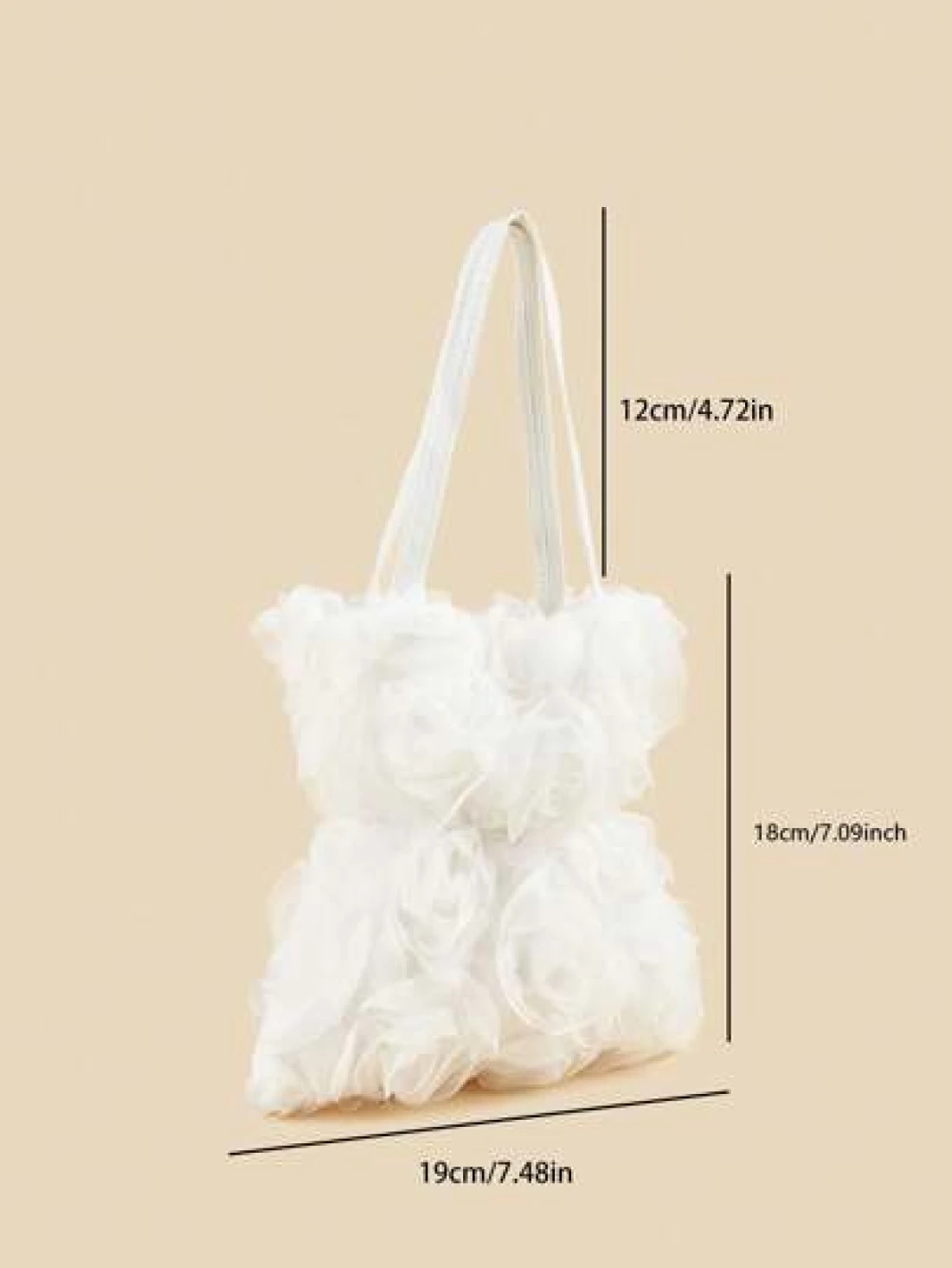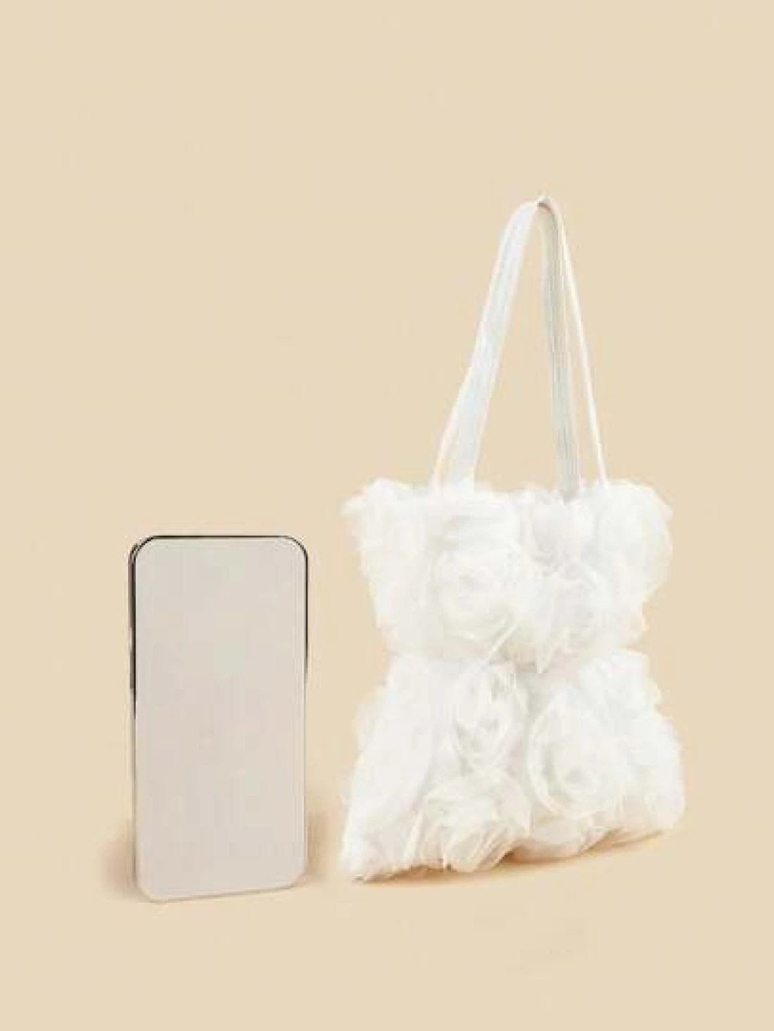 1pc Sweet Lady New Arrival Minimalist Rose Flower Design Handbag Tote Bag For Phone And Coins