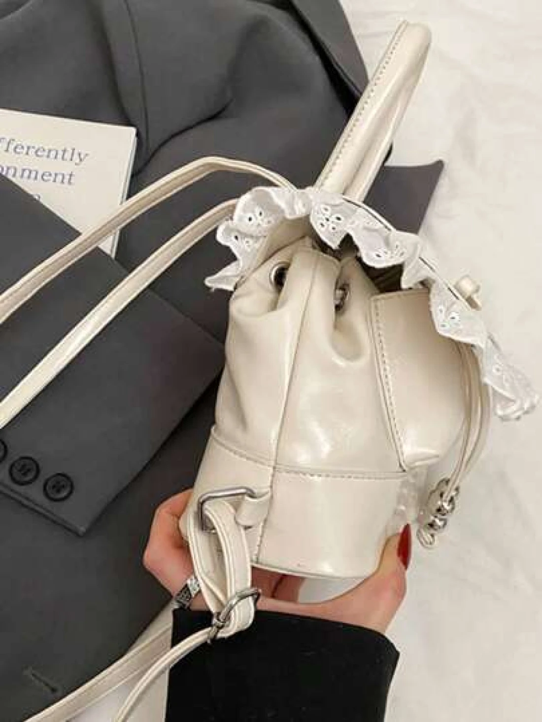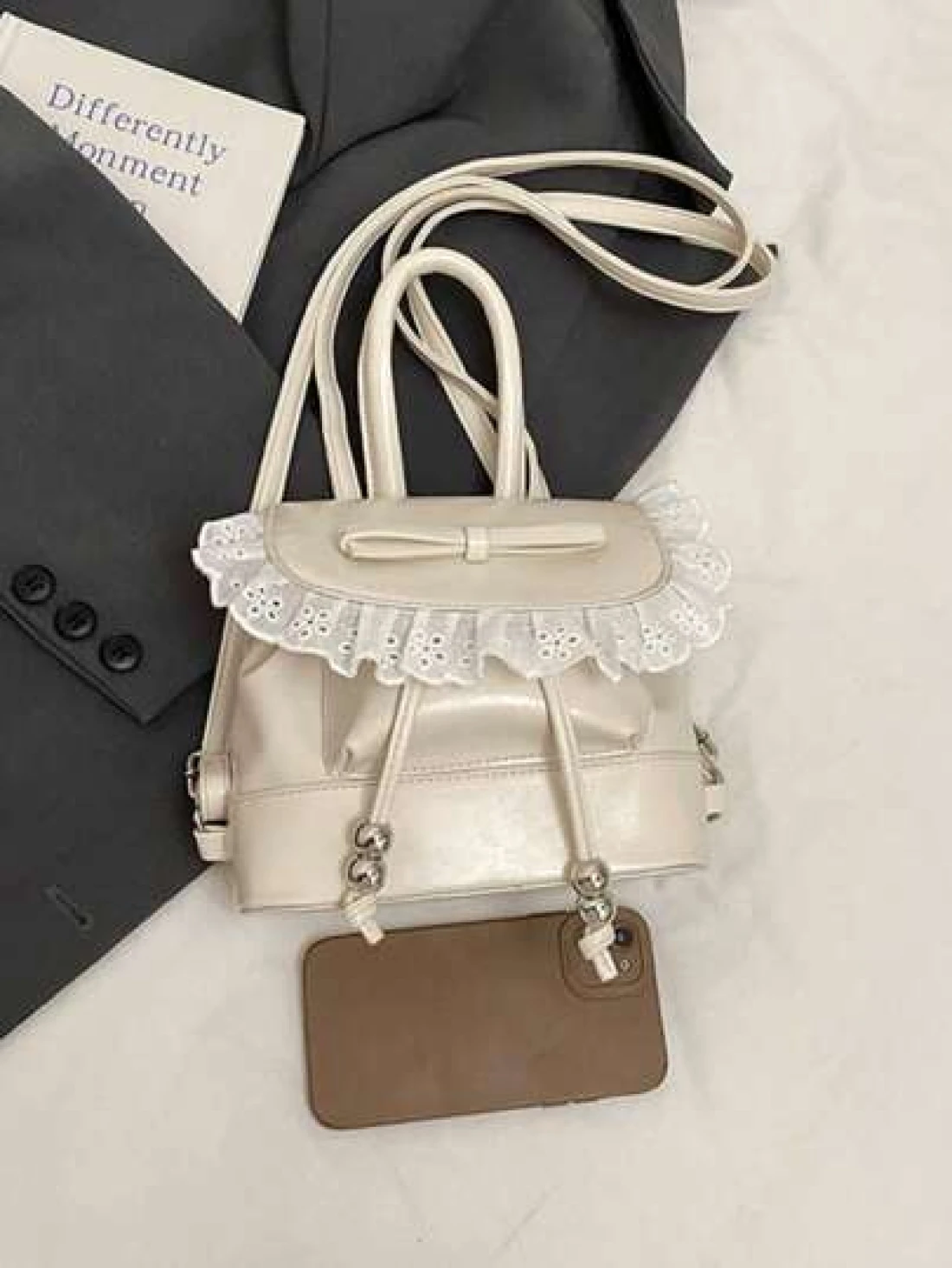 1pc New Fashionable Dual Tone Floral Trim Handbag Waterproof Light Weight Suitable For Commute And Outdoor Use